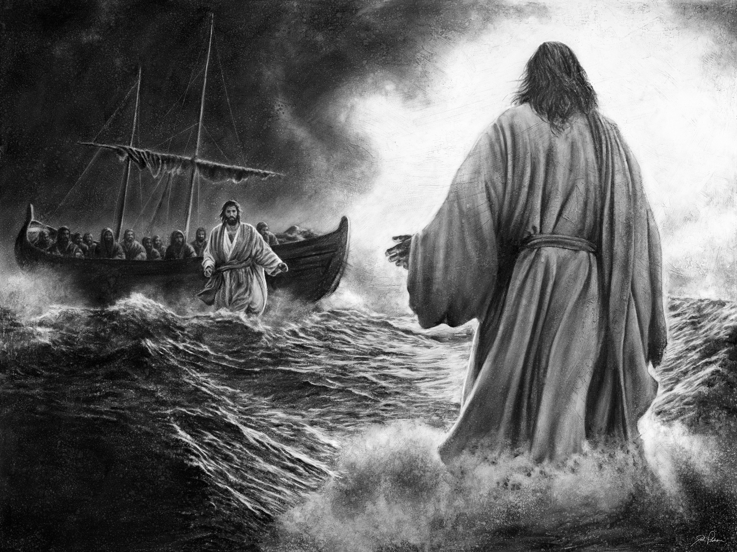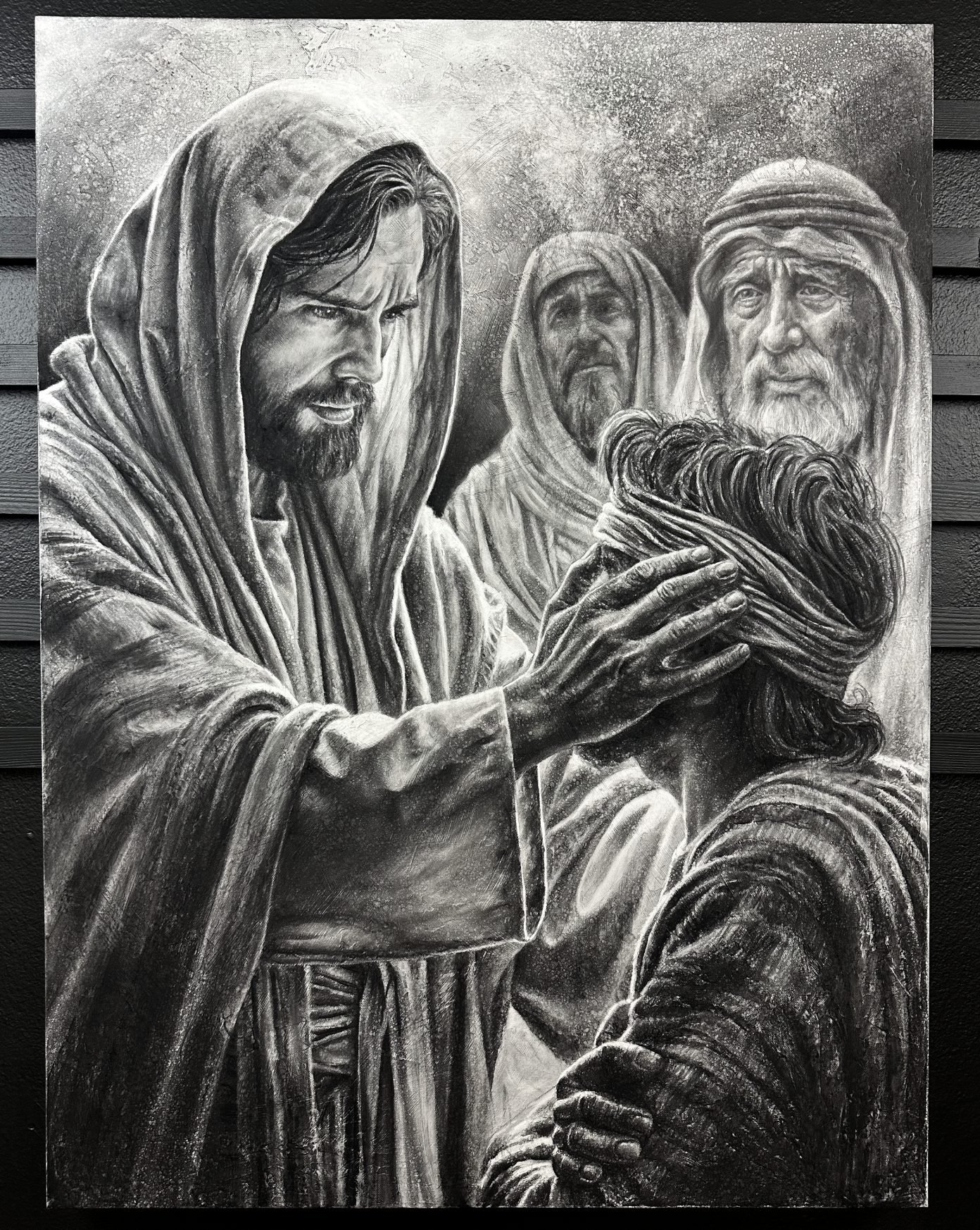 Charcoal on 36"x24" canvas with custom barn wood frame.