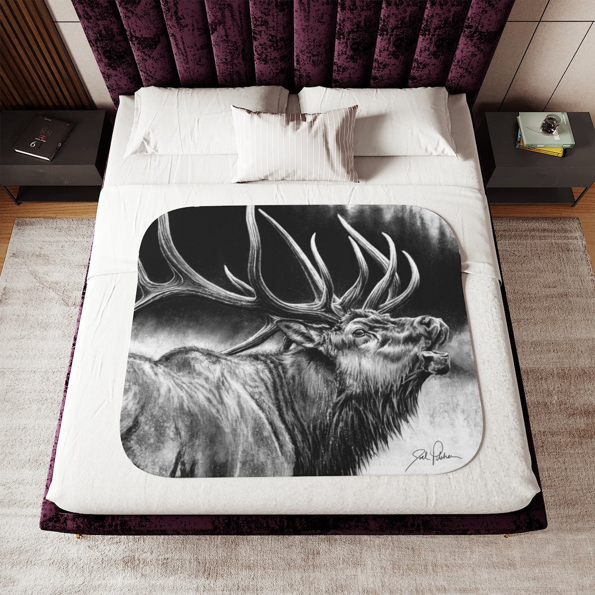 This snuggly sherpa blanket comes in beige or grey colors and features artwork by Joel Pilcher. Made with a supremely soft polyester front and a sherpa back, it's available in 3 sizes.