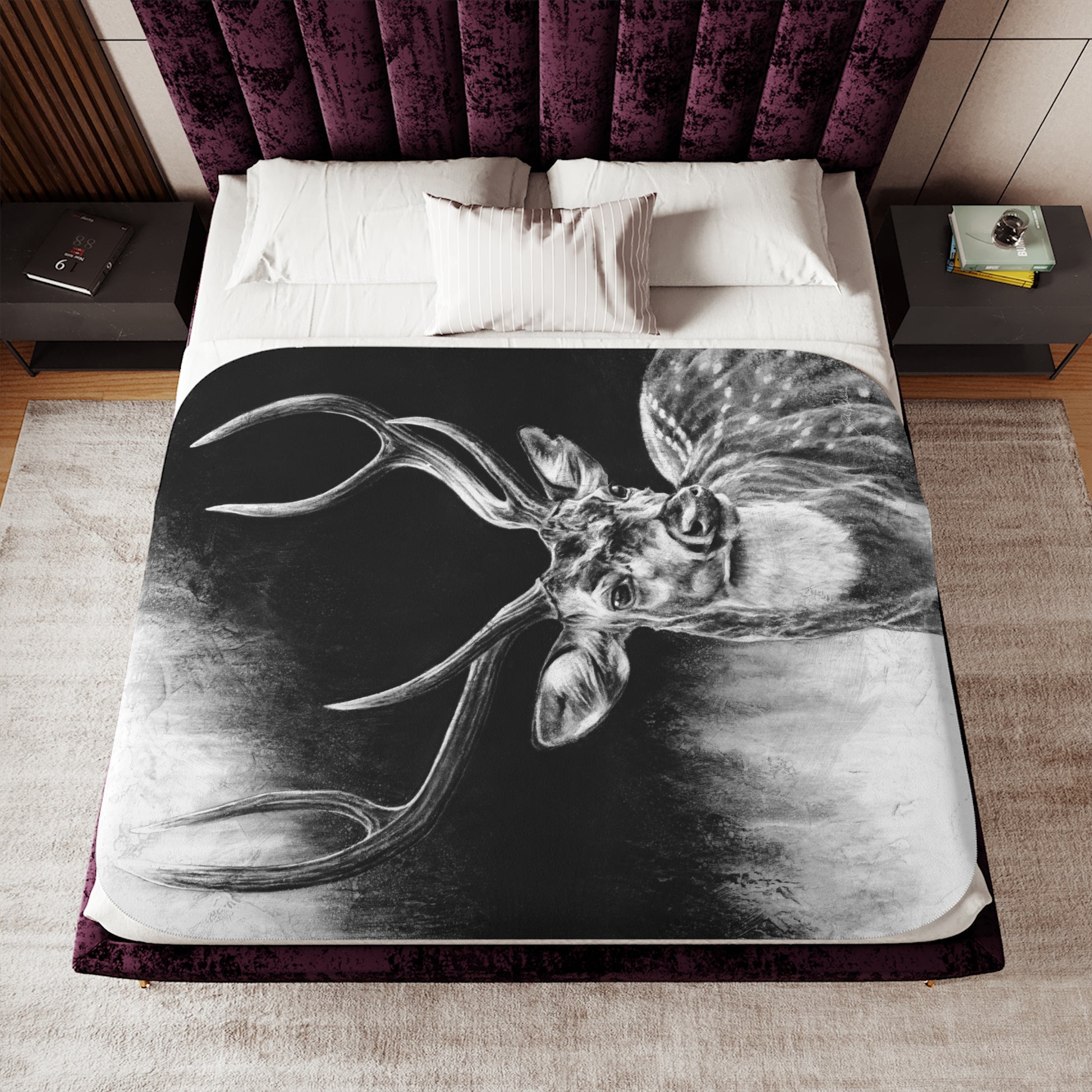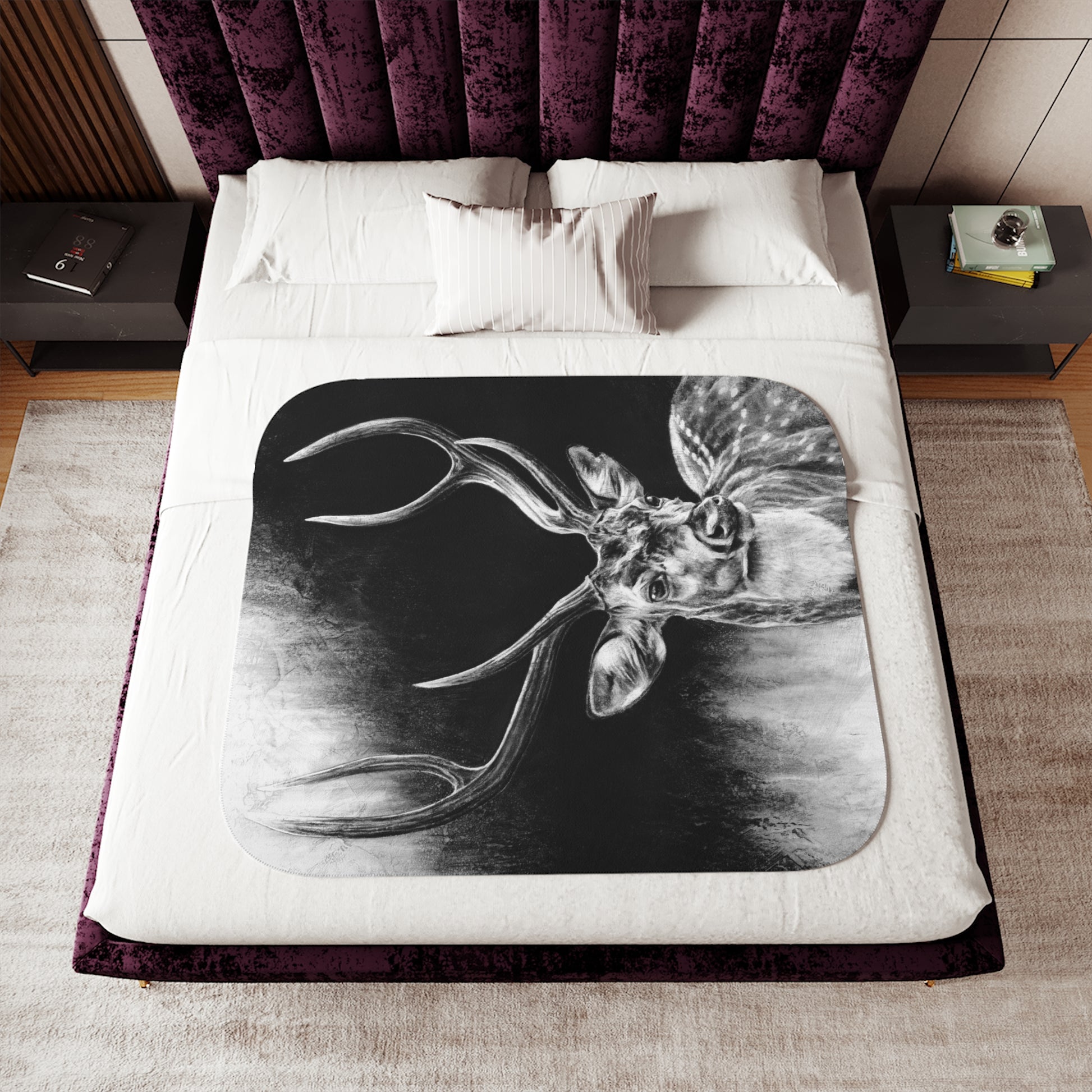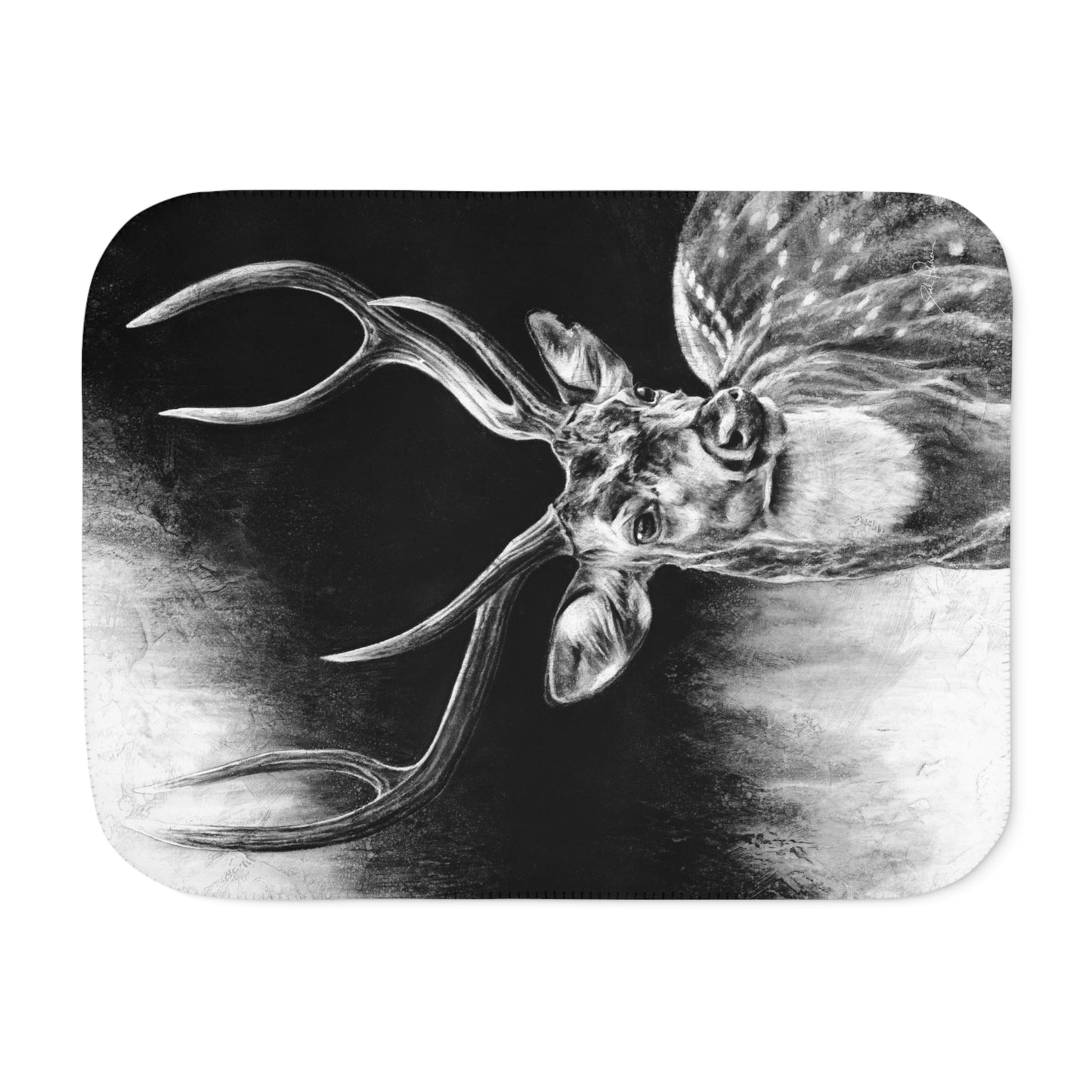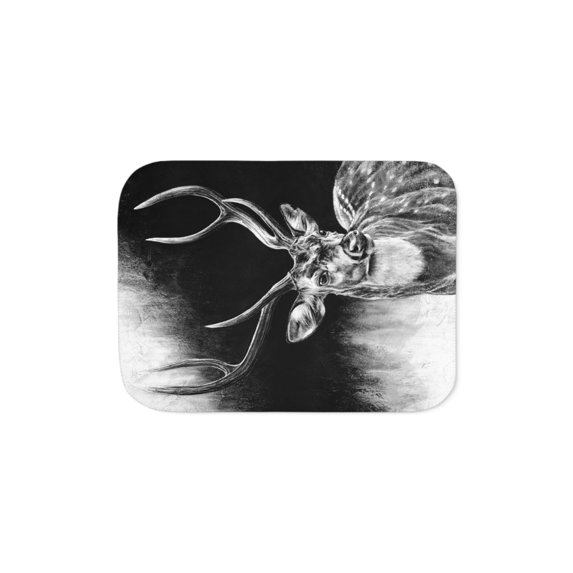 This snuggly sherpa blanket comes in beige or grey colors and features artwork by Joel Pilcher. Made with a supremely soft polyester front and a sherpa back, it's available in 3 sizes.