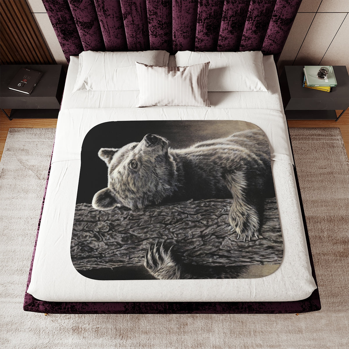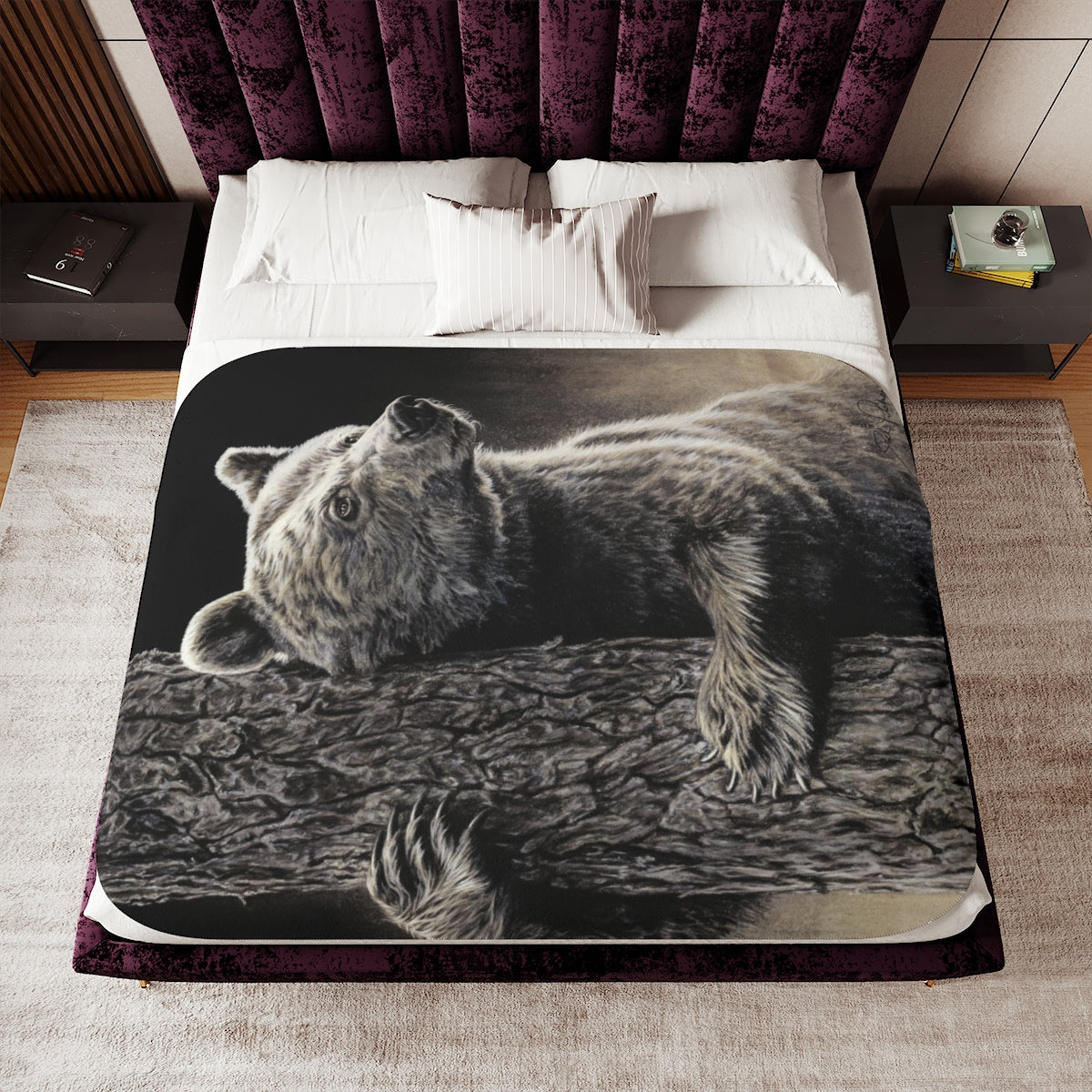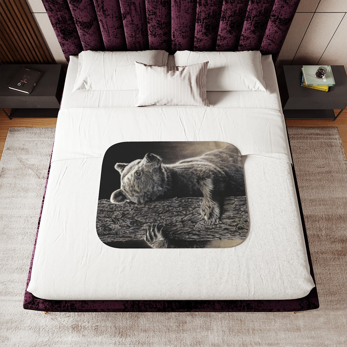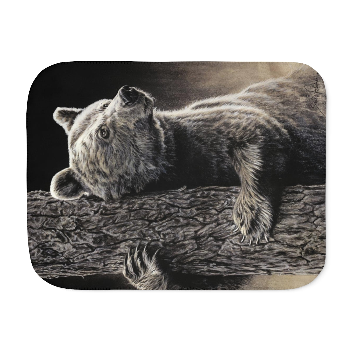 This snuggly sherpa blanket comes in beige or grey colors and features artwork by Joel Pilcher. Made with a supremely soft polyester front and a sherpa back, it's available in 3 sizes.