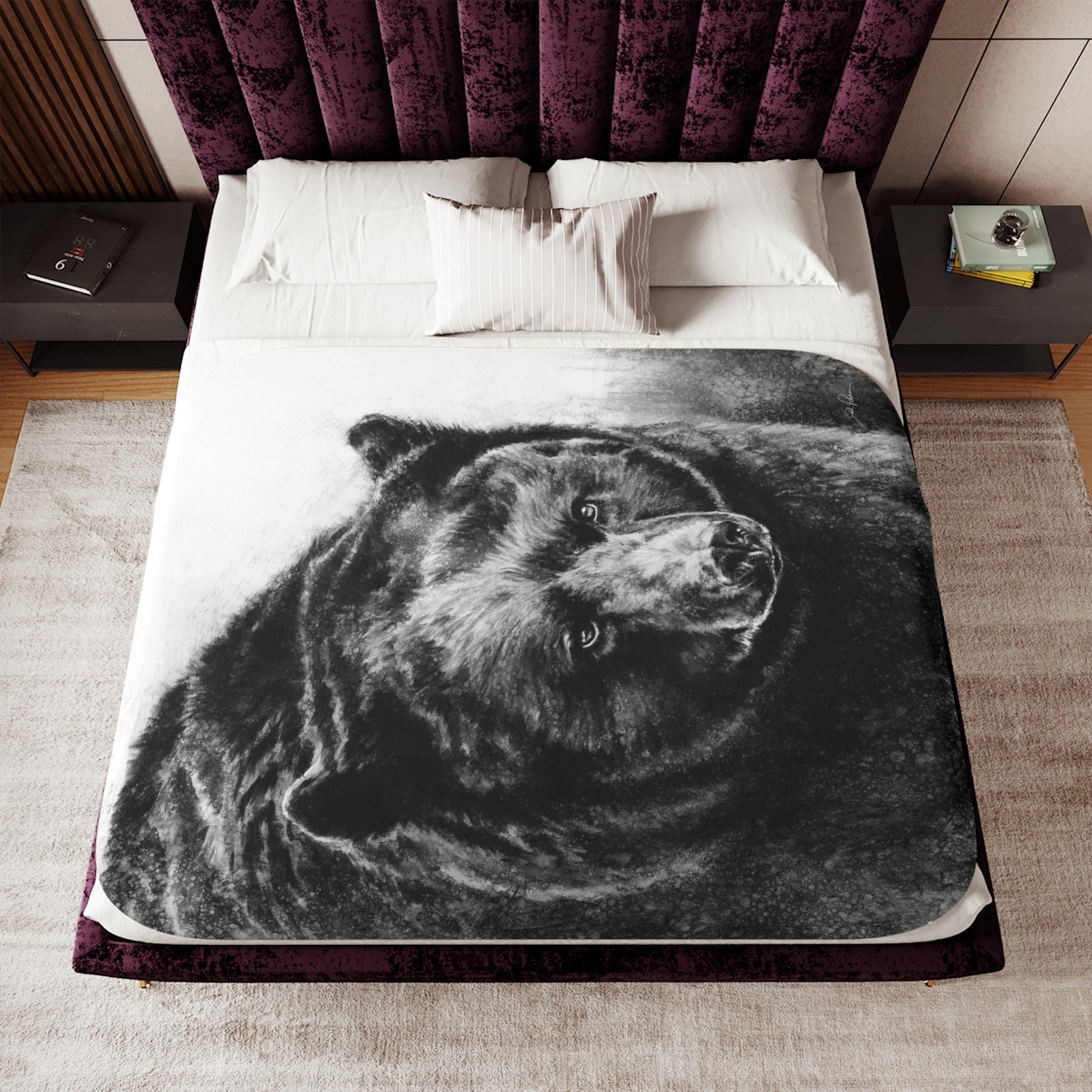 This snuggly sherpa blanket comes in beige or grey colors and features artwork by Joel Pilcher. Made with a supremely soft polyester front and a sherpa back, it's available in 3 sizes.