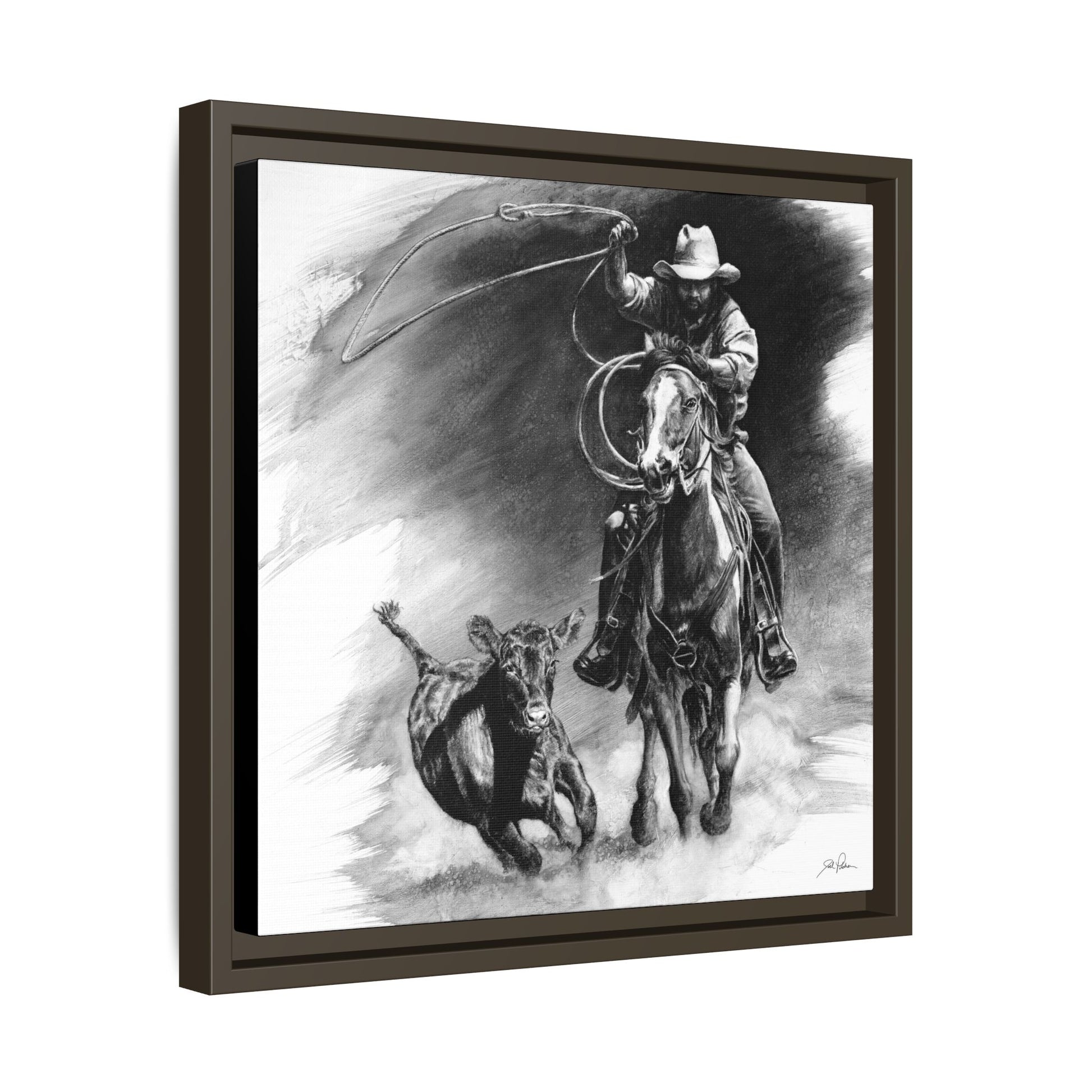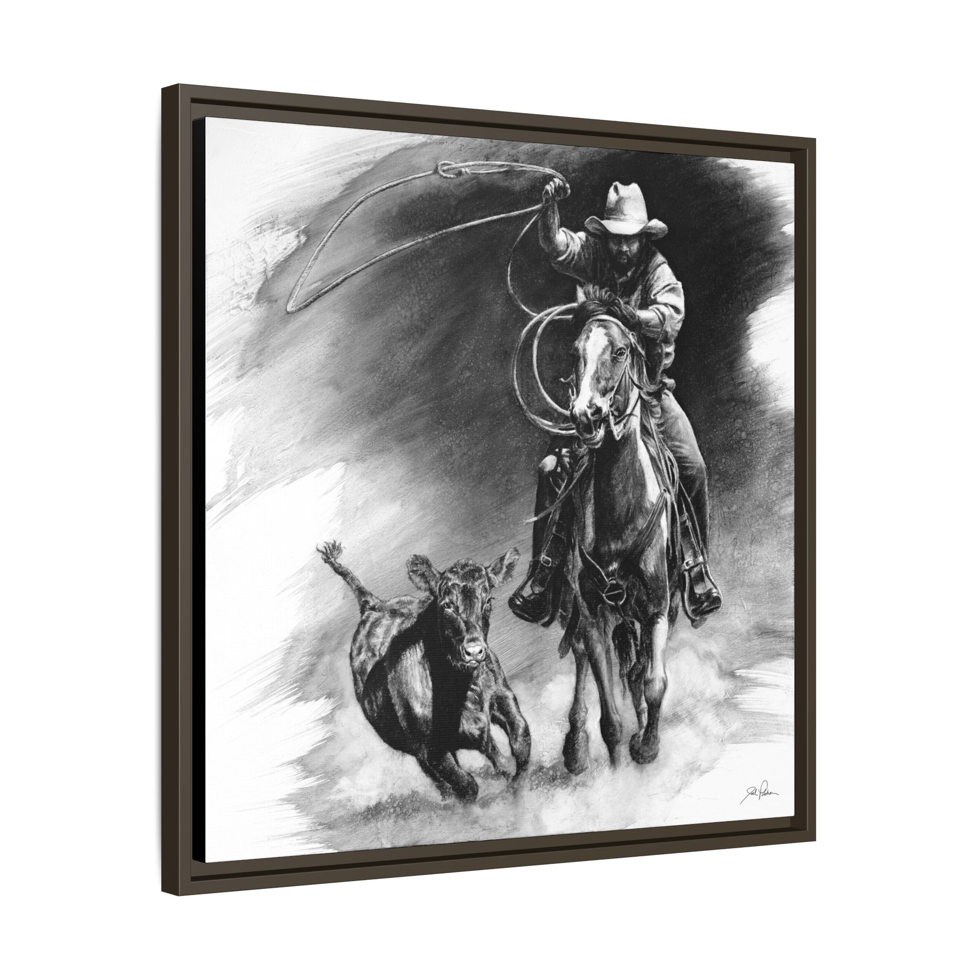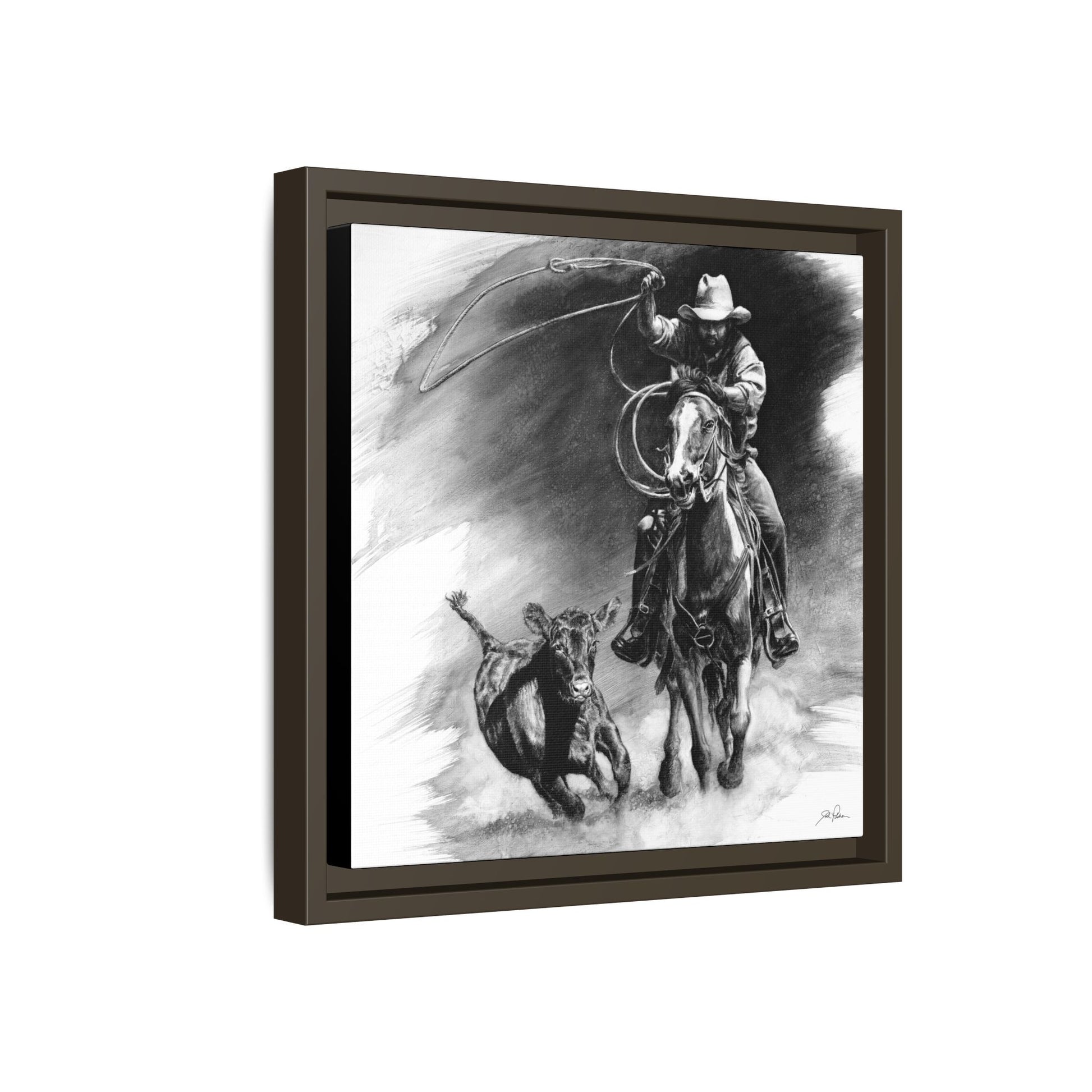 "Calf Roping" Framed Canvas