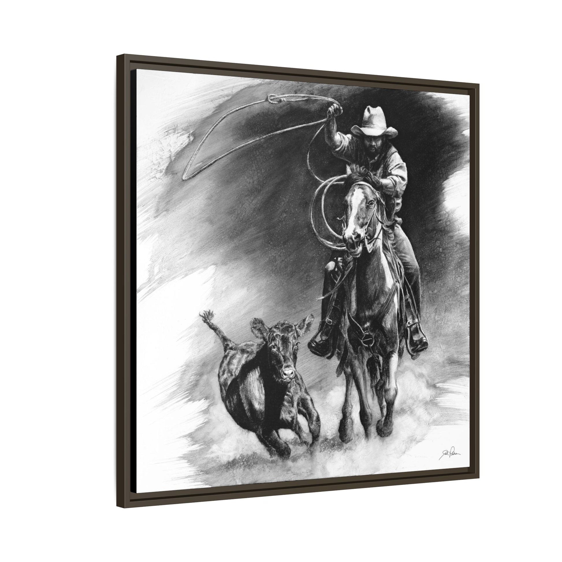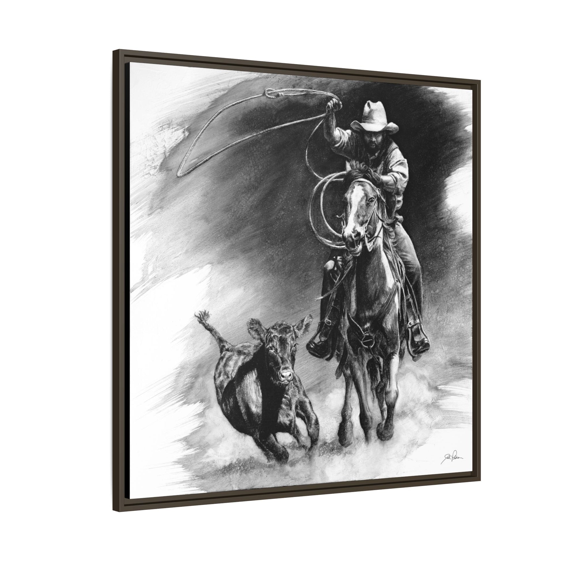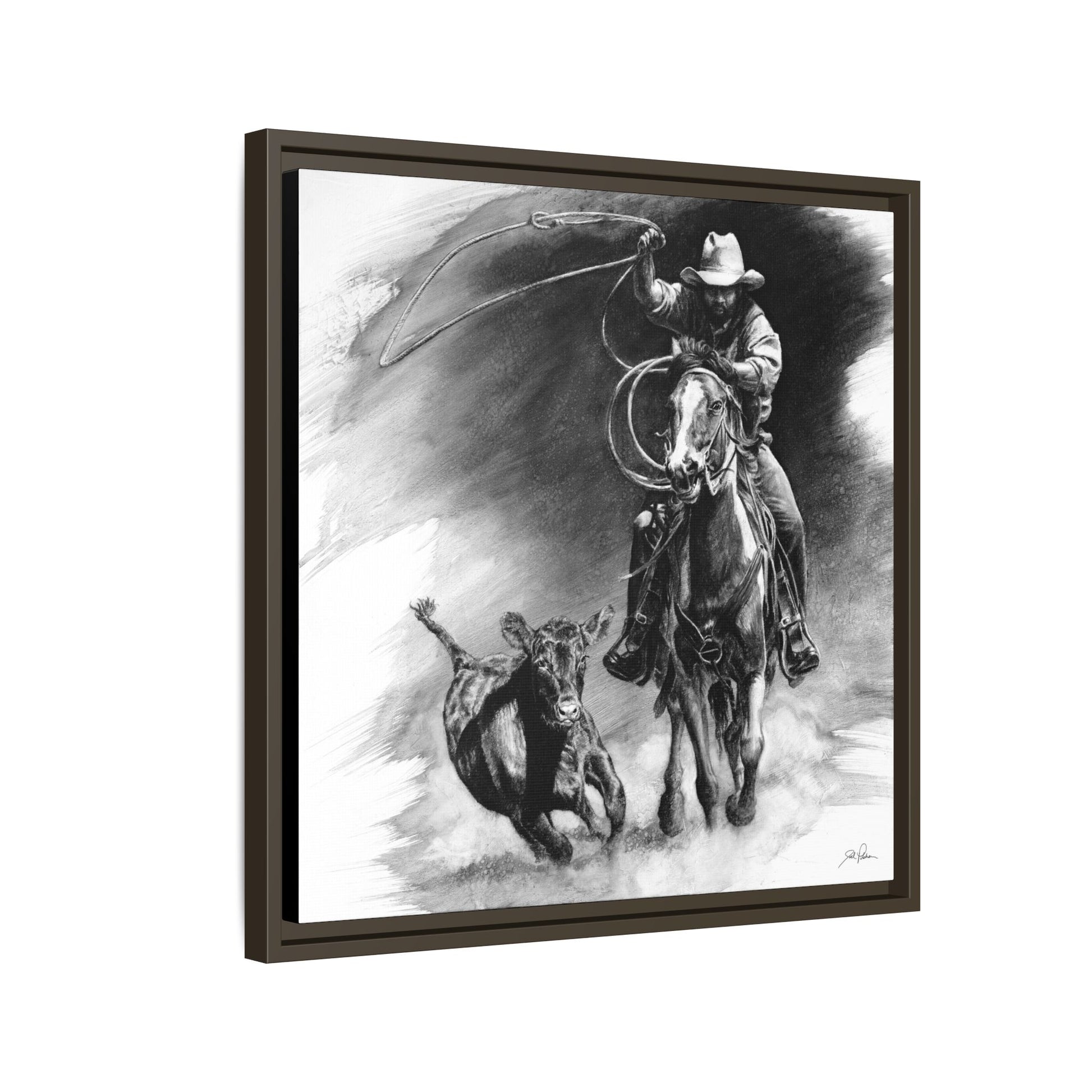 "Calf Roping" Framed Canvas