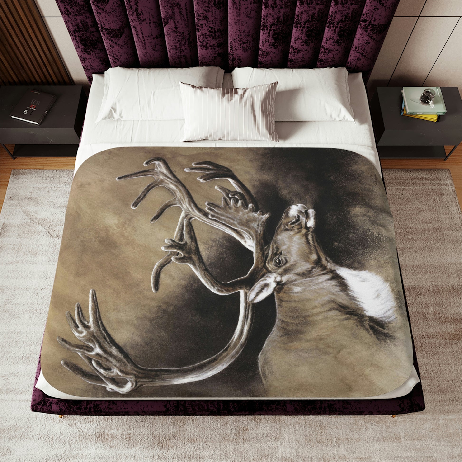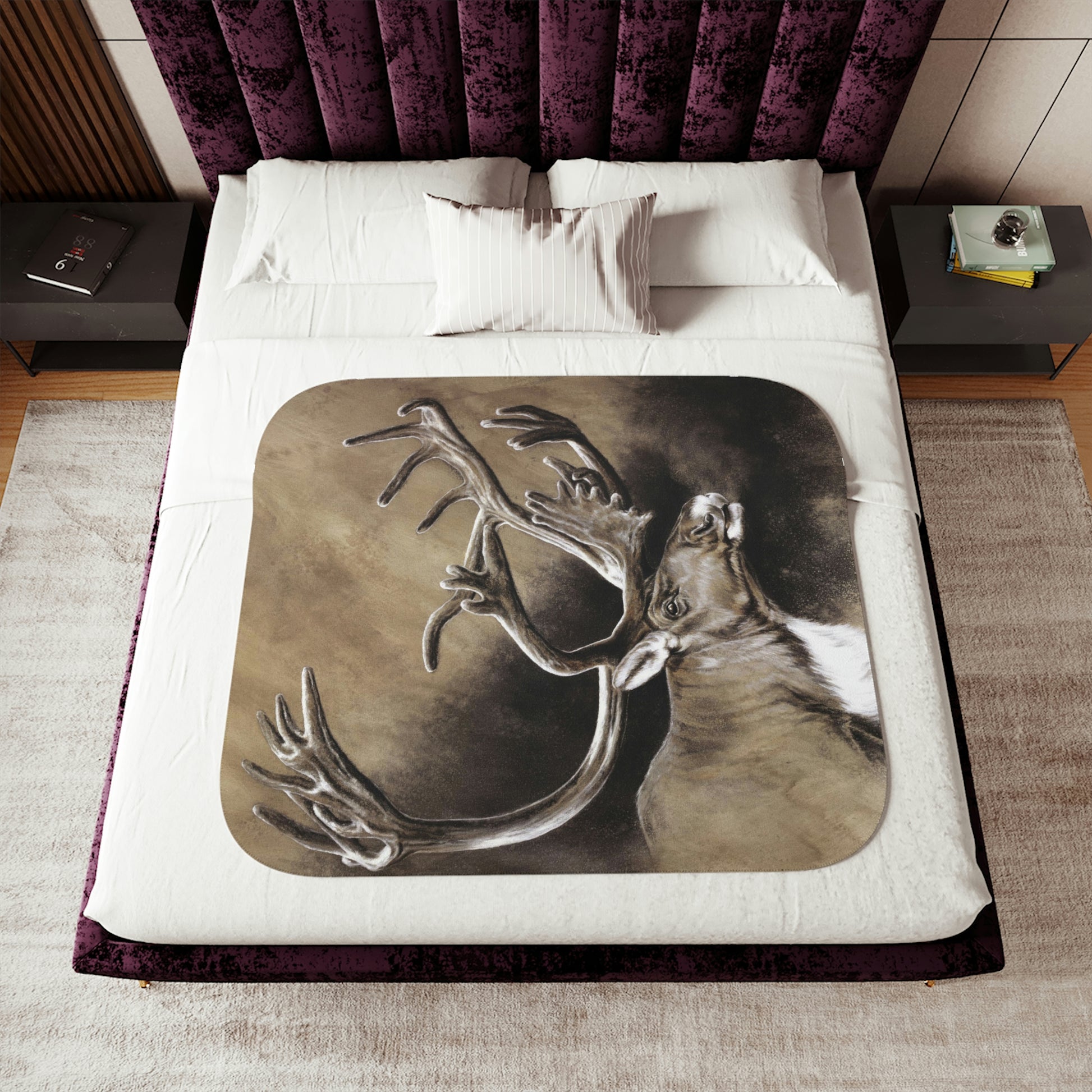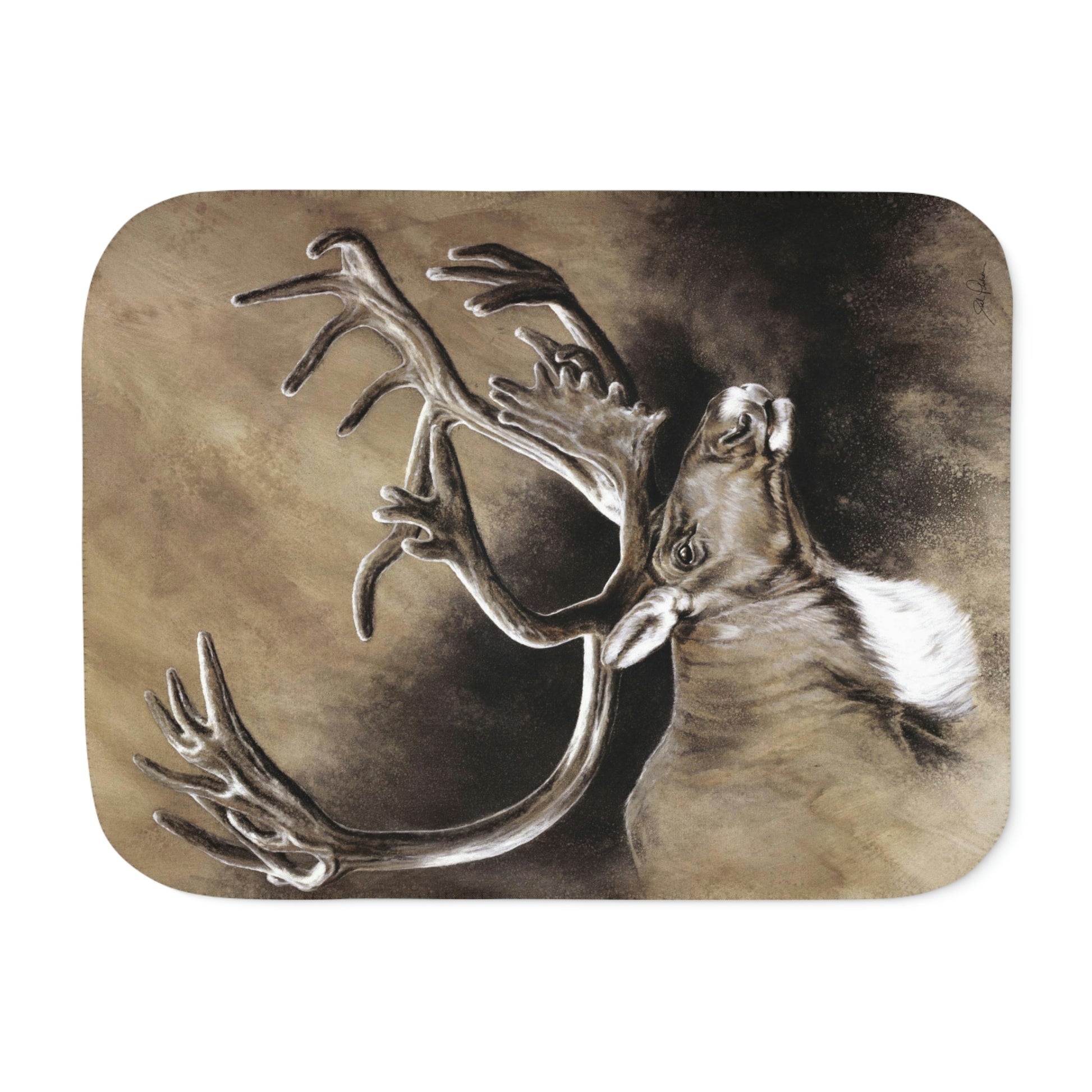 This snuggly sherpa blanket comes in beige or grey colors and features artwork by Joel Pilcher. Made with a supremely soft polyester front and a sherpa back, it's available in 3 sizes.