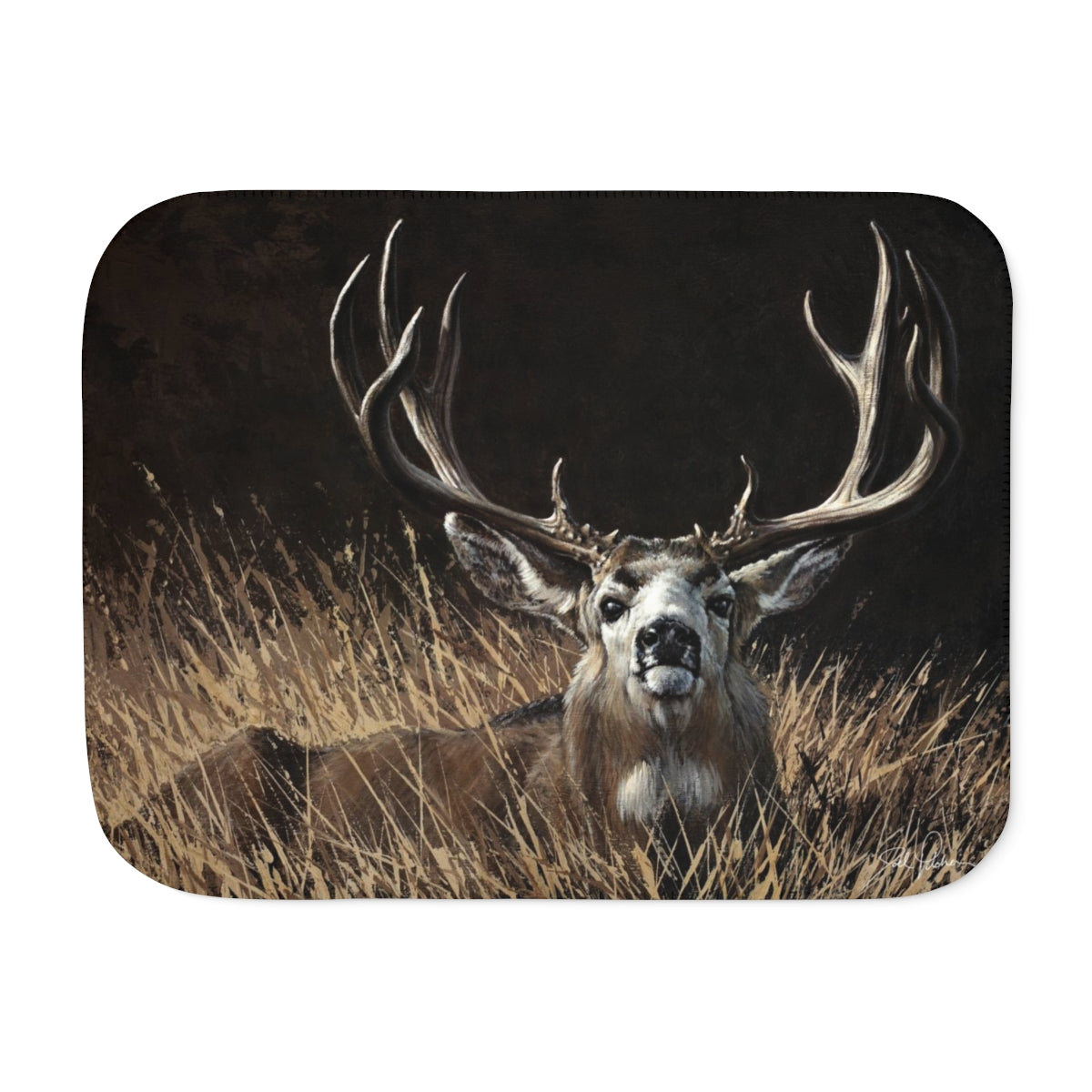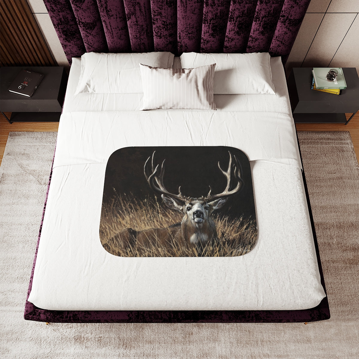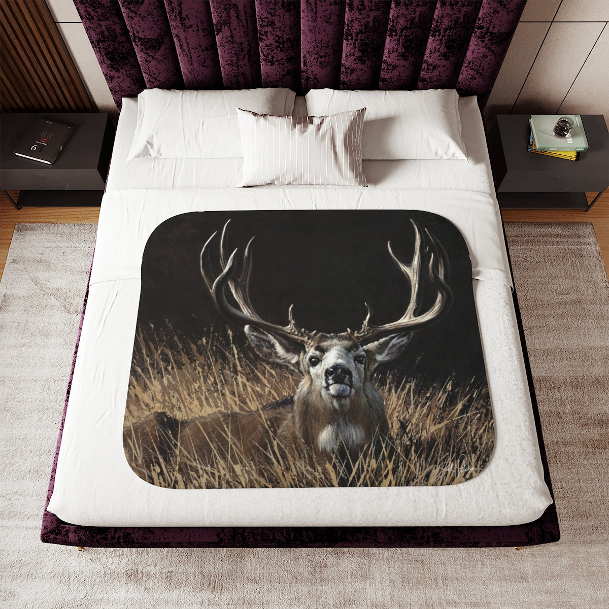 This snuggly sherpa blanket comes in beige or grey colors and features artwork by Joel Pilcher. Made with a supremely soft polyester front and a sherpa back, it's available in 3 sizes.