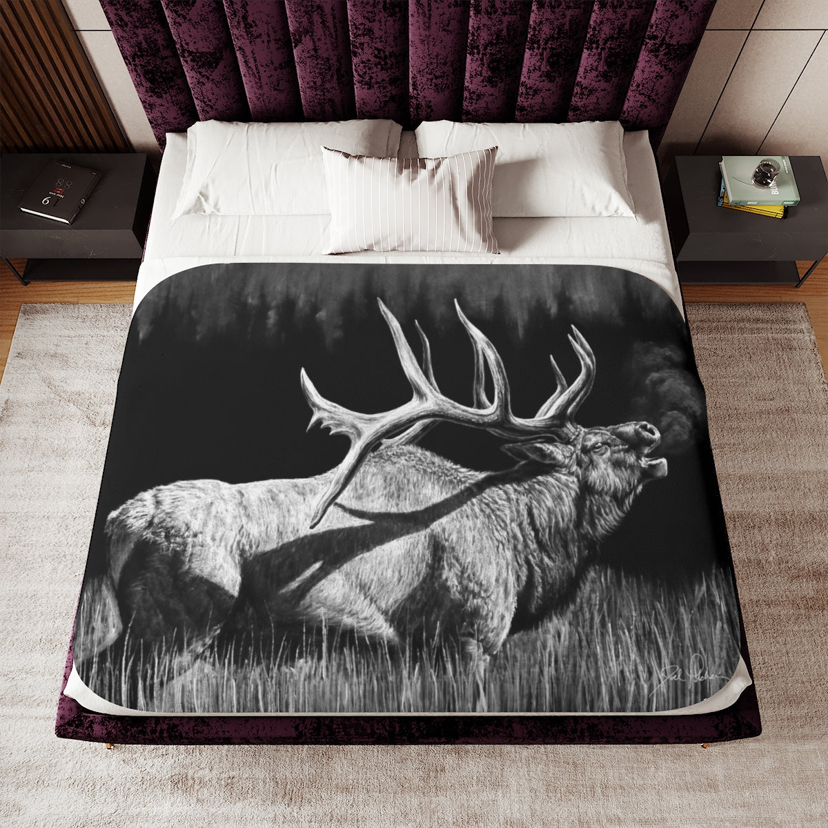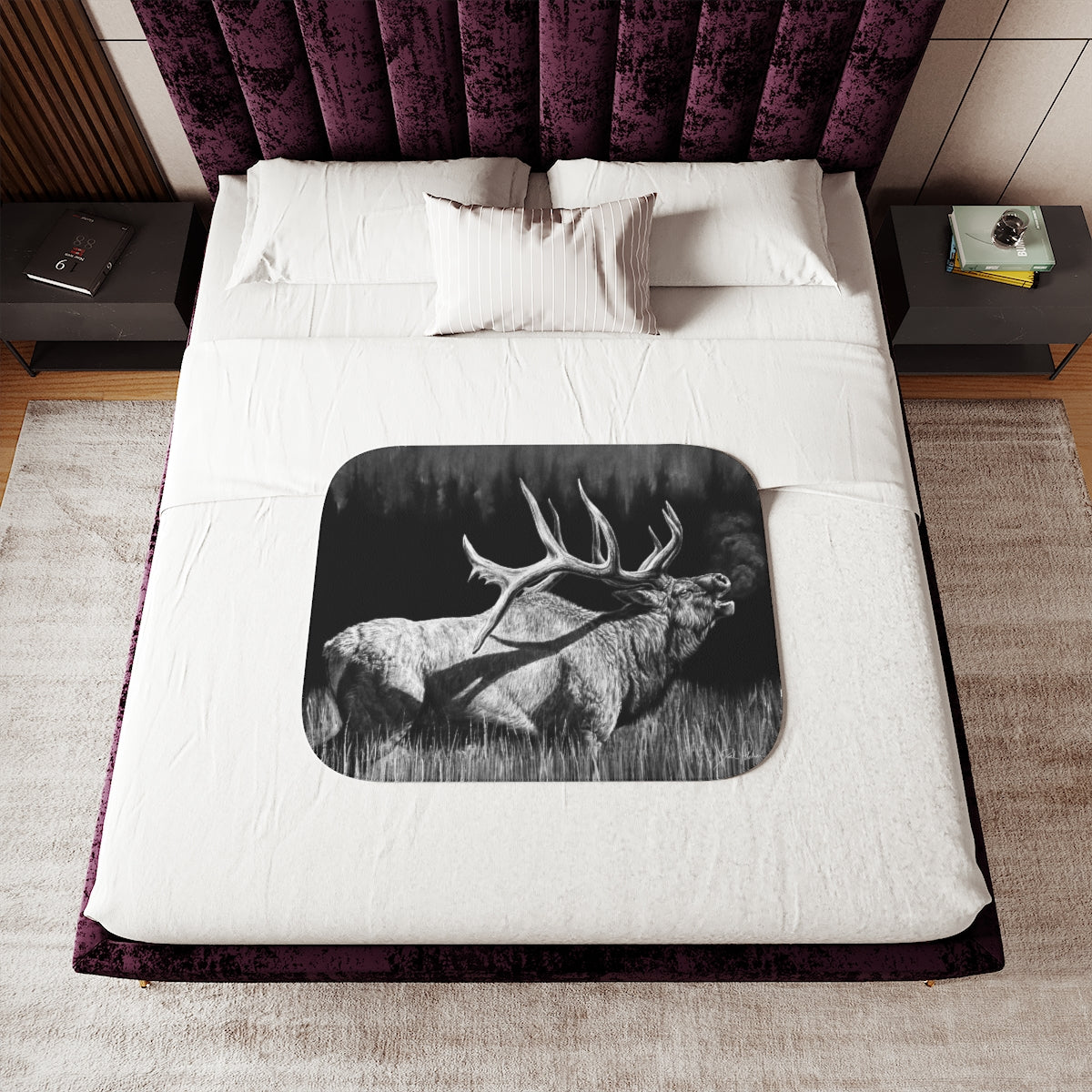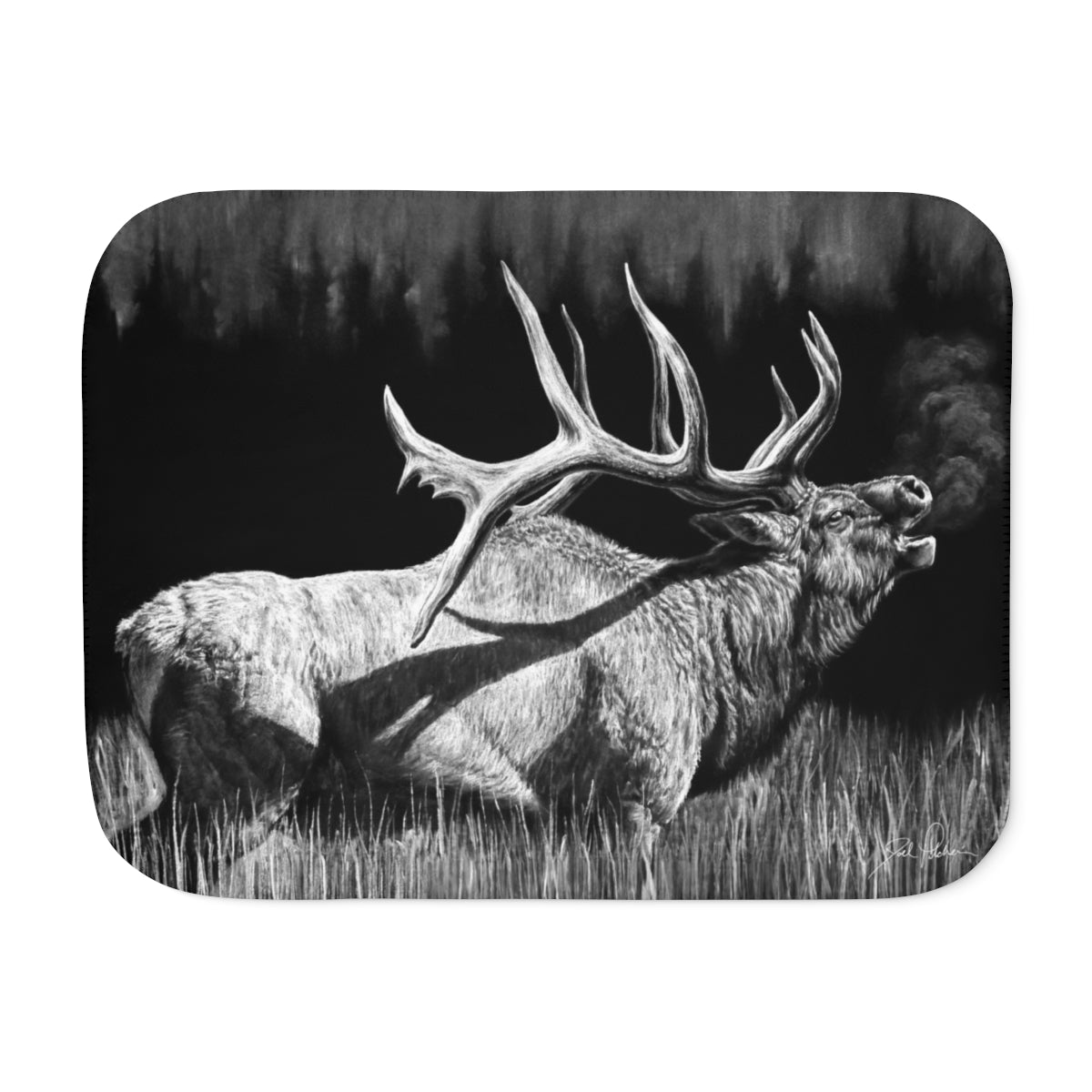 This snuggly sherpa blanket comes in beige or grey colors and features artwork by Joel Pilcher. Made with a supremely soft polyester front and a sherpa back, it's available in 3 sizes.