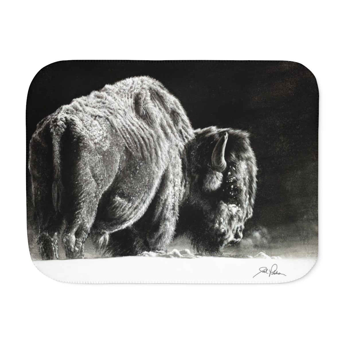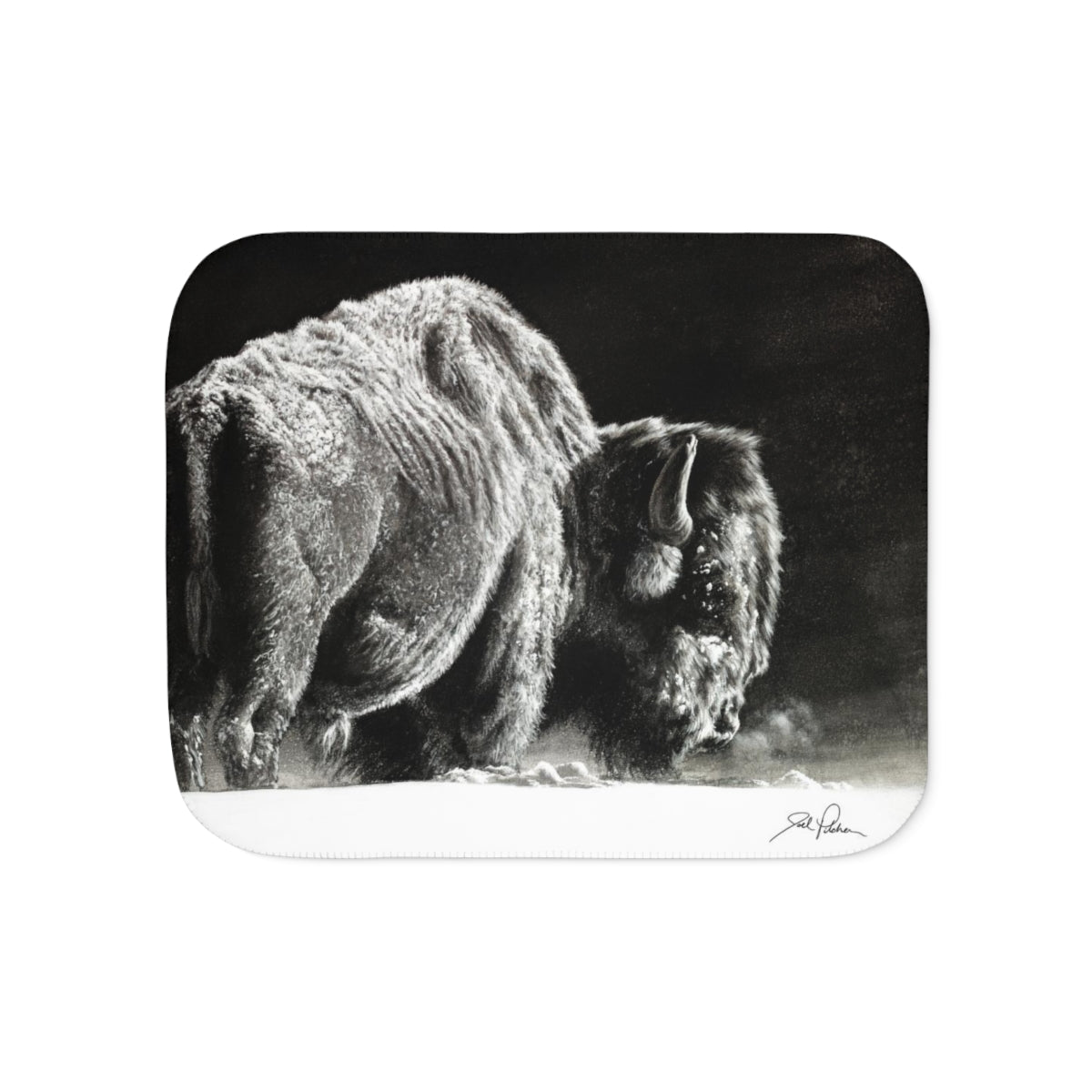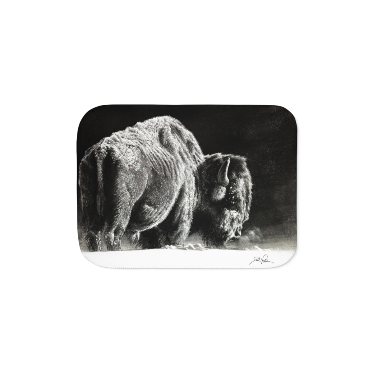 This snuggly sherpa blanket comes in beige or grey colors and features artwork by Joel Pilcher. Made with a supremely soft polyester front and a sherpa back, it's available in 3 sizes.