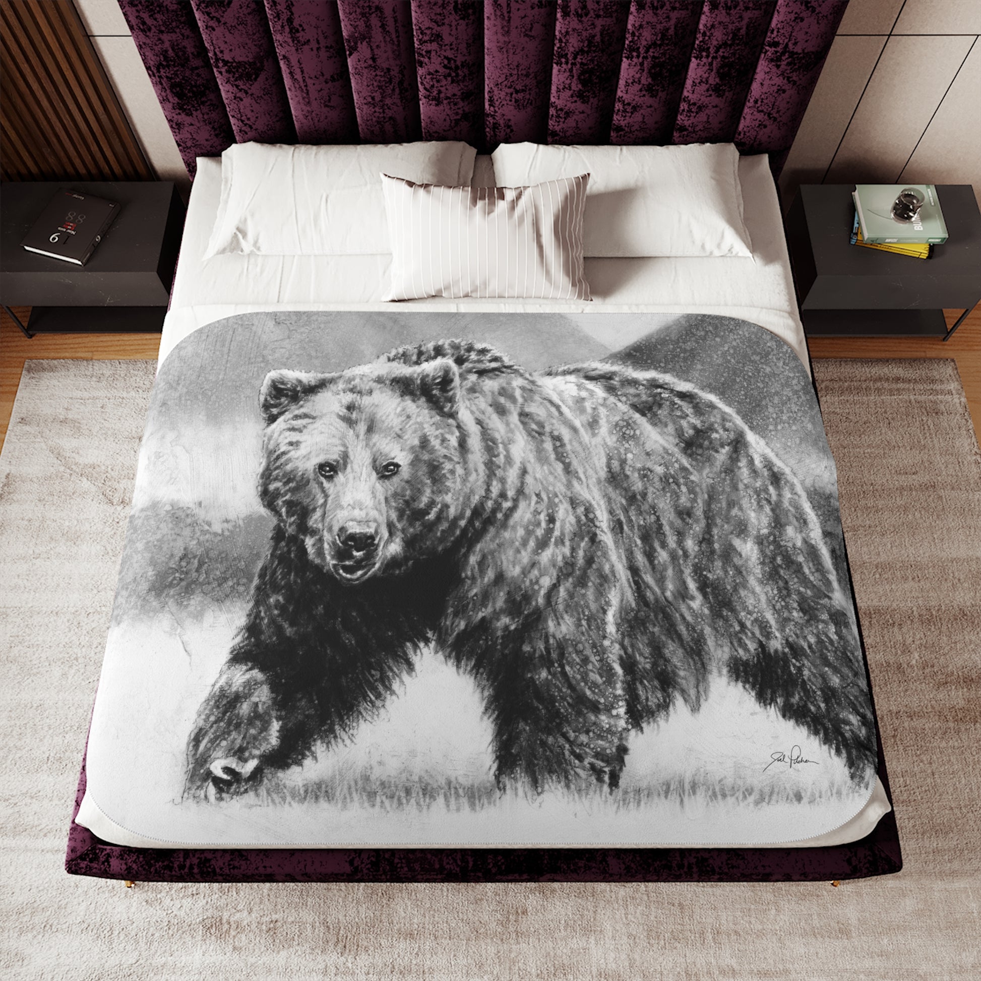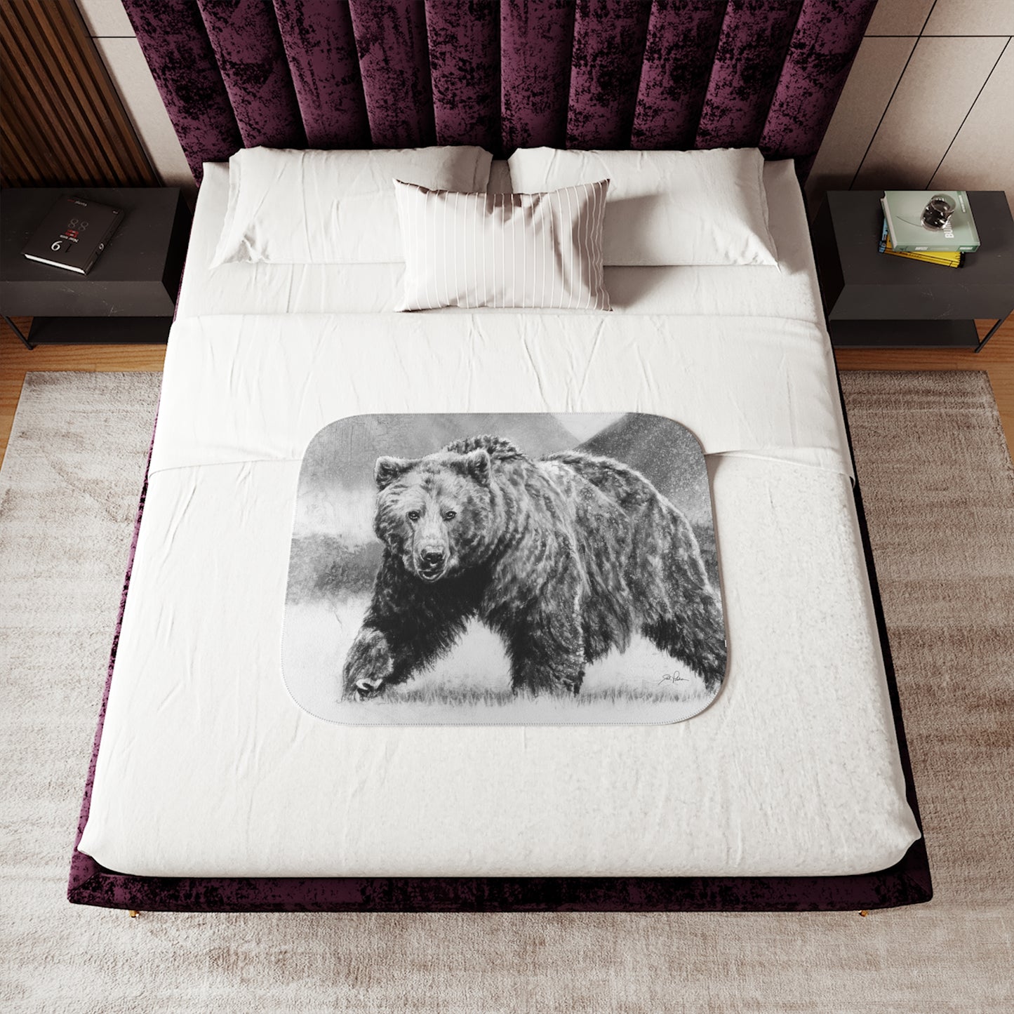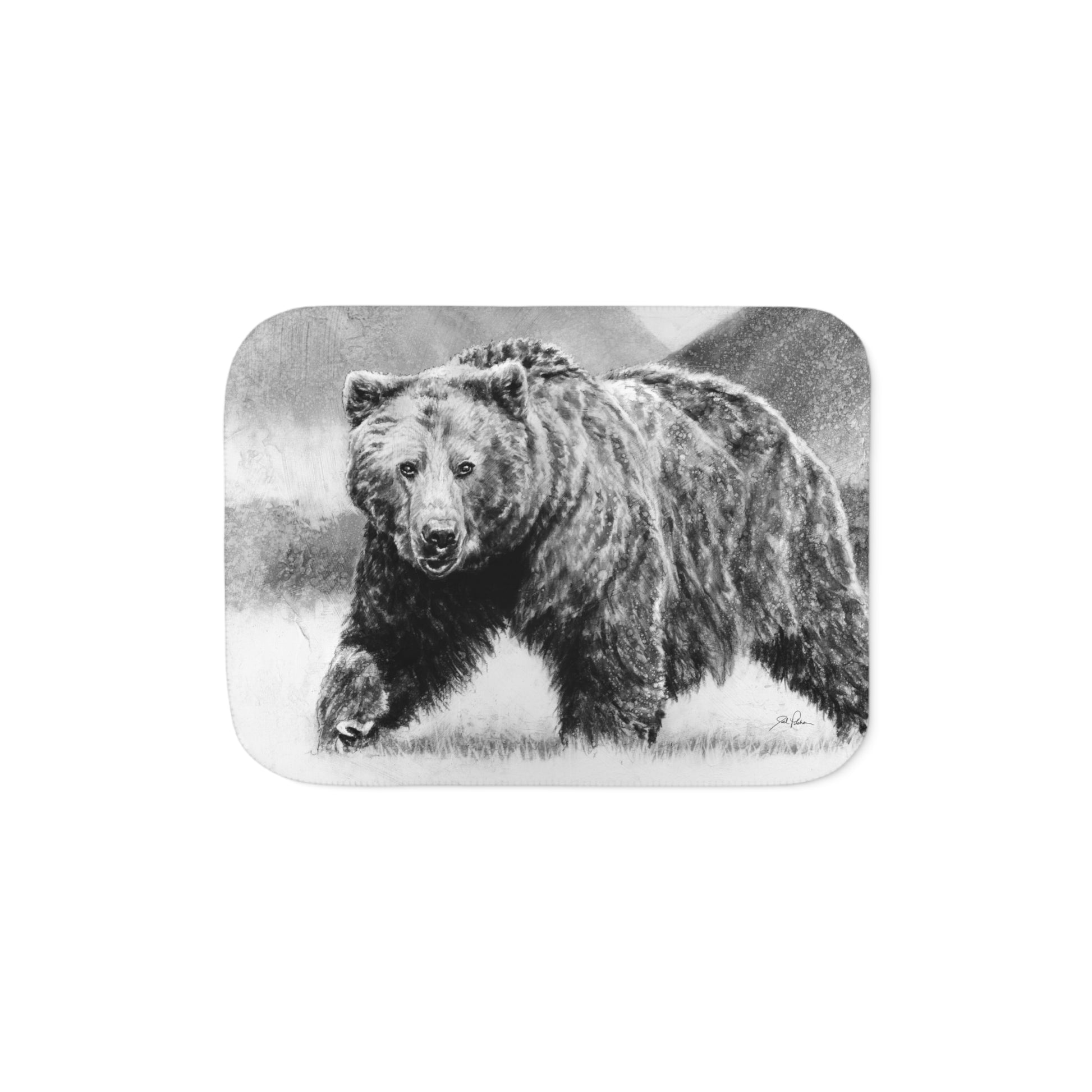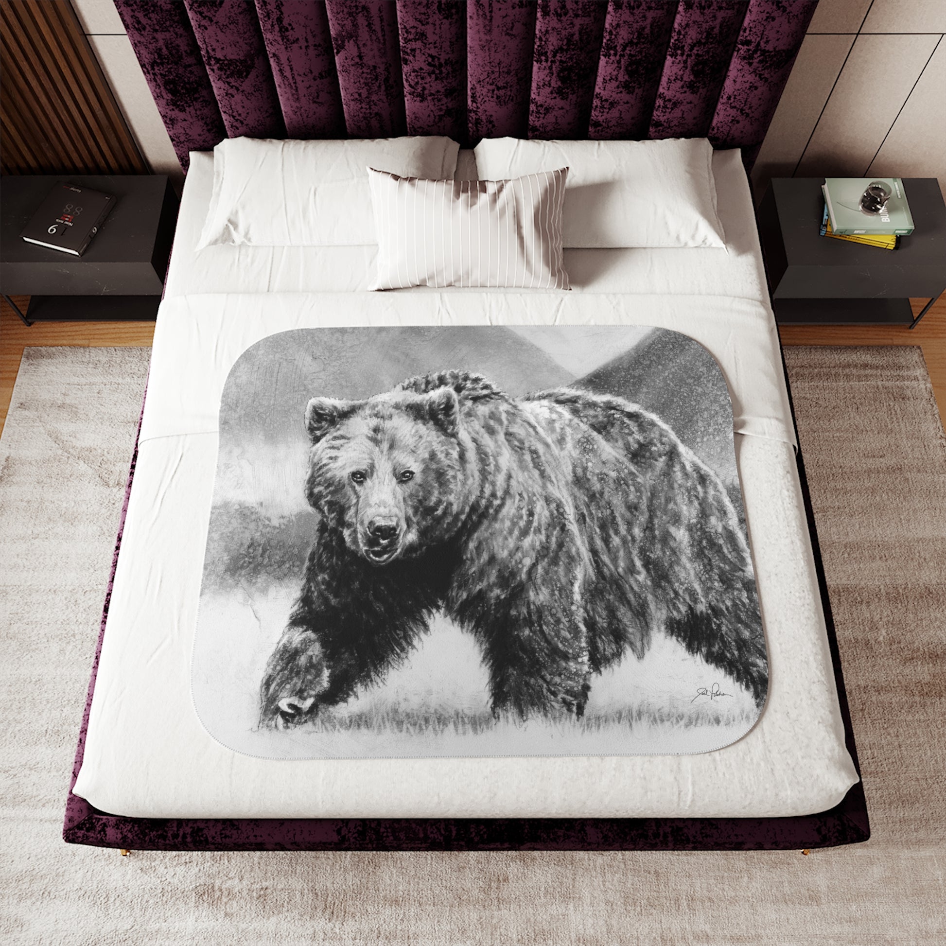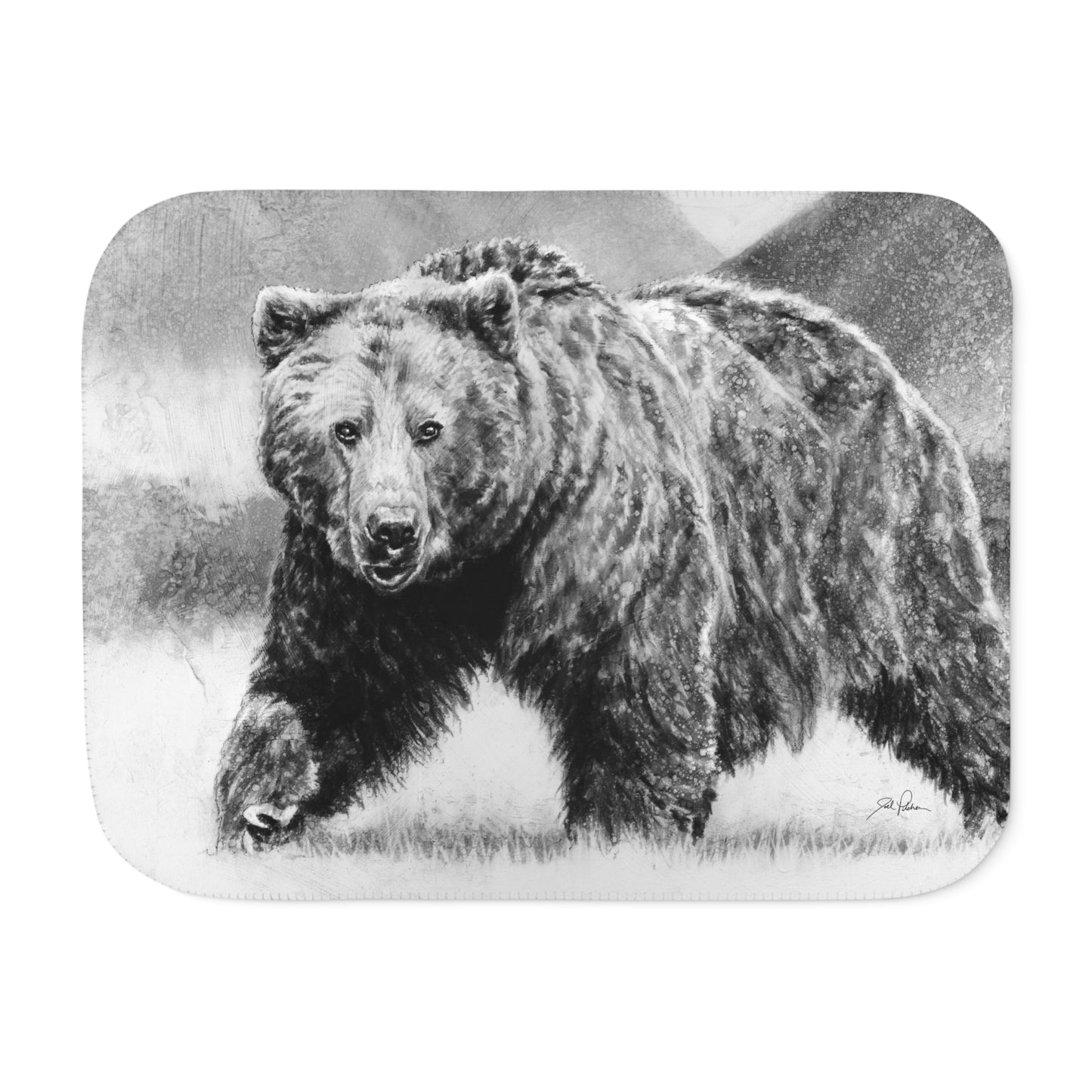 This snuggly sherpa blanket comes in beige or grey colors and features artwork by Joel Pilcher. Made with a supremely soft polyester front and a sherpa back, it's available in 3 sizes.