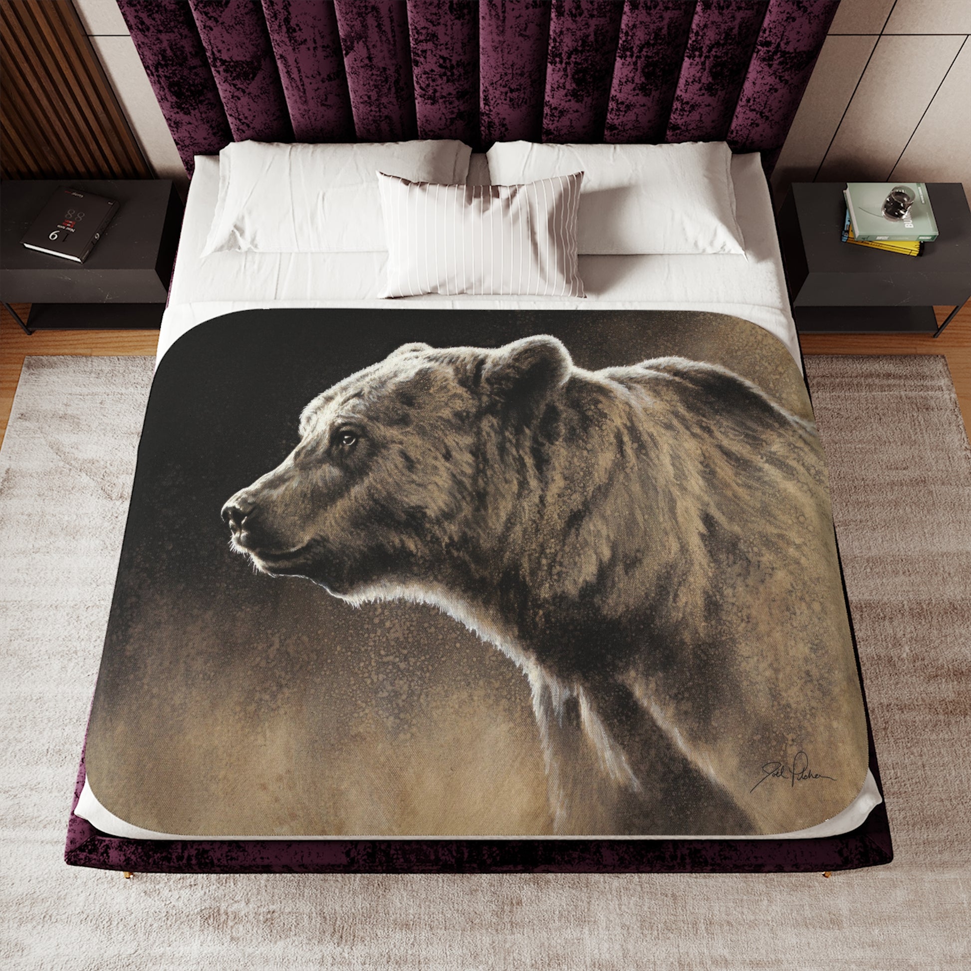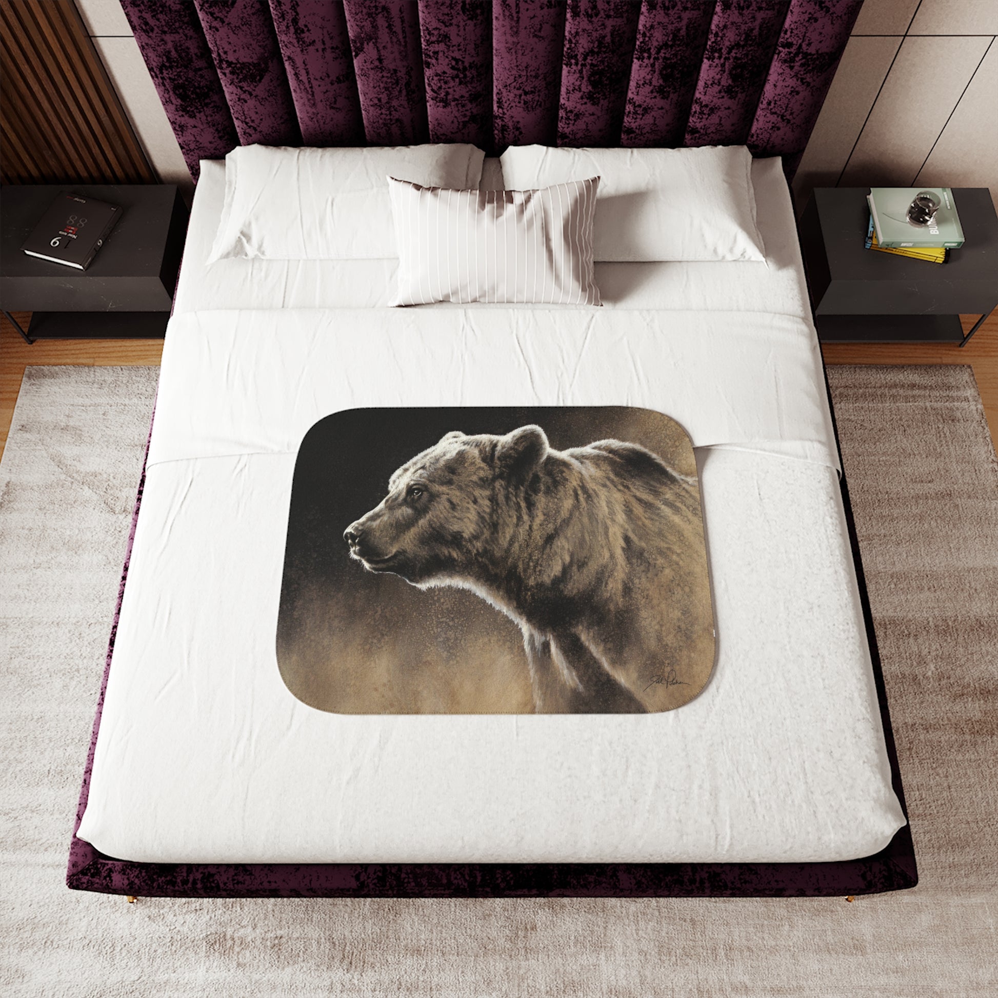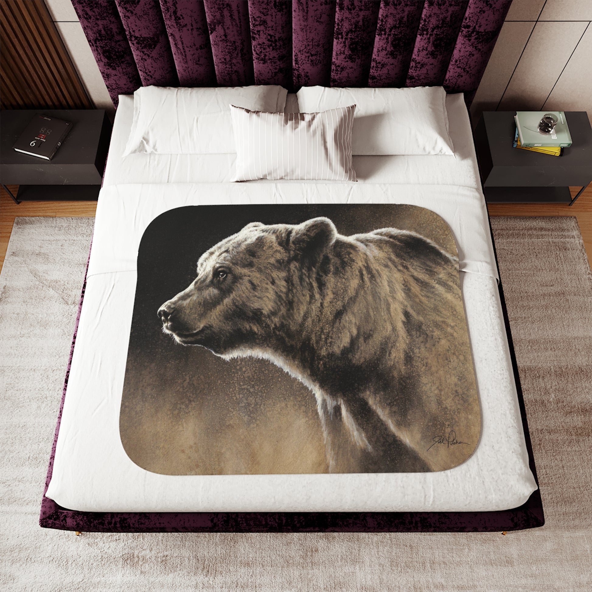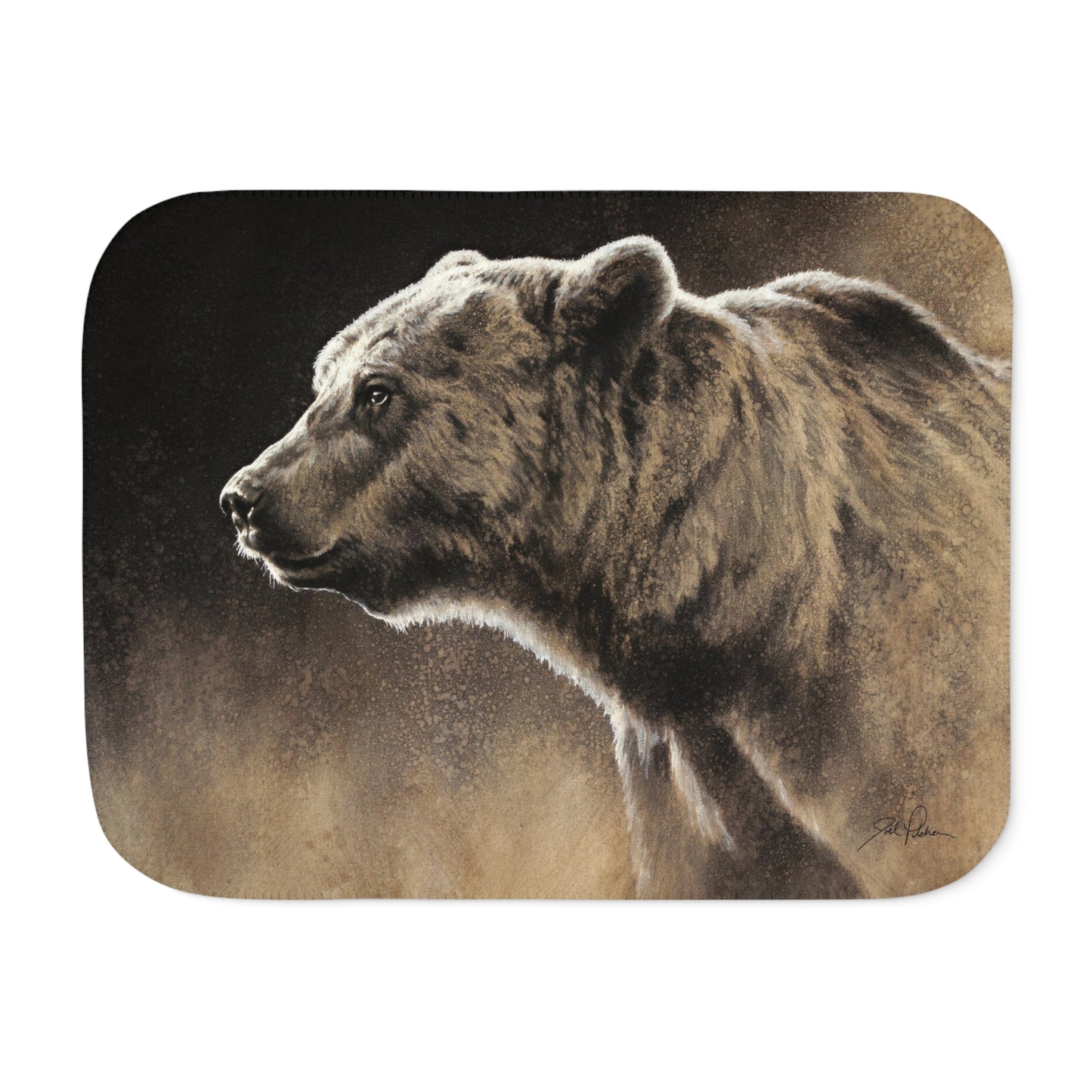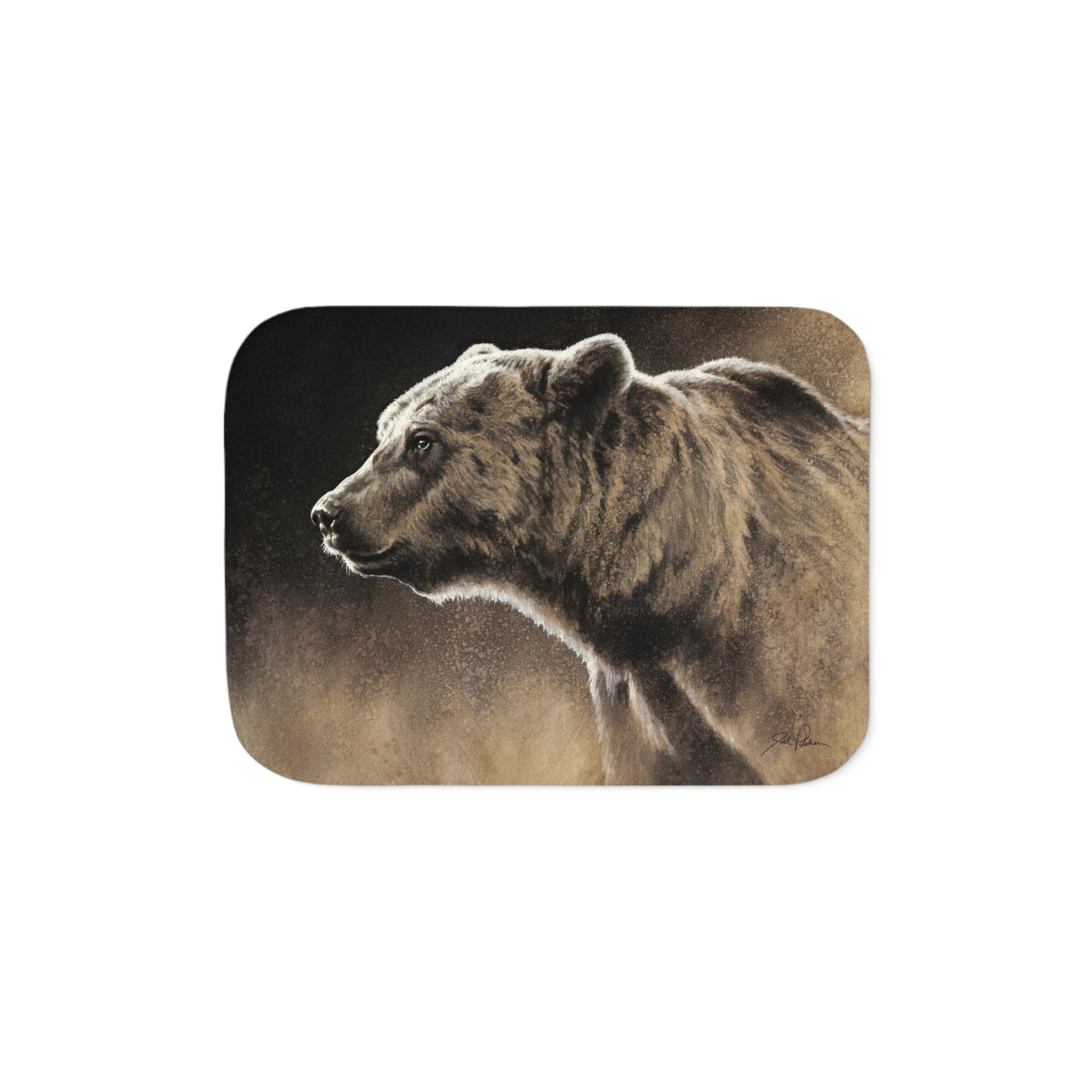 This snuggly sherpa blanket comes in beige or grey colors and features artwork by Joel Pilcher. Made with a supremely soft polyester front and a sherpa back, it's available in 3 sizes.