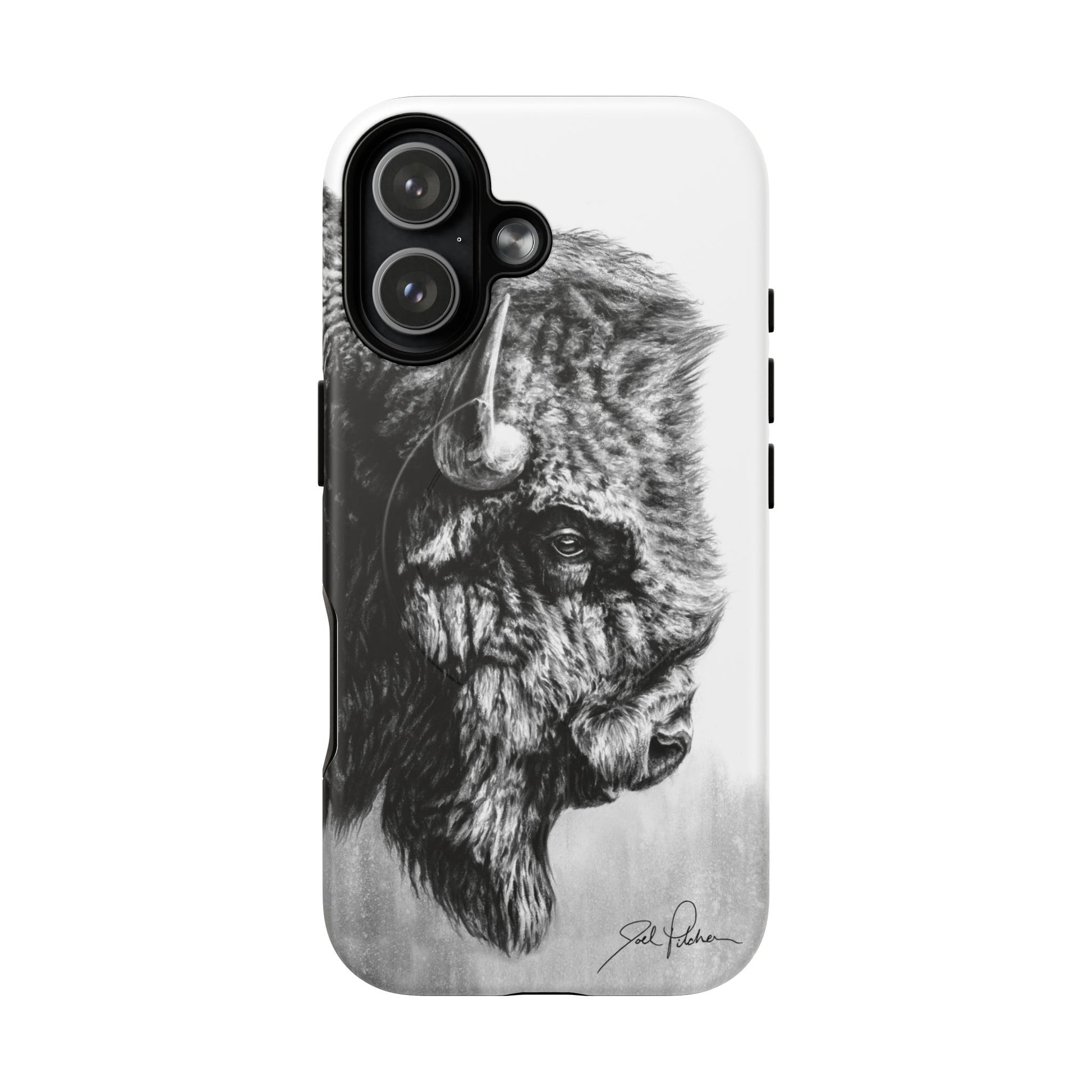 Introducing the Magnetic Tough Case featuring Joel Pilcher Art! This durable and impact-resistant case wraps around your device with a soft TPU silicone liner that absorbs shocks so your phone will be protected against everyday bumps and drops. It's perfect for those who value aesthetics as much as safety. Whether you're heading to the great outdoors, to work at the office, or hanging at home, this case will protect your device in style.