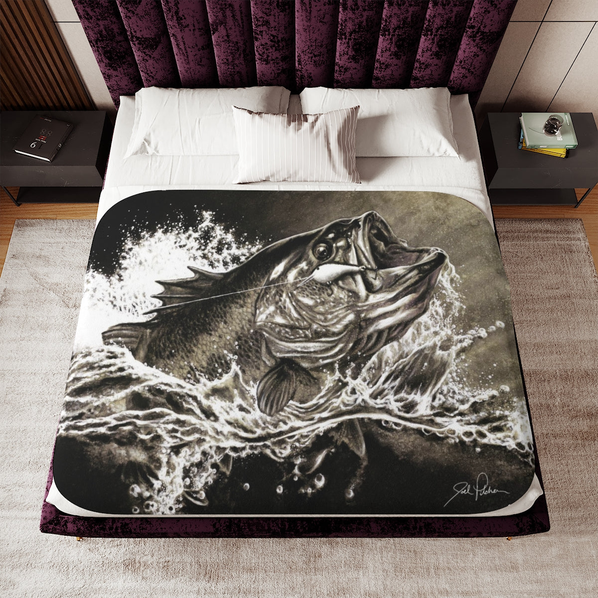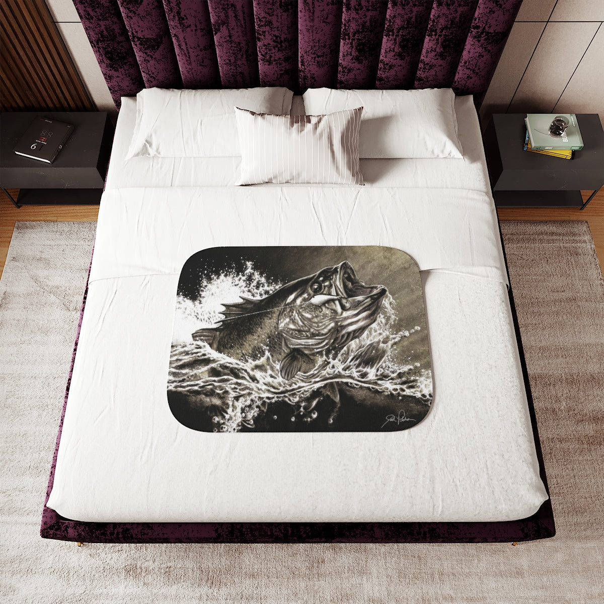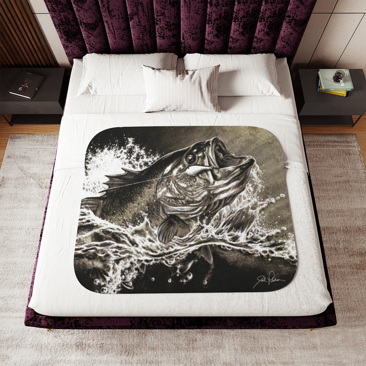 This snuggly sherpa blanket comes in beige or grey colors and features artwork by Joel Pilcher. Made with a supremely soft polyester front and a sherpa back, it's available in 3 sizes.