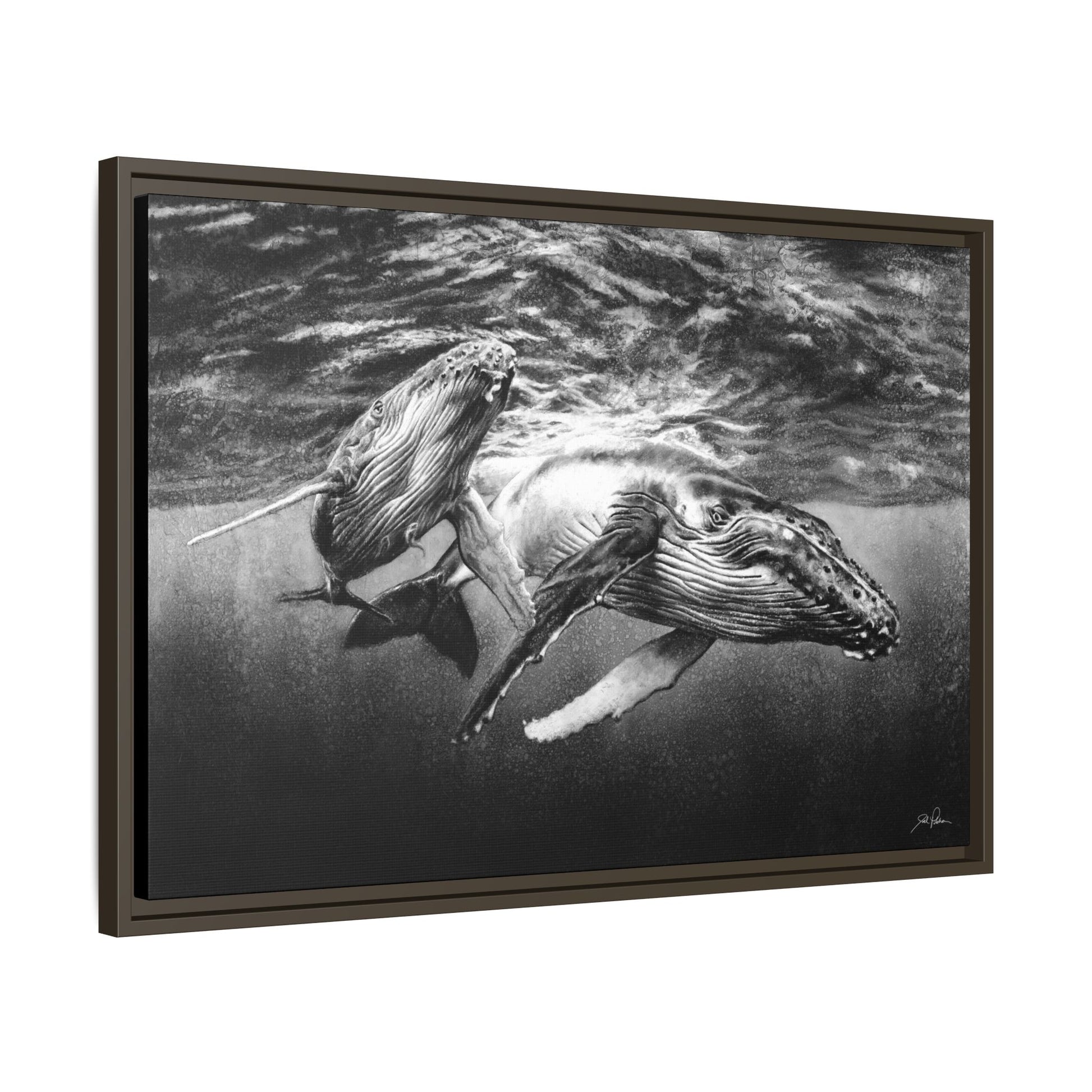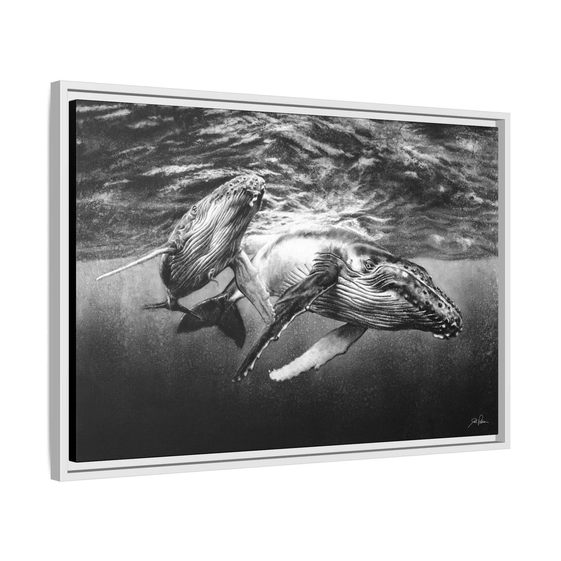 "Humpback Whales" Framed Canvas
