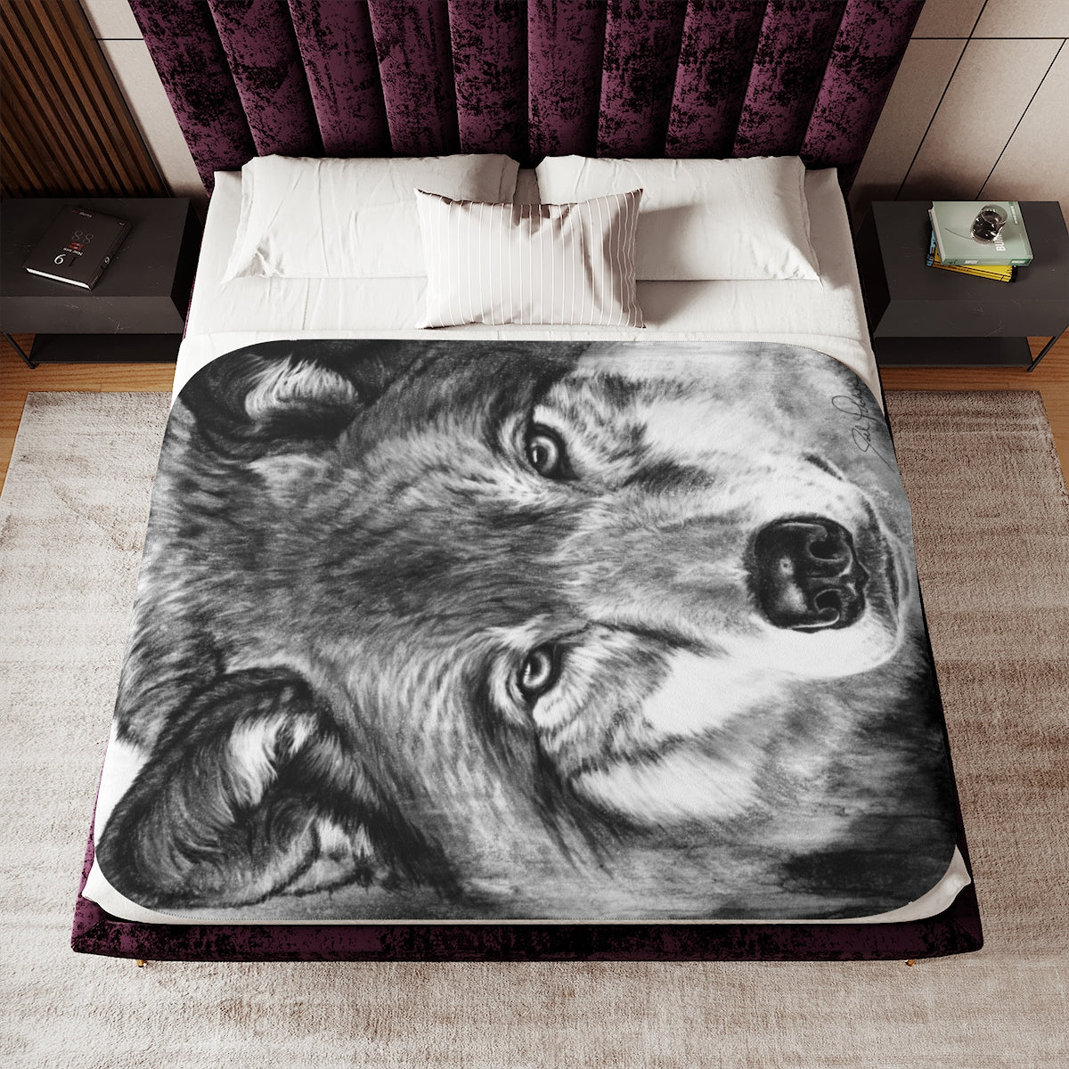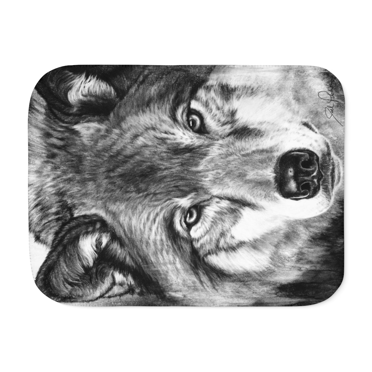 This snuggly sherpa blanket comes in beige or grey colors and features artwork by Joel Pilcher. Made with a supremely soft polyester front and a sherpa back, it's available in 3 sizes.
