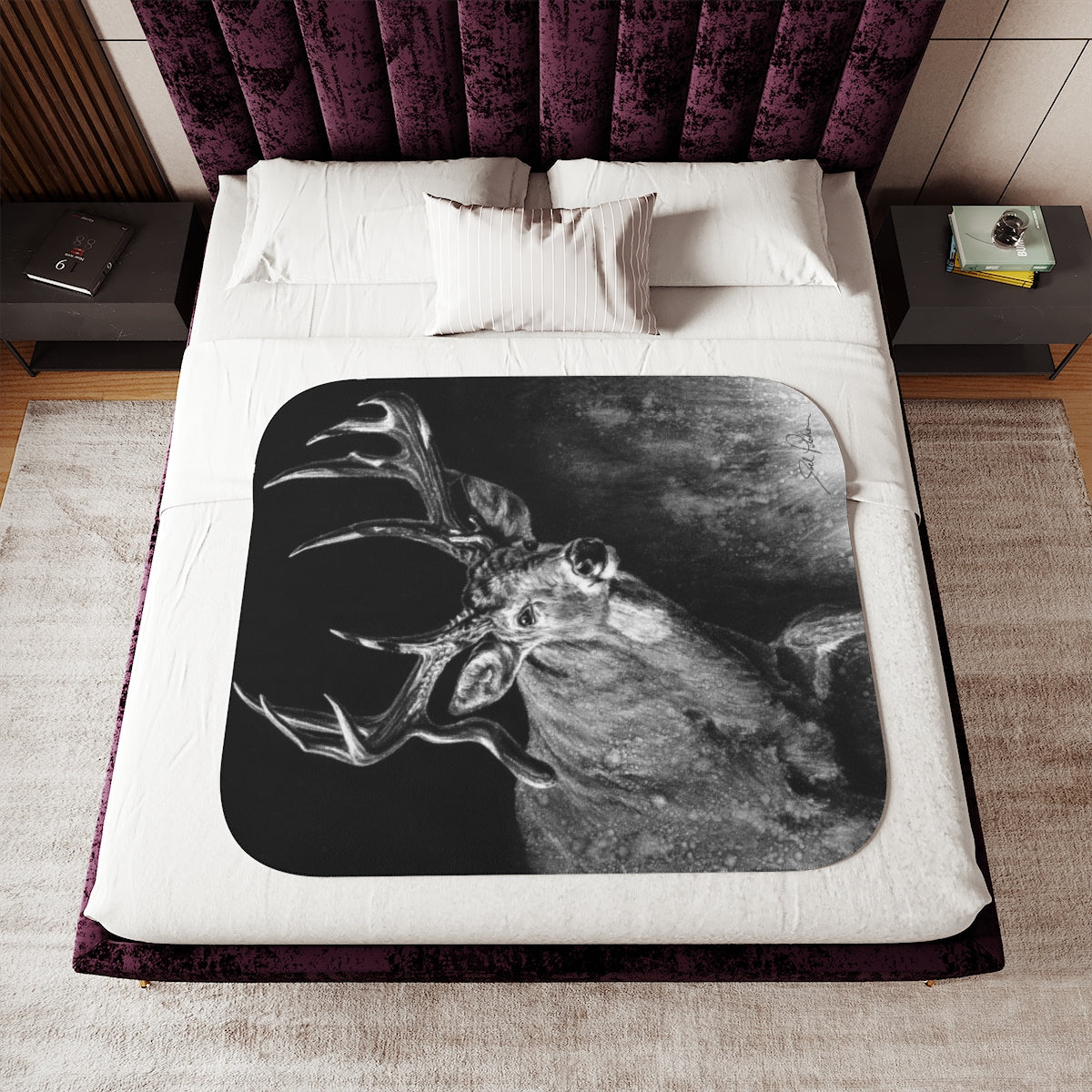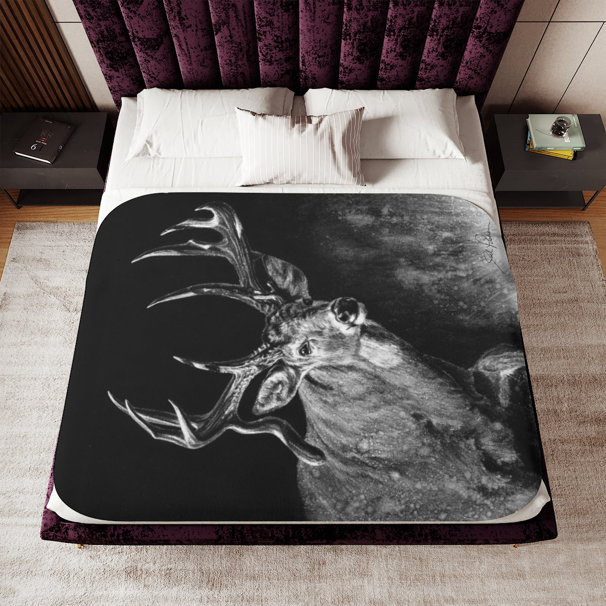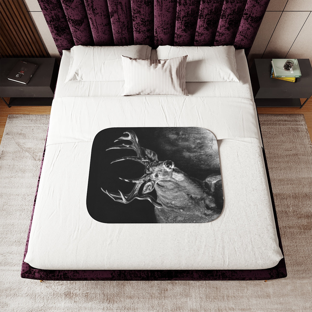 This snuggly sherpa blanket comes in beige or grey colors and features artwork by Joel Pilcher. Made with a supremely soft polyester front and a sherpa back, it's available in 3 sizes.