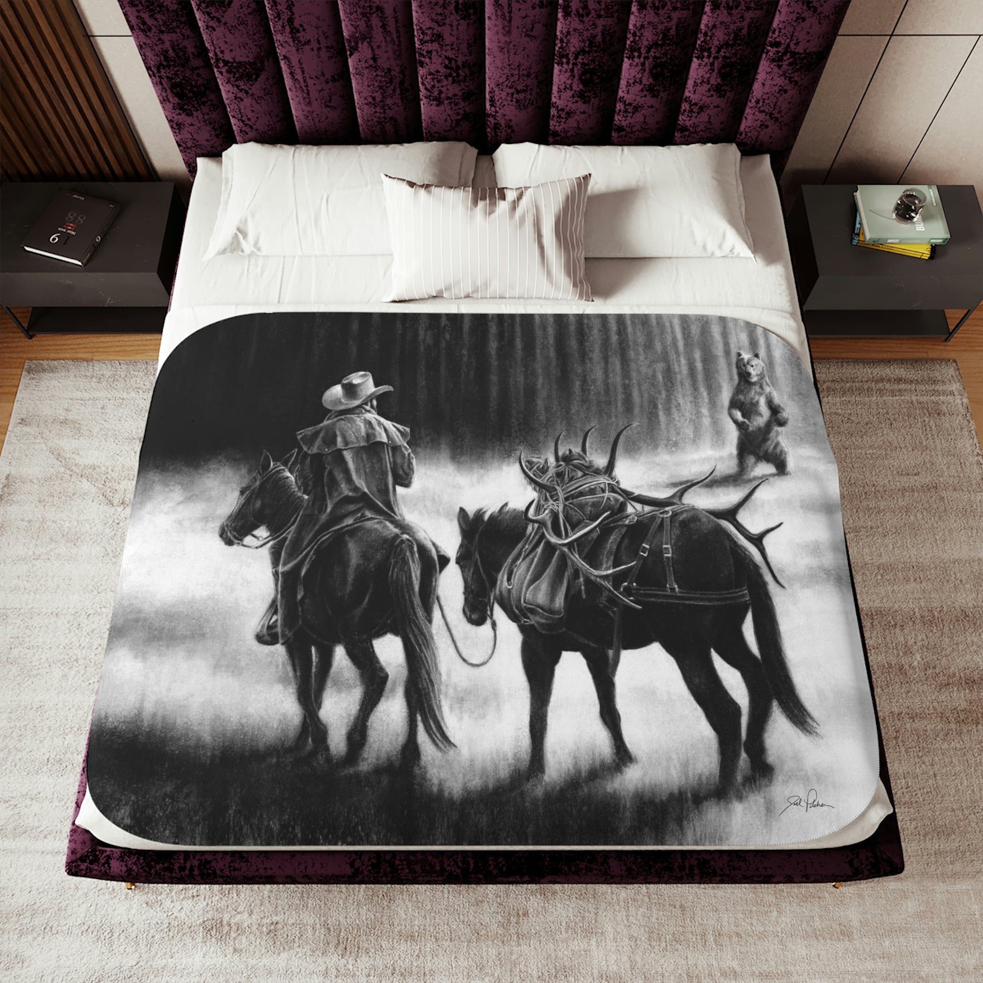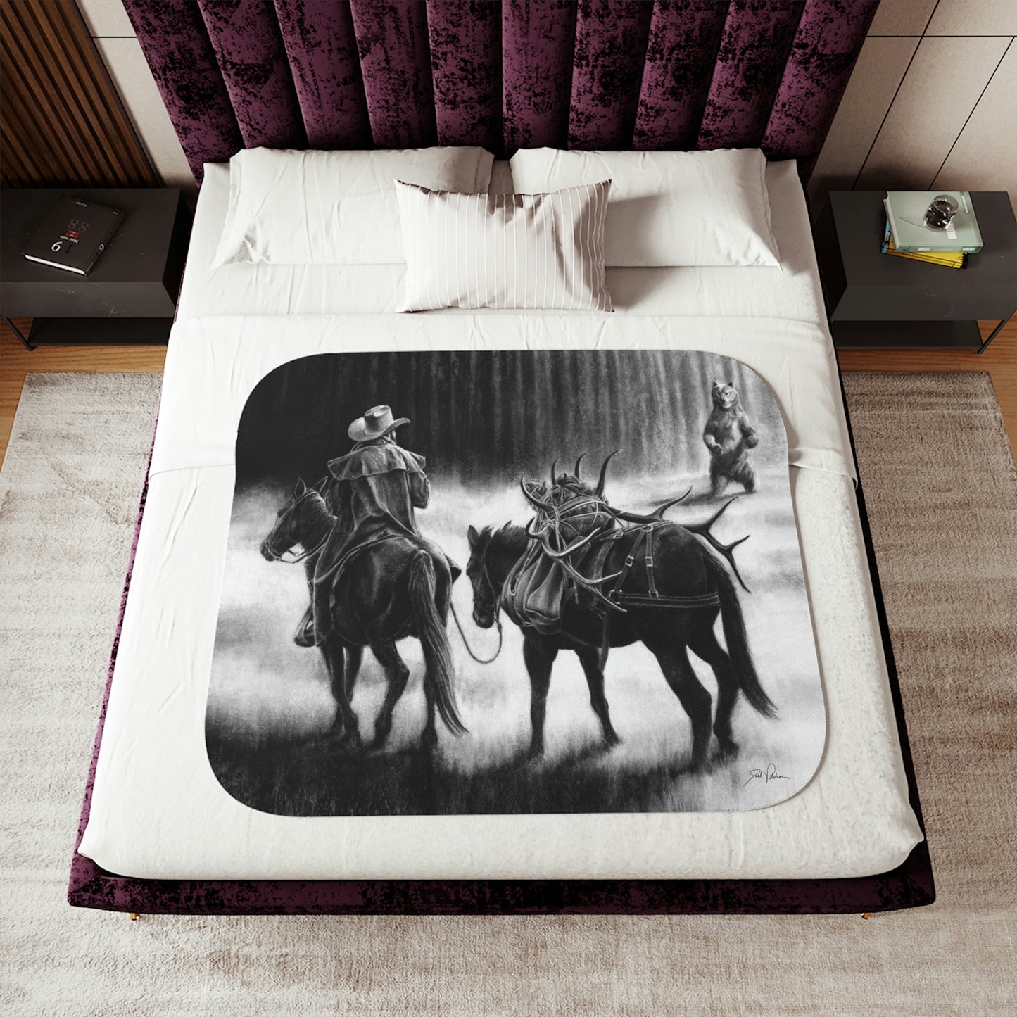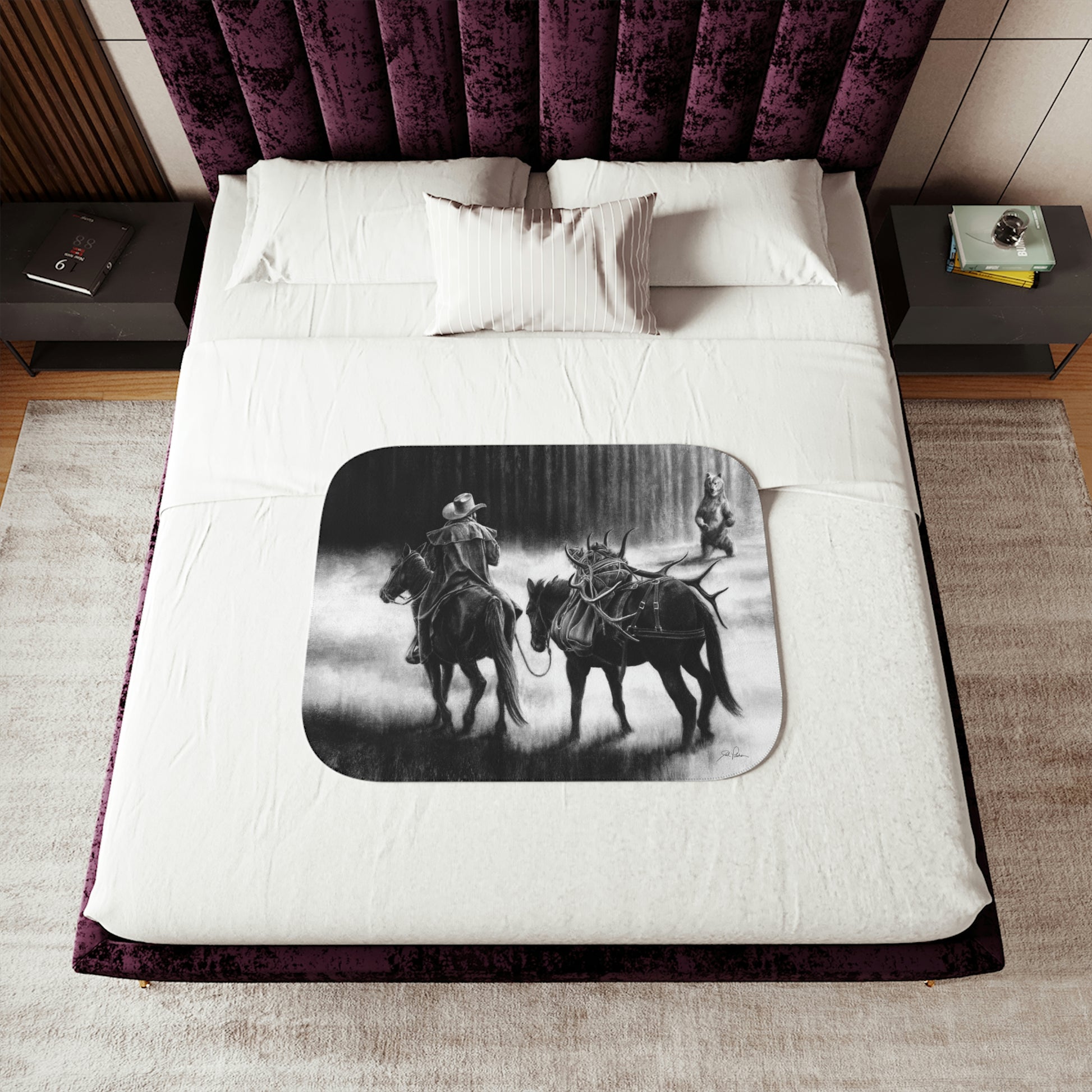 This snuggly sherpa blanket comes in beige or grey colors and features artwork by Joel Pilcher. Made with a supremely soft polyester front and a sherpa back, it's available in 3 sizes.