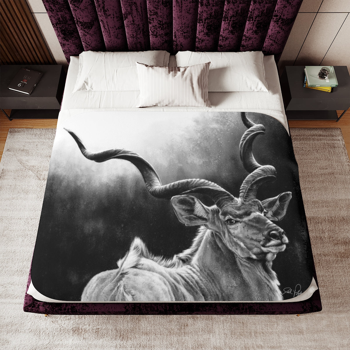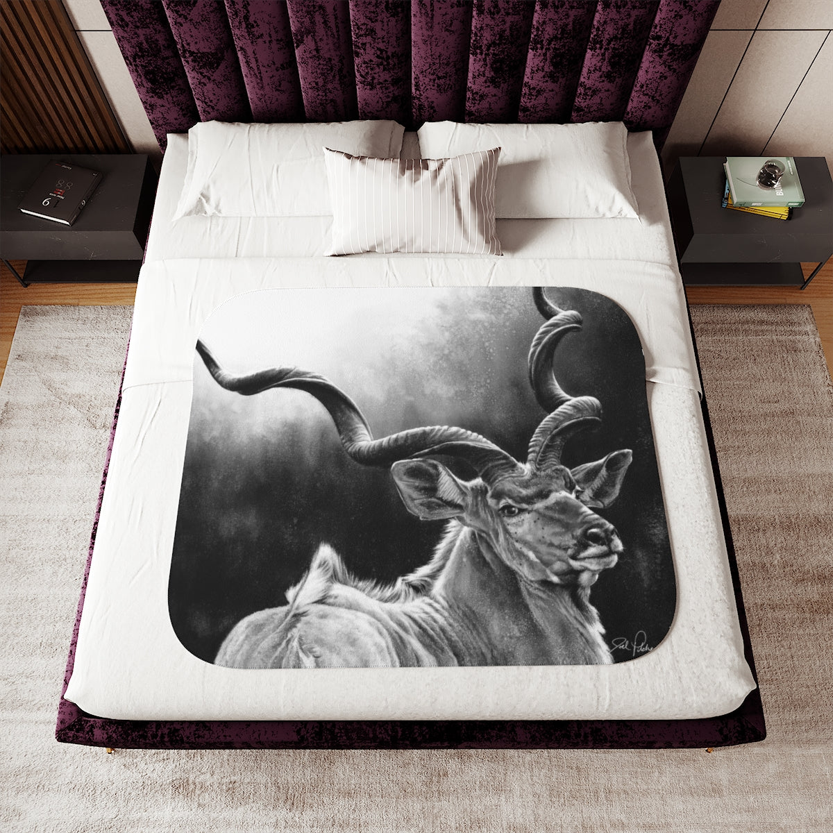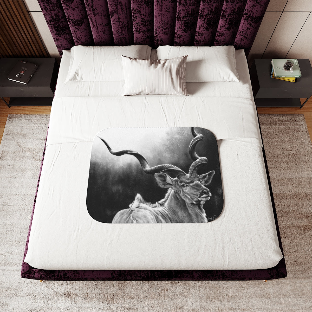 This snuggly sherpa blanket comes in beige or grey colors and features artwork by Joel Pilcher. Made with a supremely soft polyester front and a sherpa back, it's available in 3 sizes.