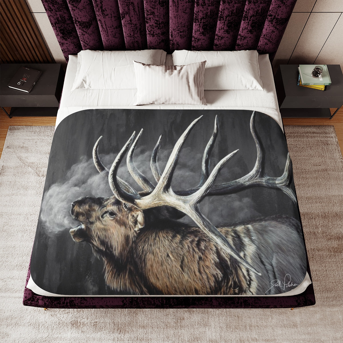 This snuggly sherpa blanket comes in beige or grey colors and features artwork by Joel Pilcher. Made with a supremely soft polyester front and a sherpa back, it's available in 3 sizes.