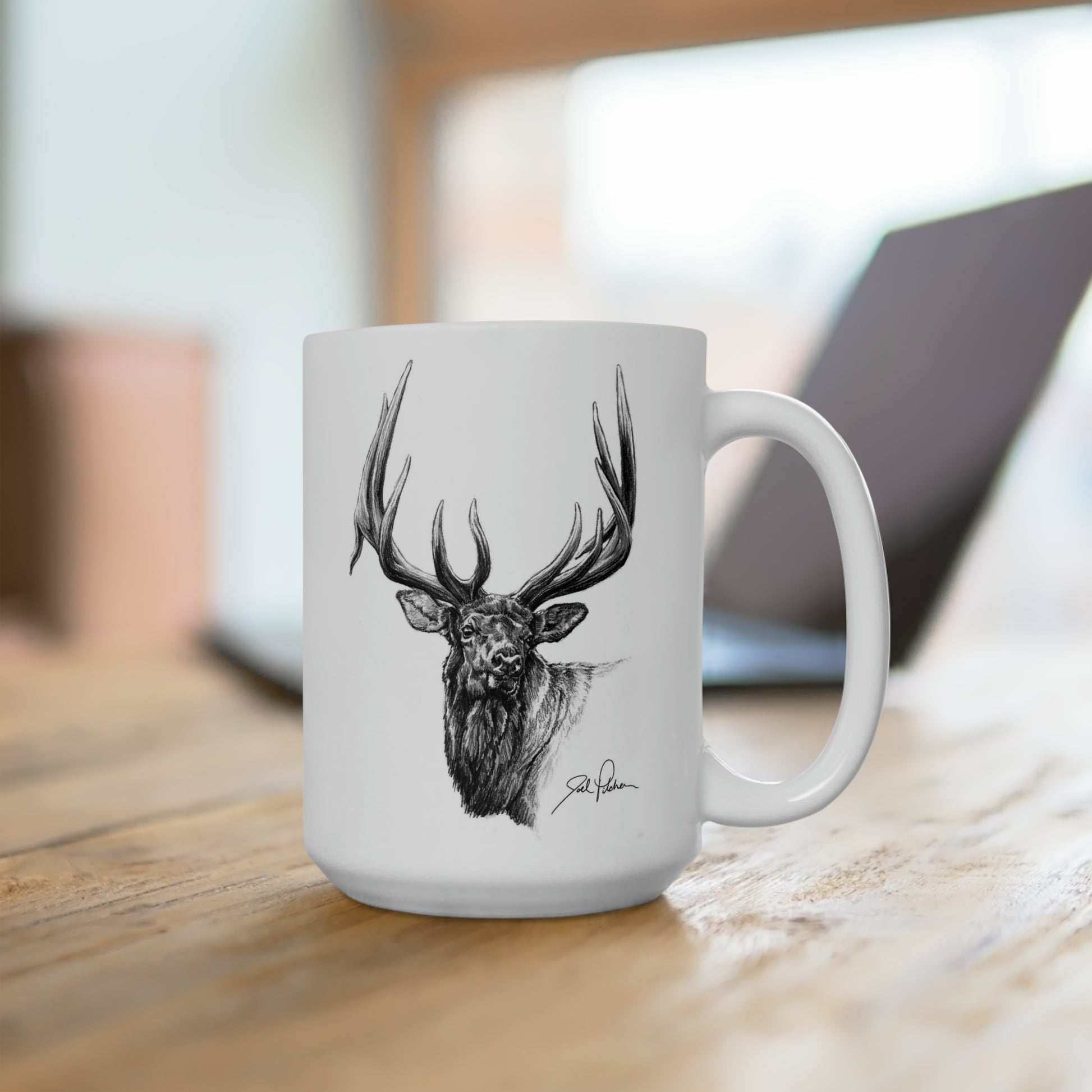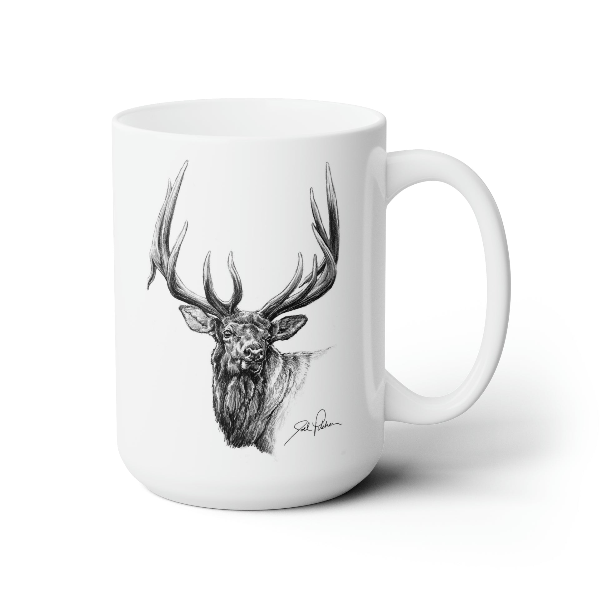 This 15 ounce mug features a bull elk sketch by Joel Pilcher. It’s microwave-safe and can be washed in dishwasher or easily cleaned with a mild detergent.
