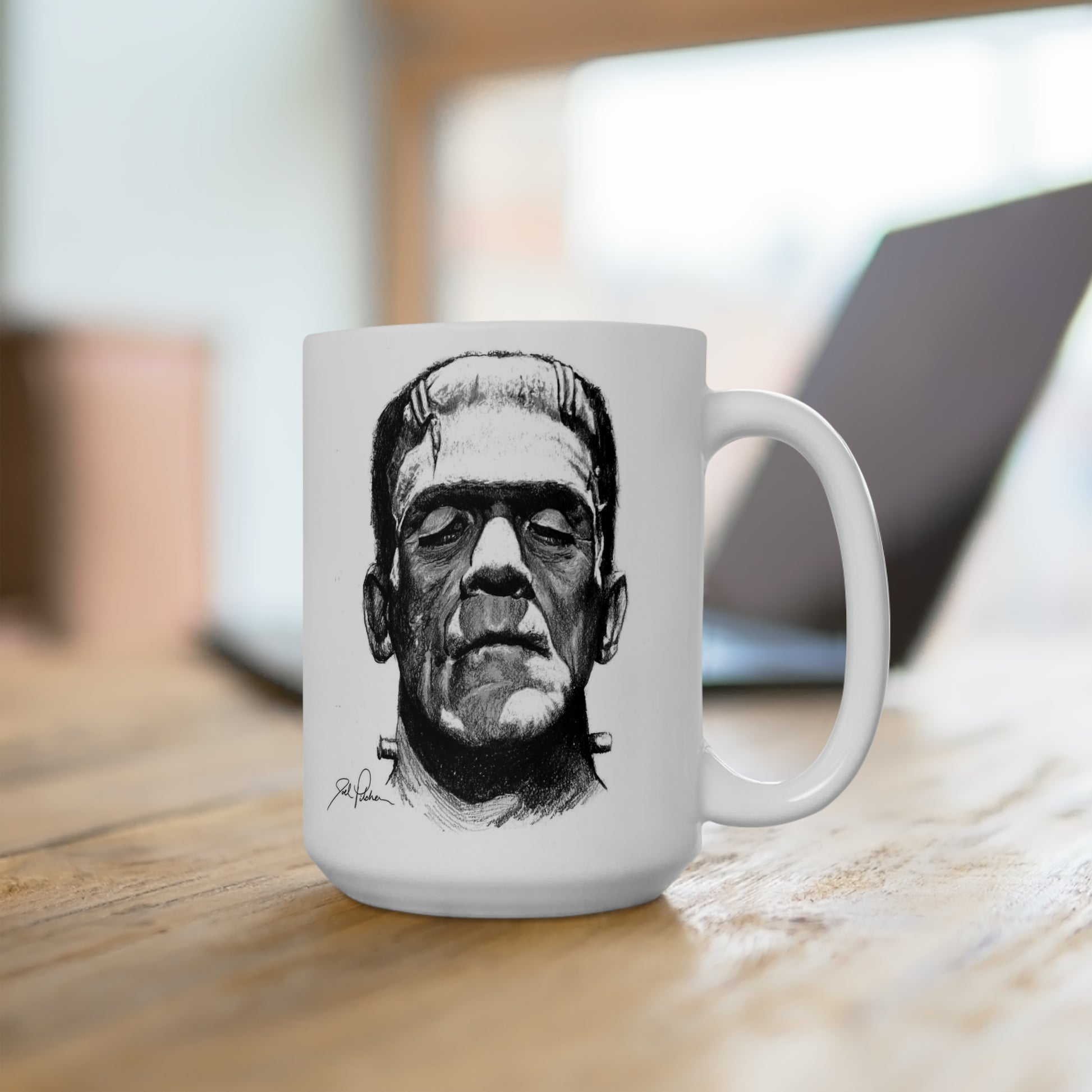 This 15 ounce mug featuring a sketch of Frankenstein by Joel Pilcher is a limited time offer. It's only available for one week! Buy it before Monday, October 17th or miss out. It’s microwave-safe, and can be washed in dishwasher or easily cleaned with a mild detergent.