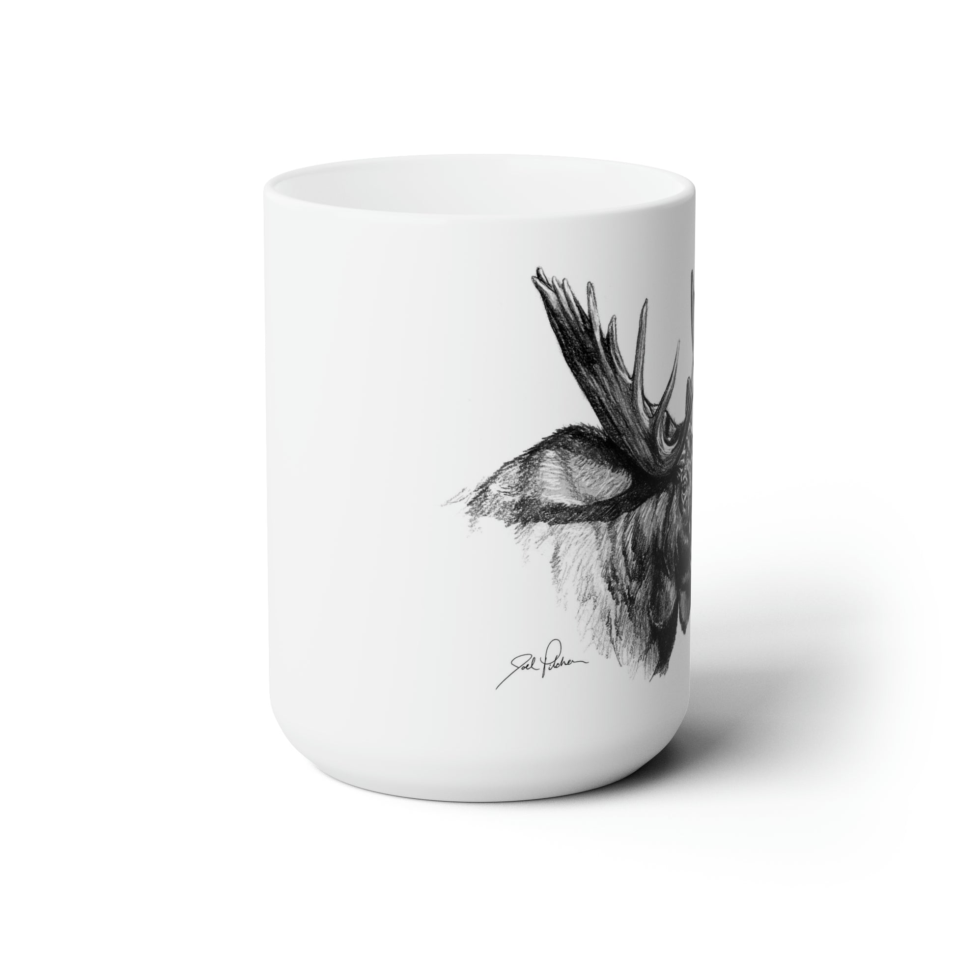 This 15 ounce mug features a bull moose sketch by Joel Pilcher. It’s microwave-safe, and can be washed in dishwasher or easily cleaned with a mild detergent.