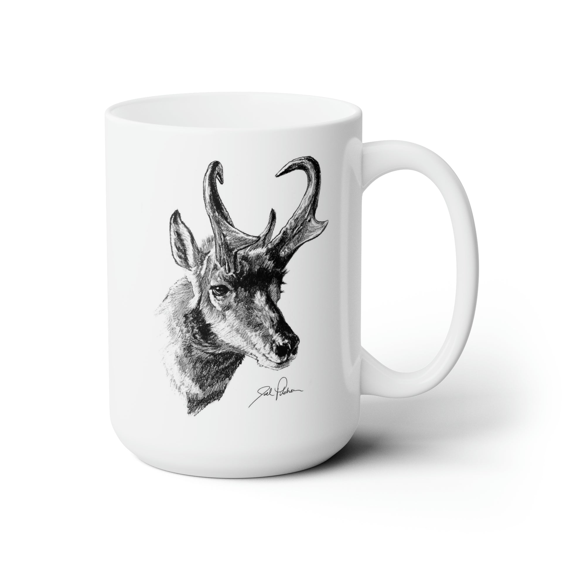This 15 ounce mug features a pronghorn sketch by Joel Pilcher. It’s microwave-safe and can be washed in dishwasher or easily cleaned with a mild detergent.