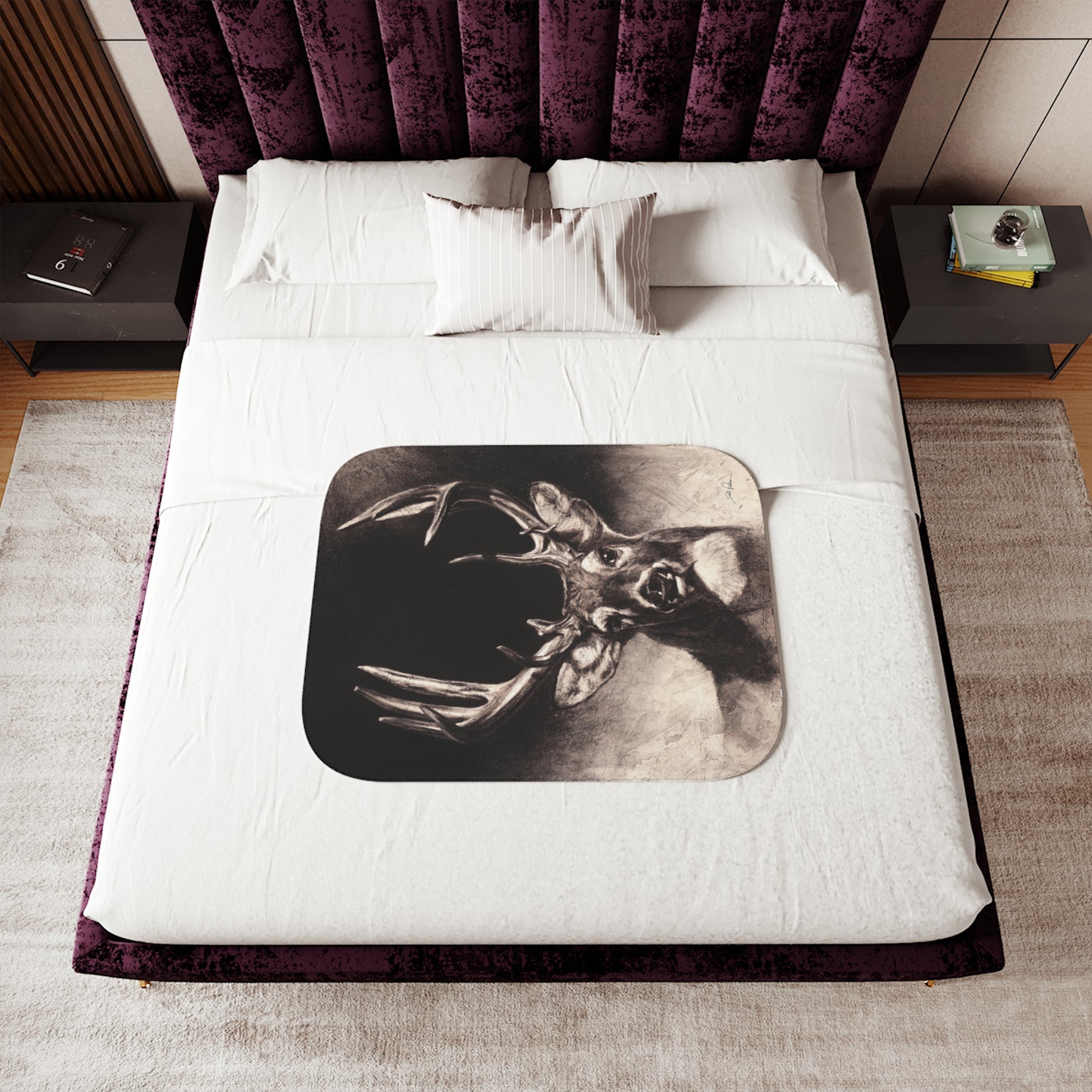 This snuggly sherpa blanket comes in beige or grey colors and features artwork by Joel Pilcher. Made with a supremely soft polyester front and a sherpa back, it's available in 3 sizes.