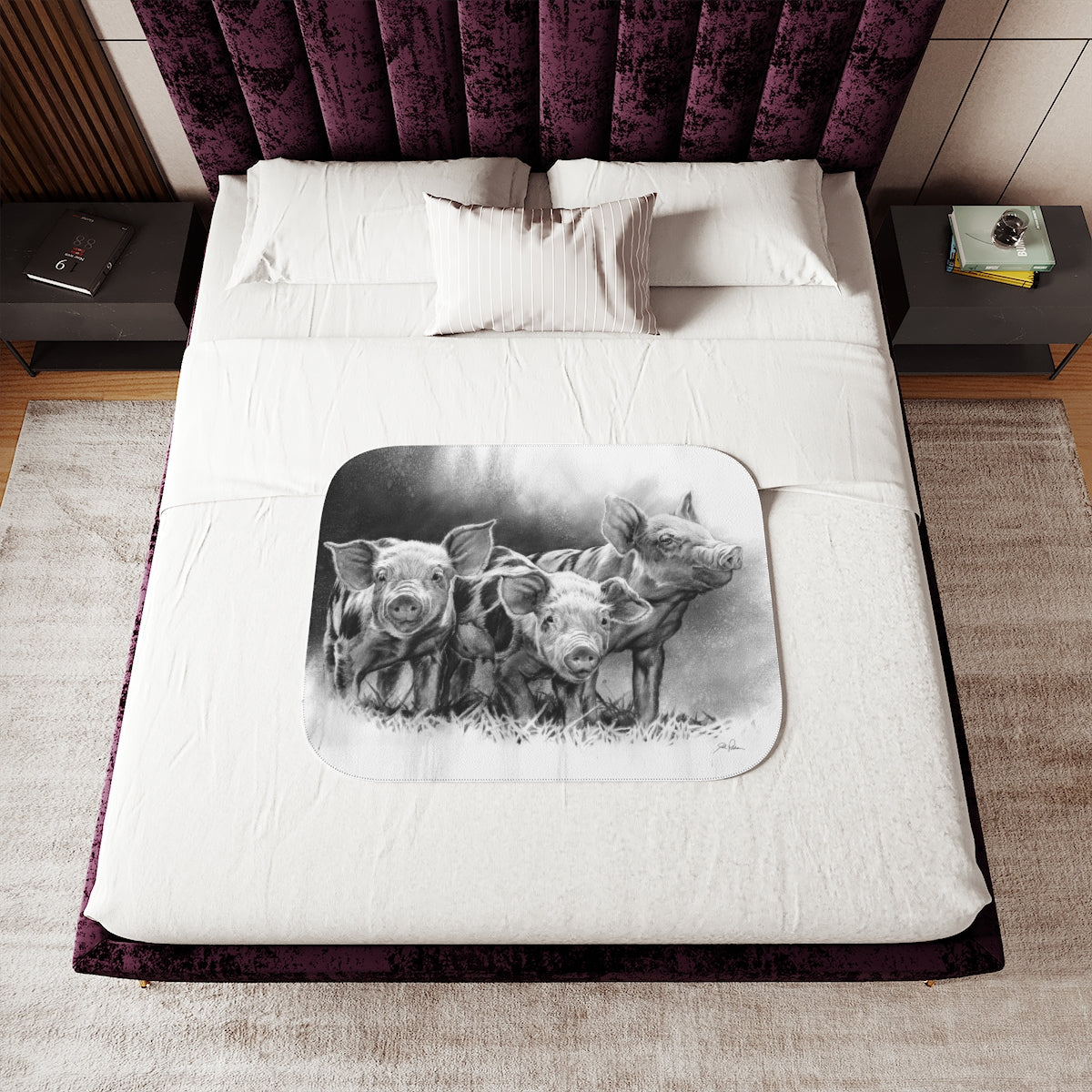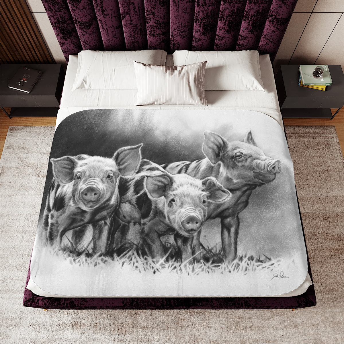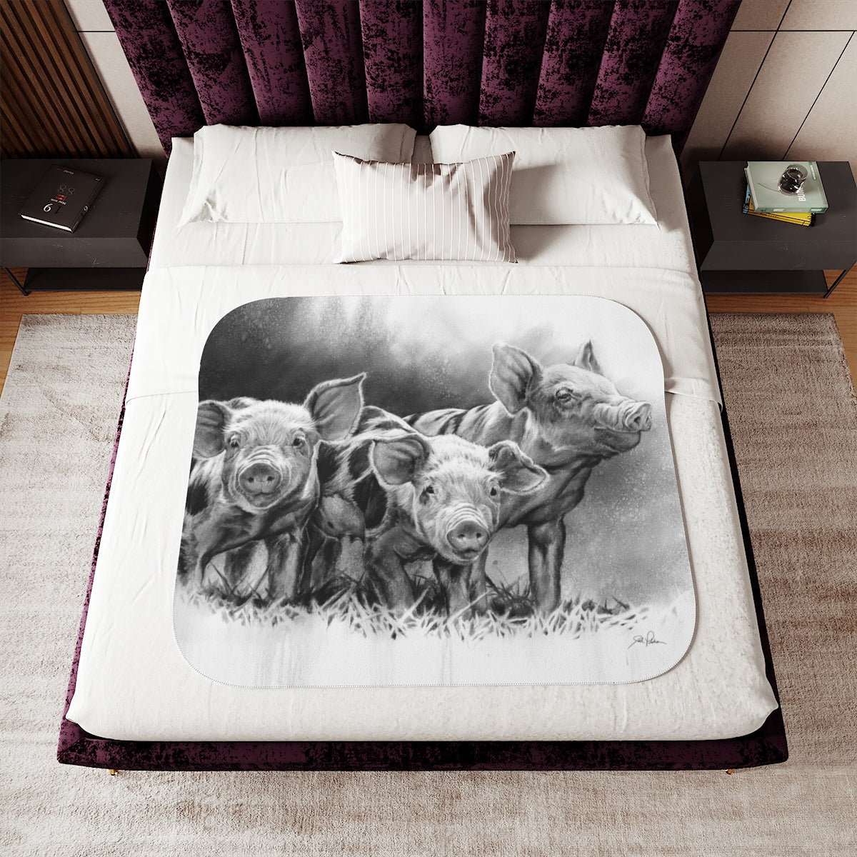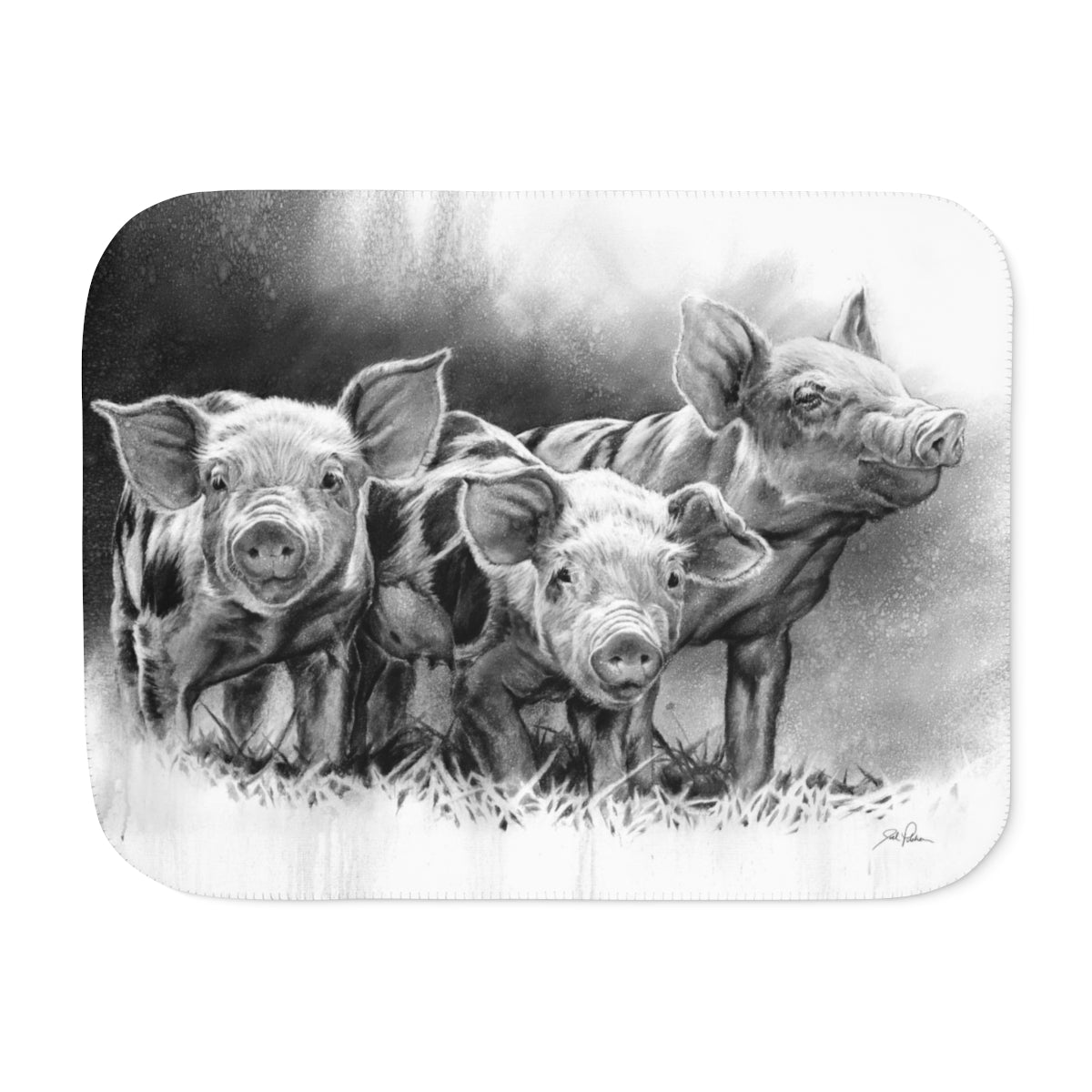 This snuggly sherpa blanket comes in beige or grey colors and features artwork by Joel Pilcher. Made with a supremely soft polyester front and a sherpa back, it's available in 3 sizes.