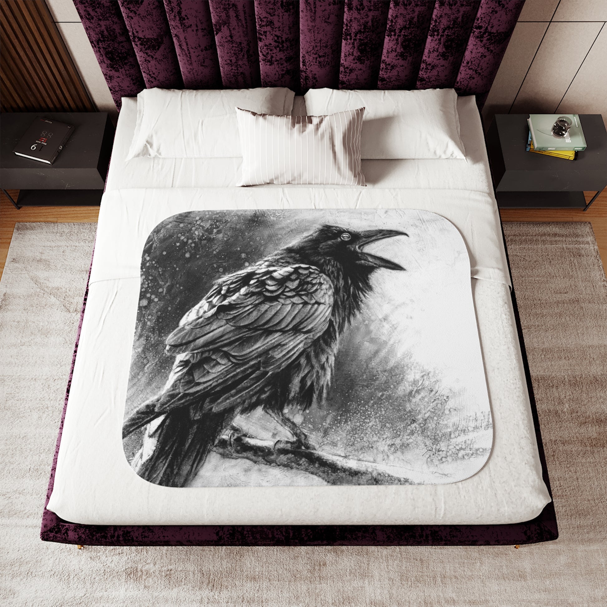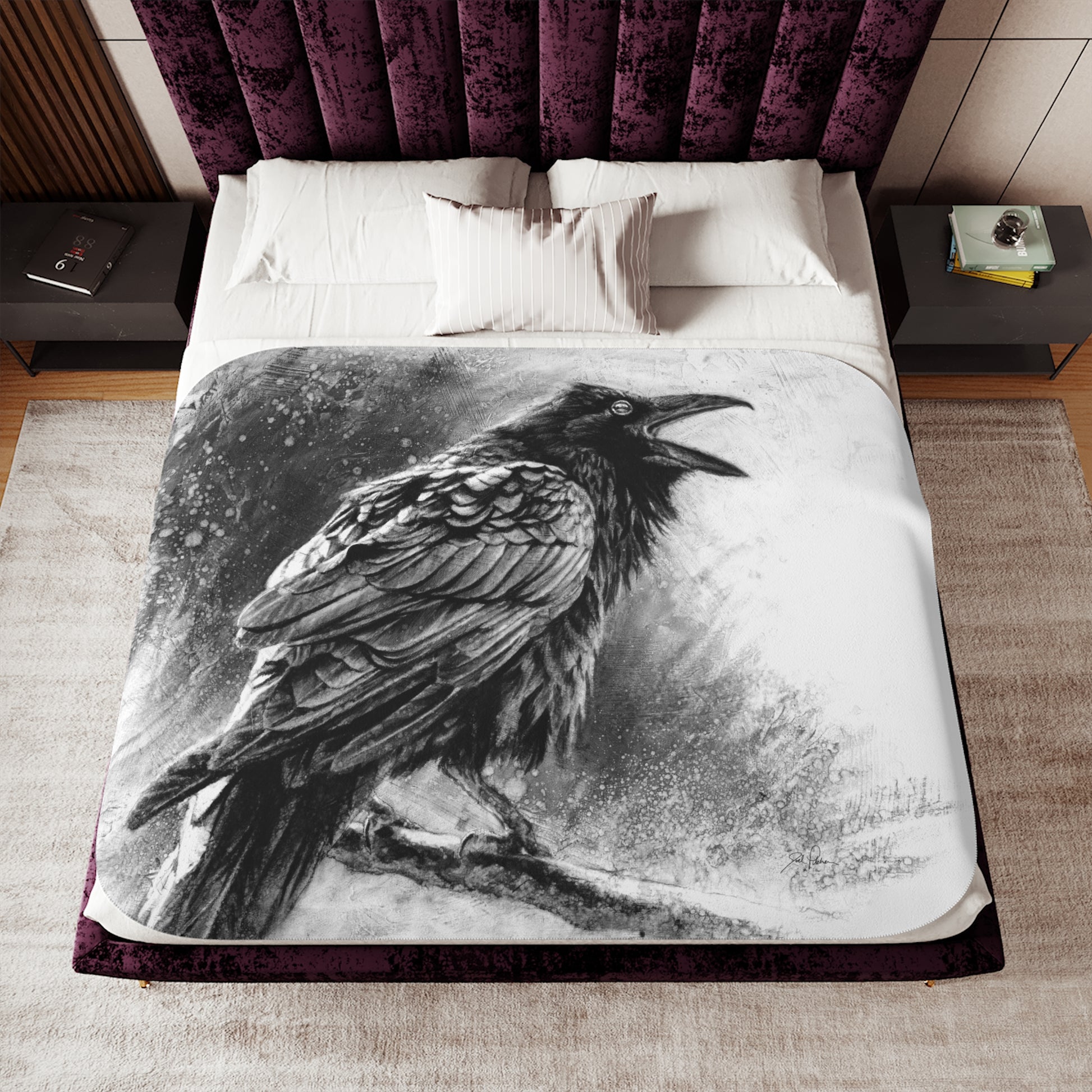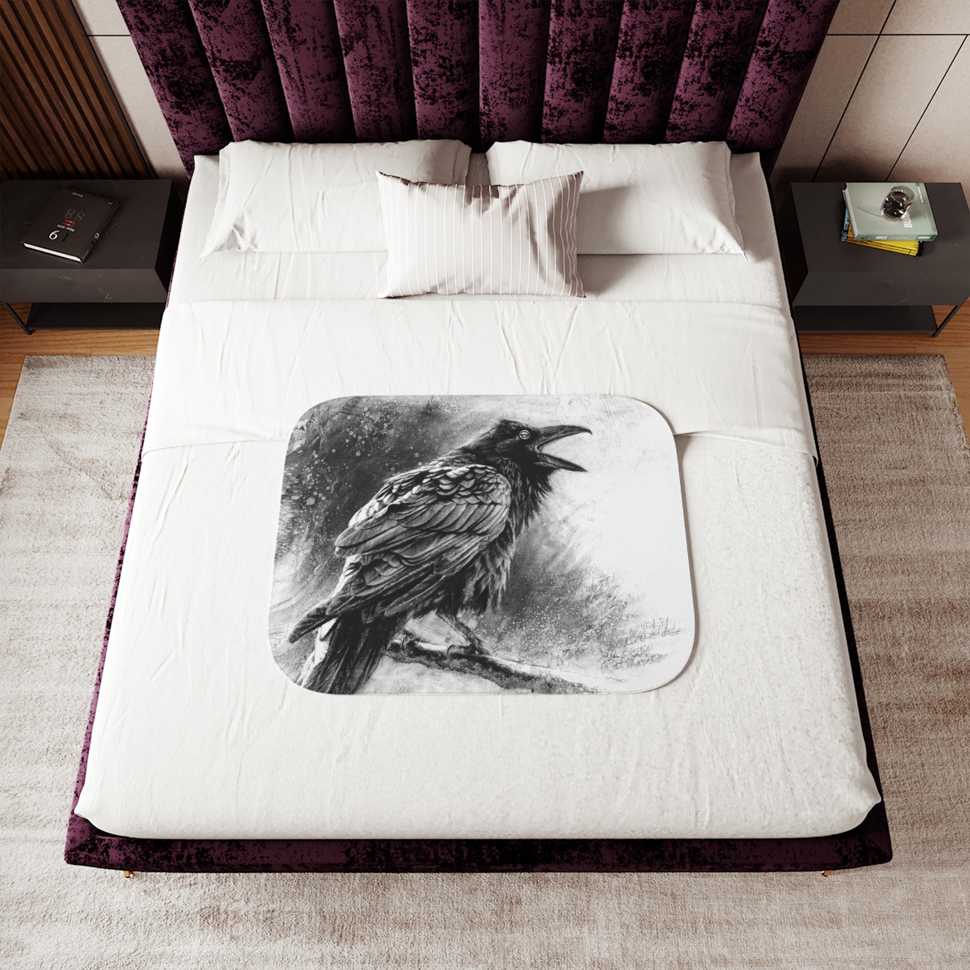 This snuggly sherpa blanket comes in beige or grey colors and features artwork by Joel Pilcher. Made with a supremely soft polyester front and a sherpa back, it's available in 3 sizes.