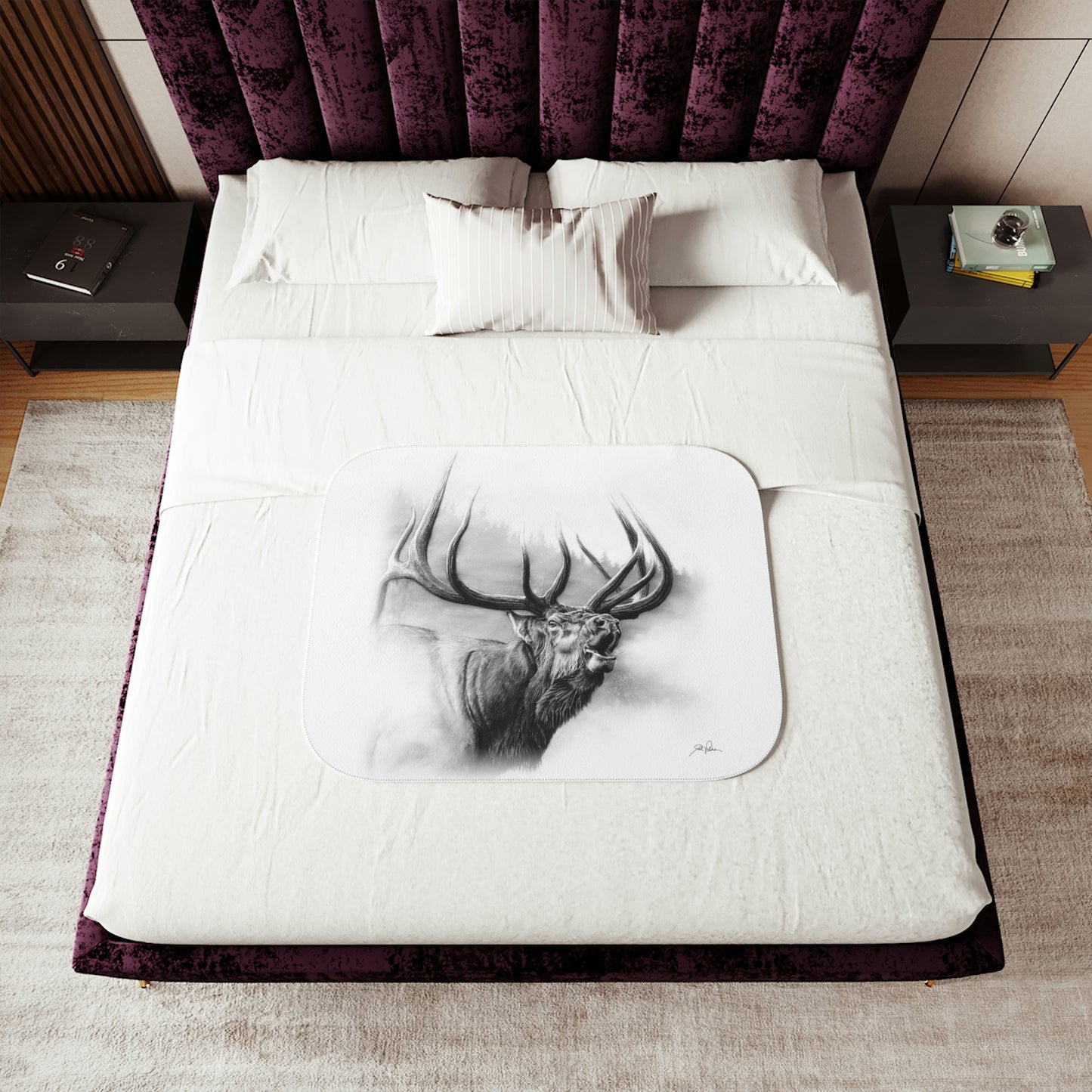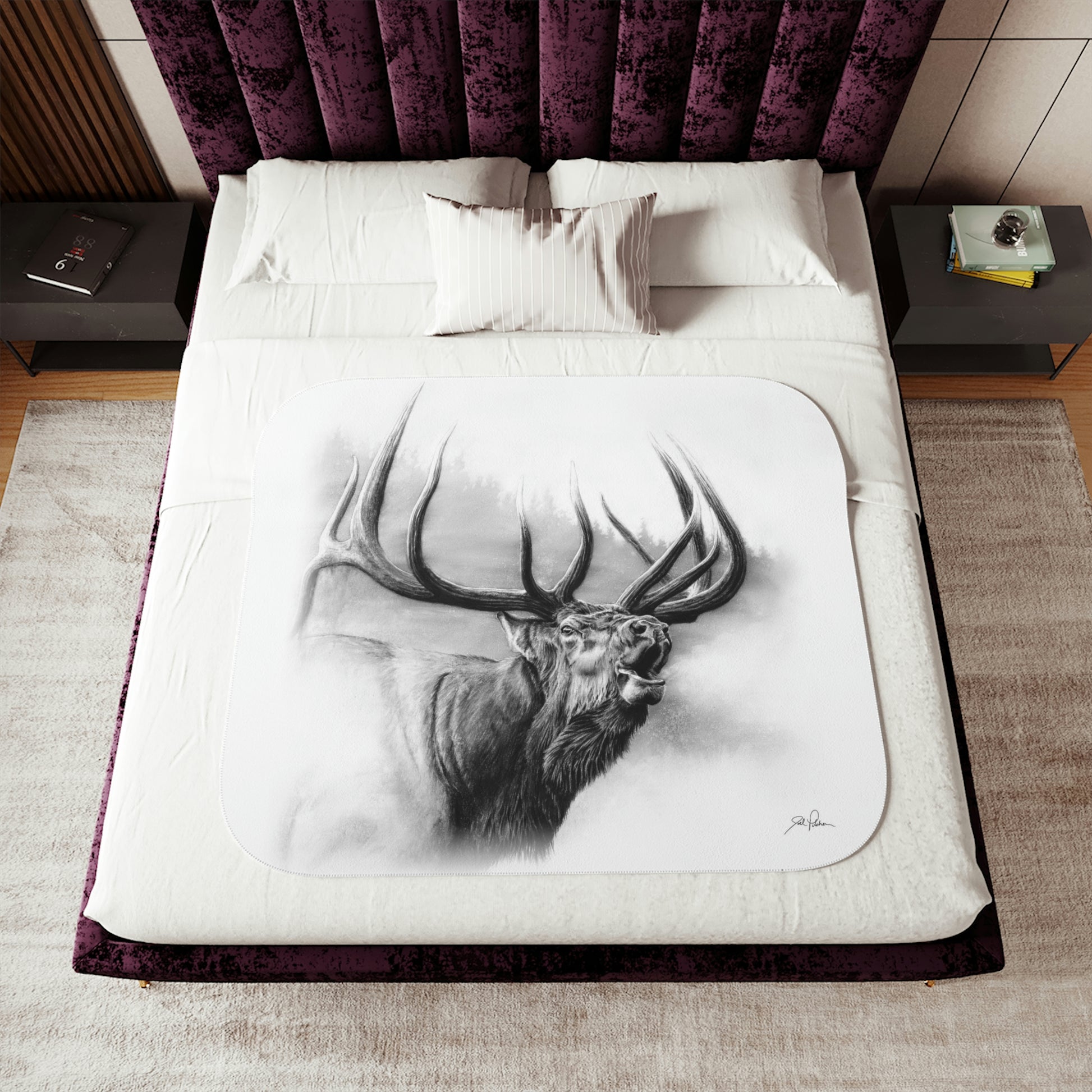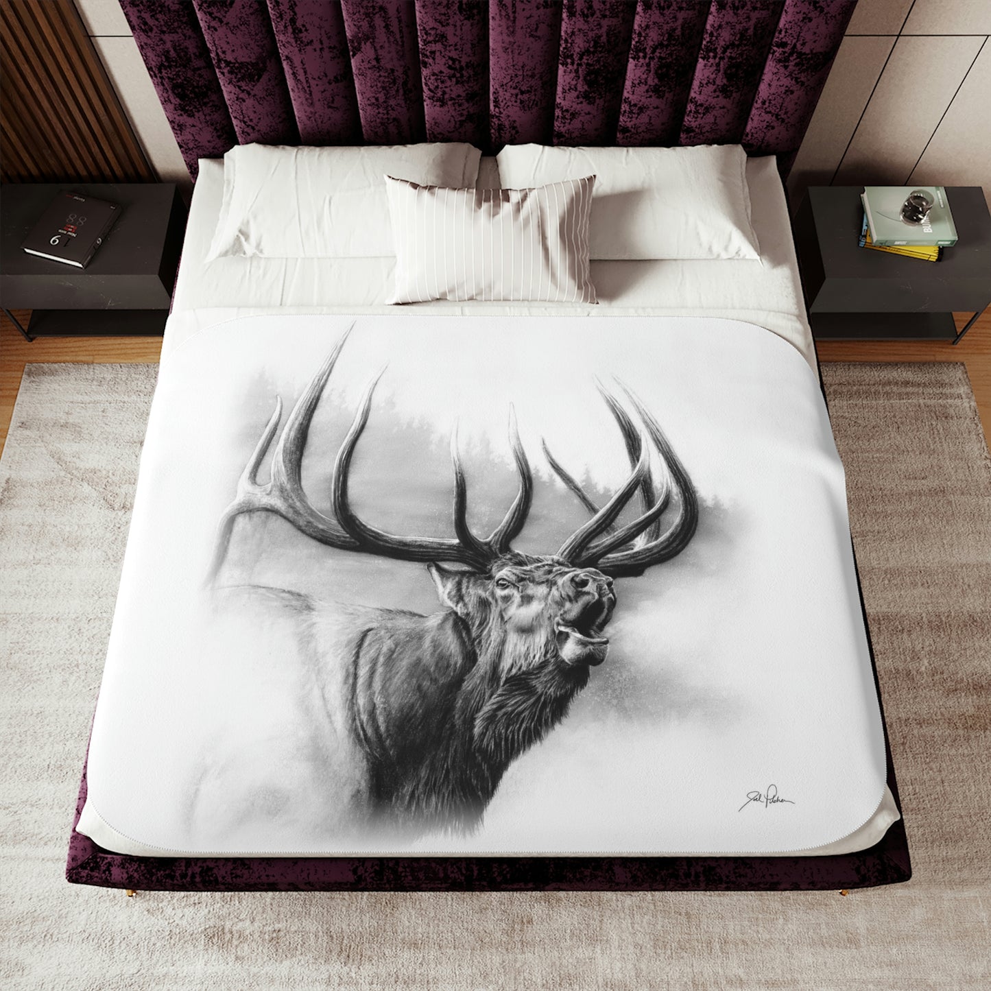 This snuggly sherpa blanket comes in beige or grey colors and features artwork by Joel Pilcher. Made with a supremely soft polyester front and a sherpa back, it's available in 3 sizes.