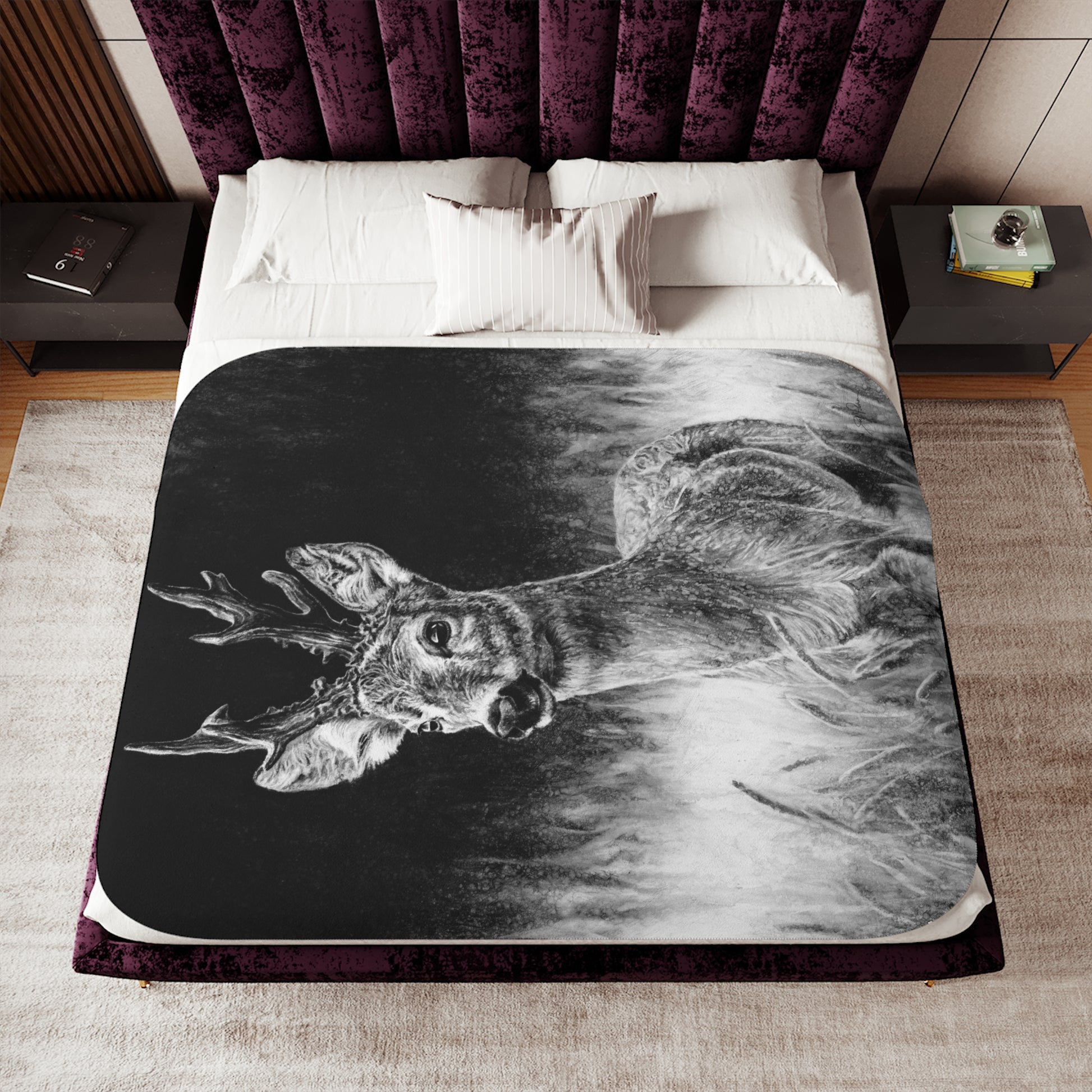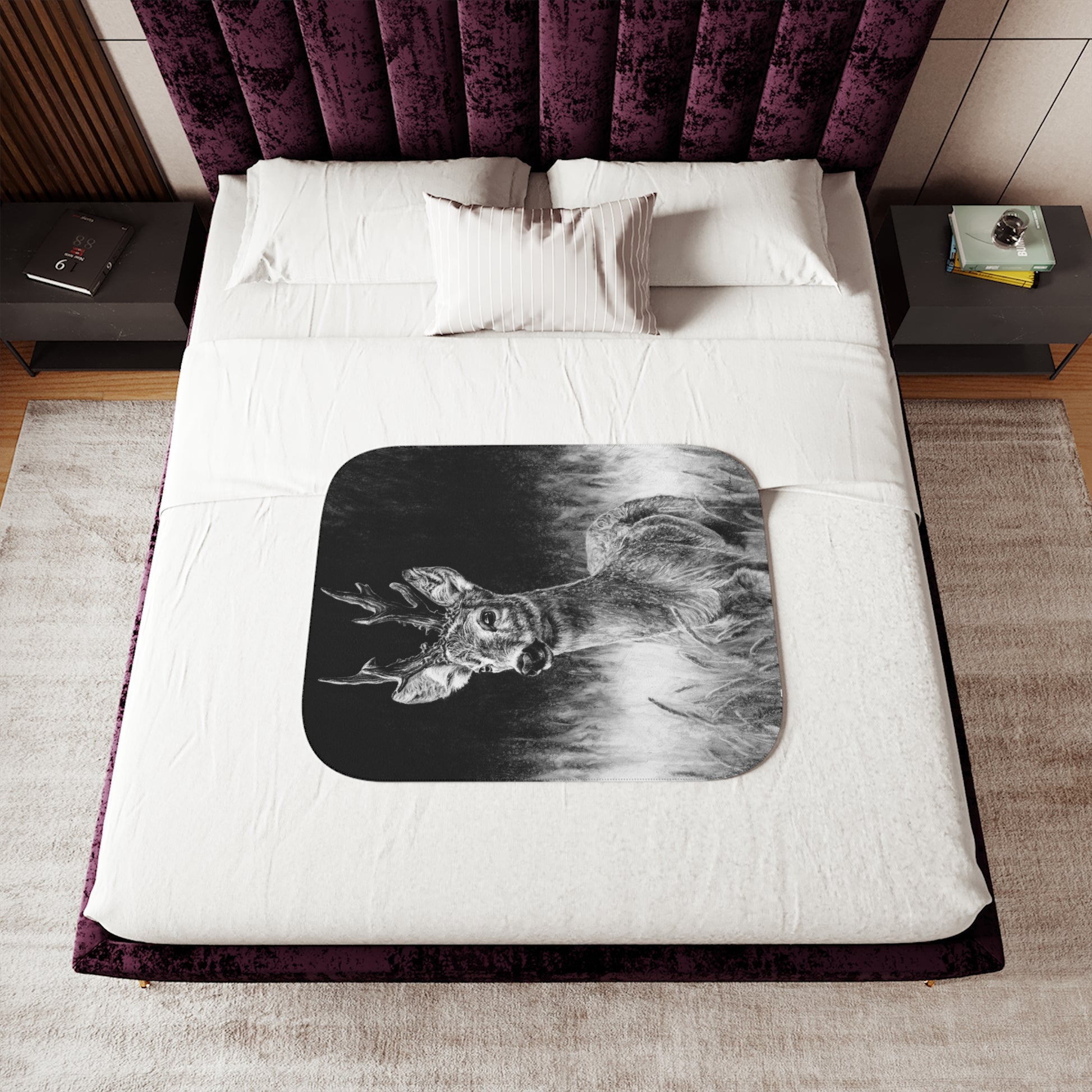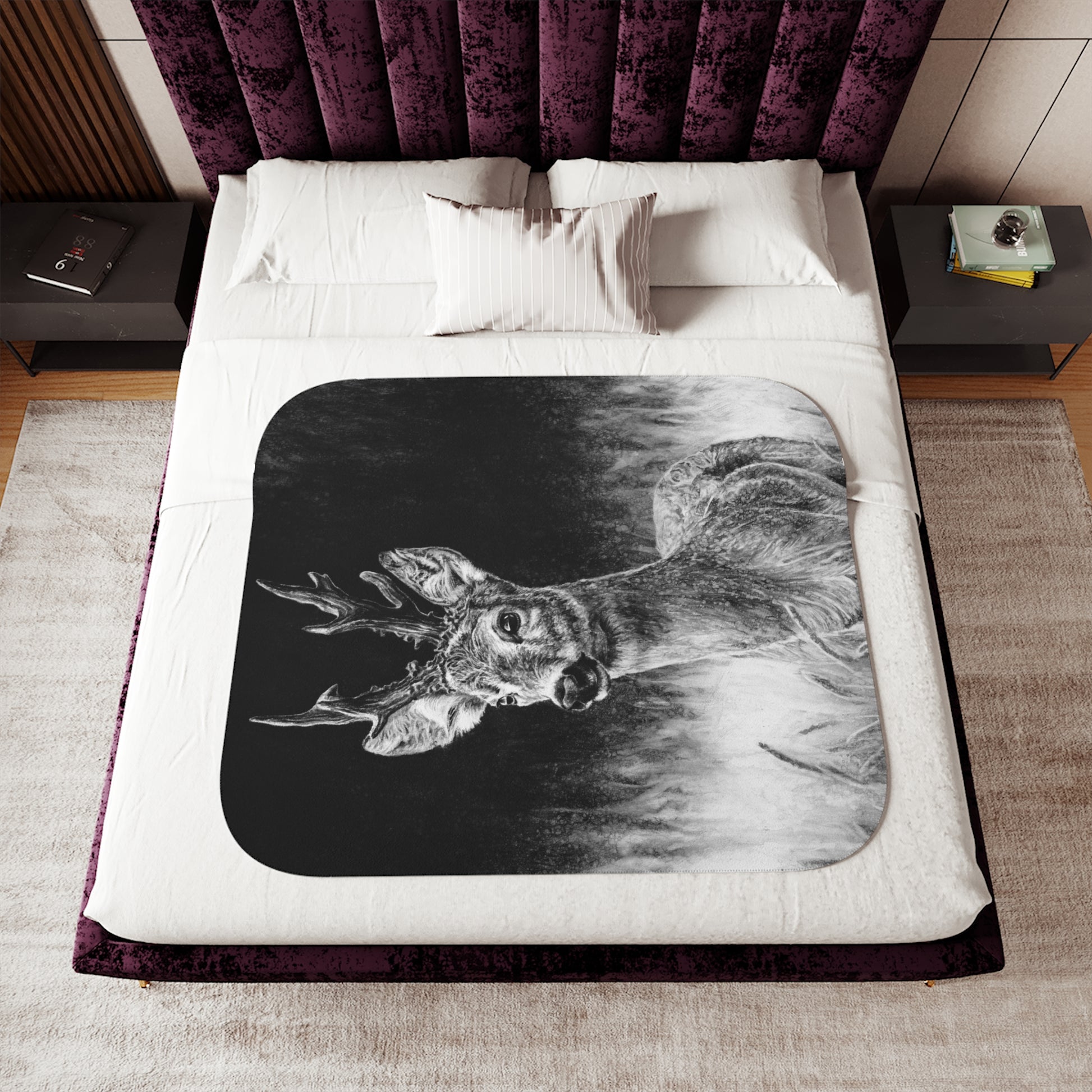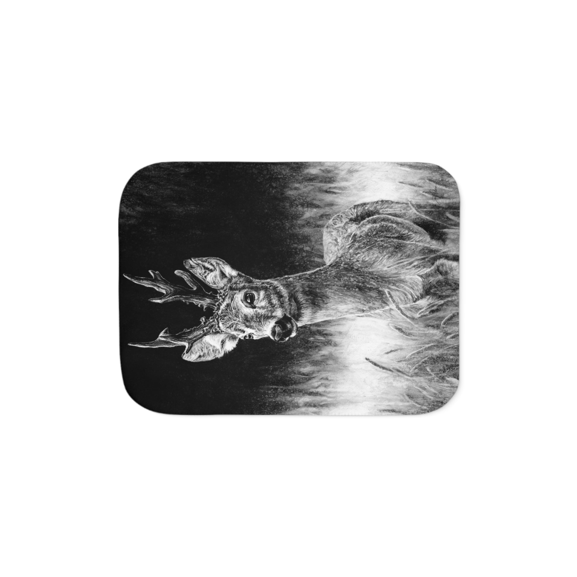 This snuggly sherpa blanket comes in beige or grey colors and features artwork by Joel Pilcher. Made with a supremely soft polyester front and a sherpa back, it's available in 3 sizes.
