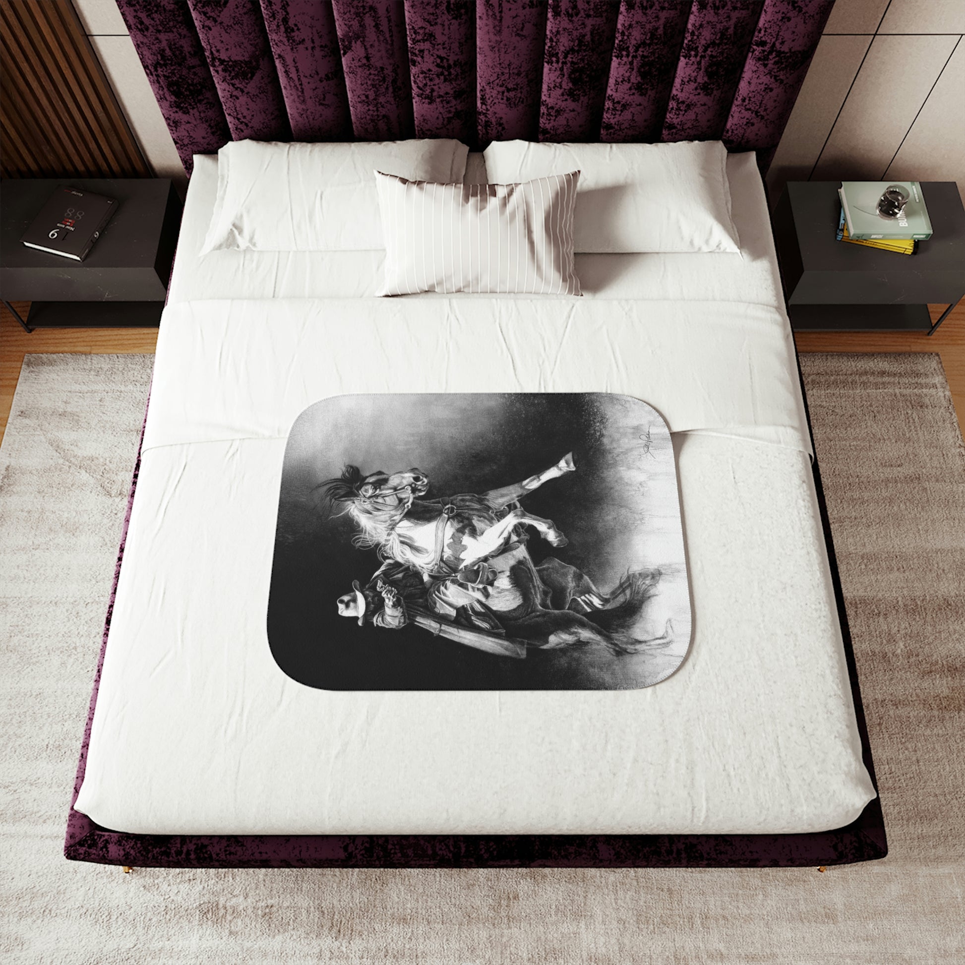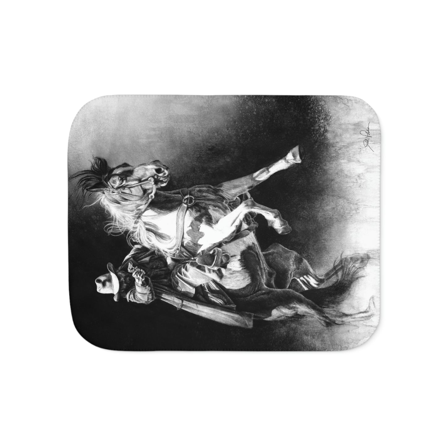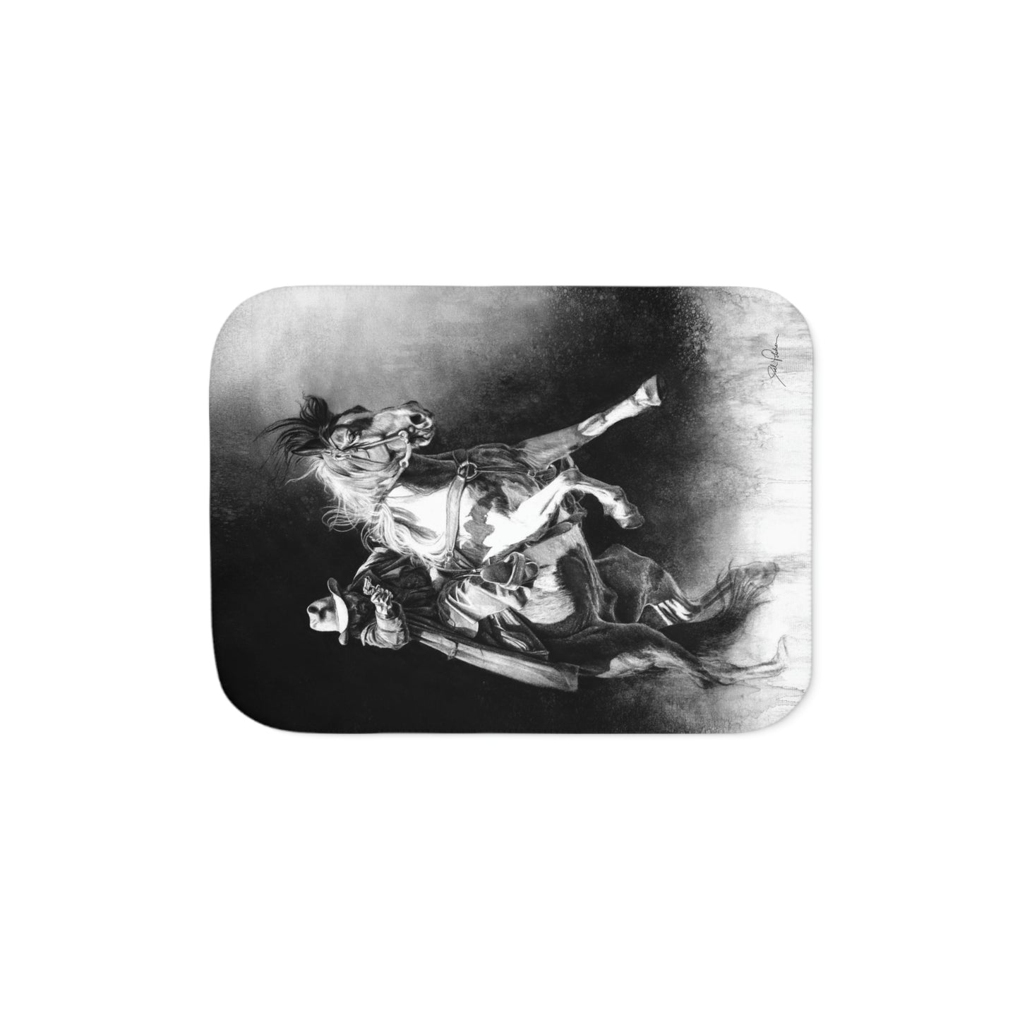 This snuggly sherpa blanket comes in beige or grey colors and features artwork by Joel Pilcher. Made with a supremely soft polyester front and a sherpa back, it's available in 3 sizes.