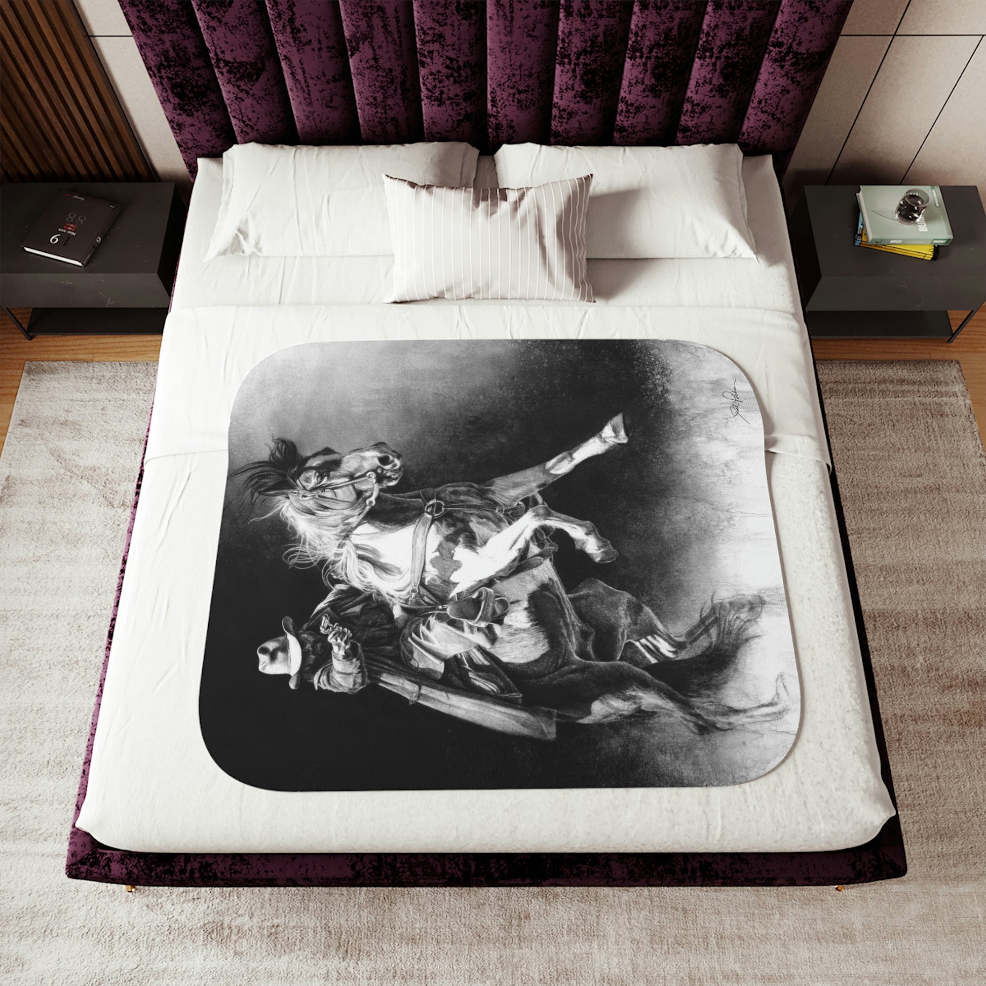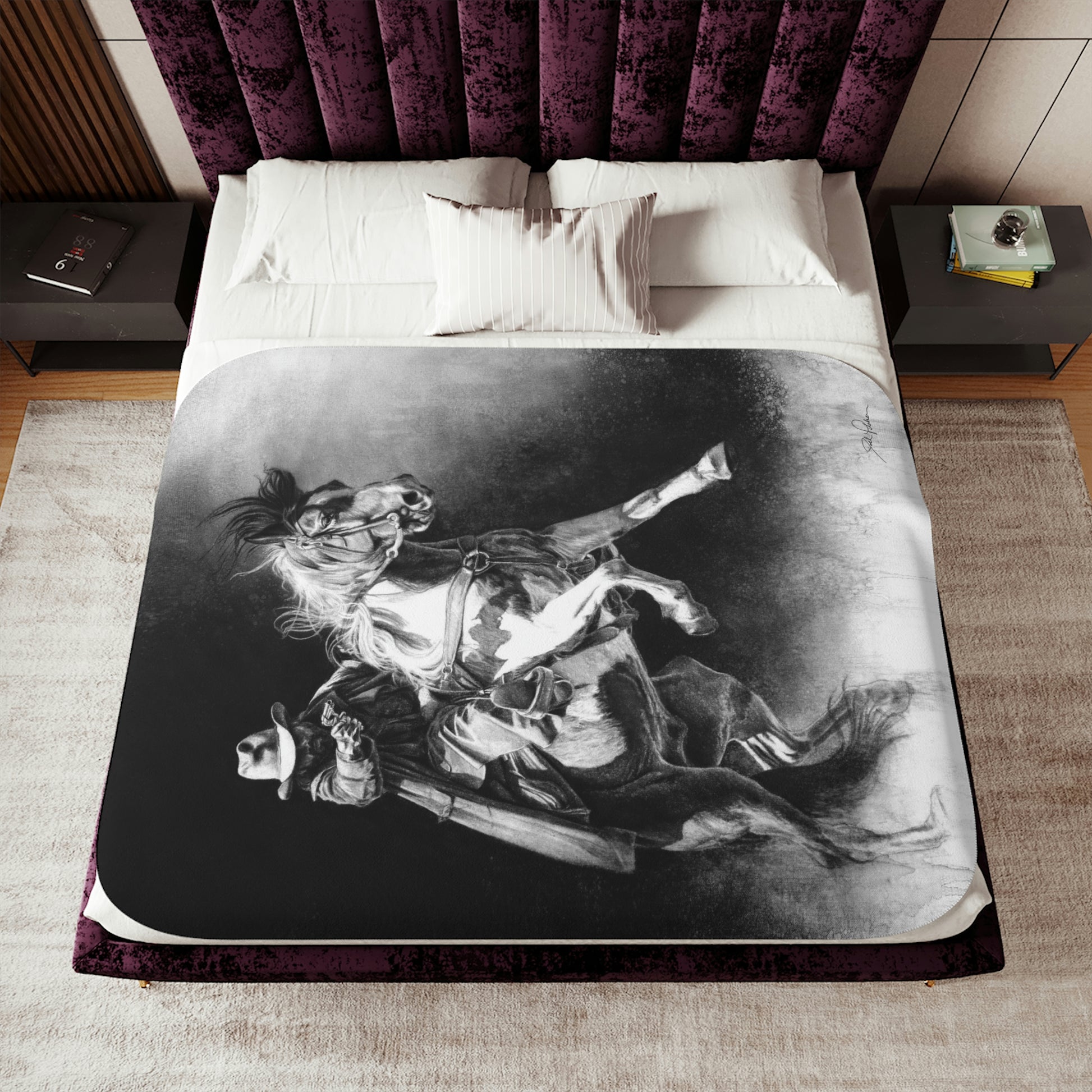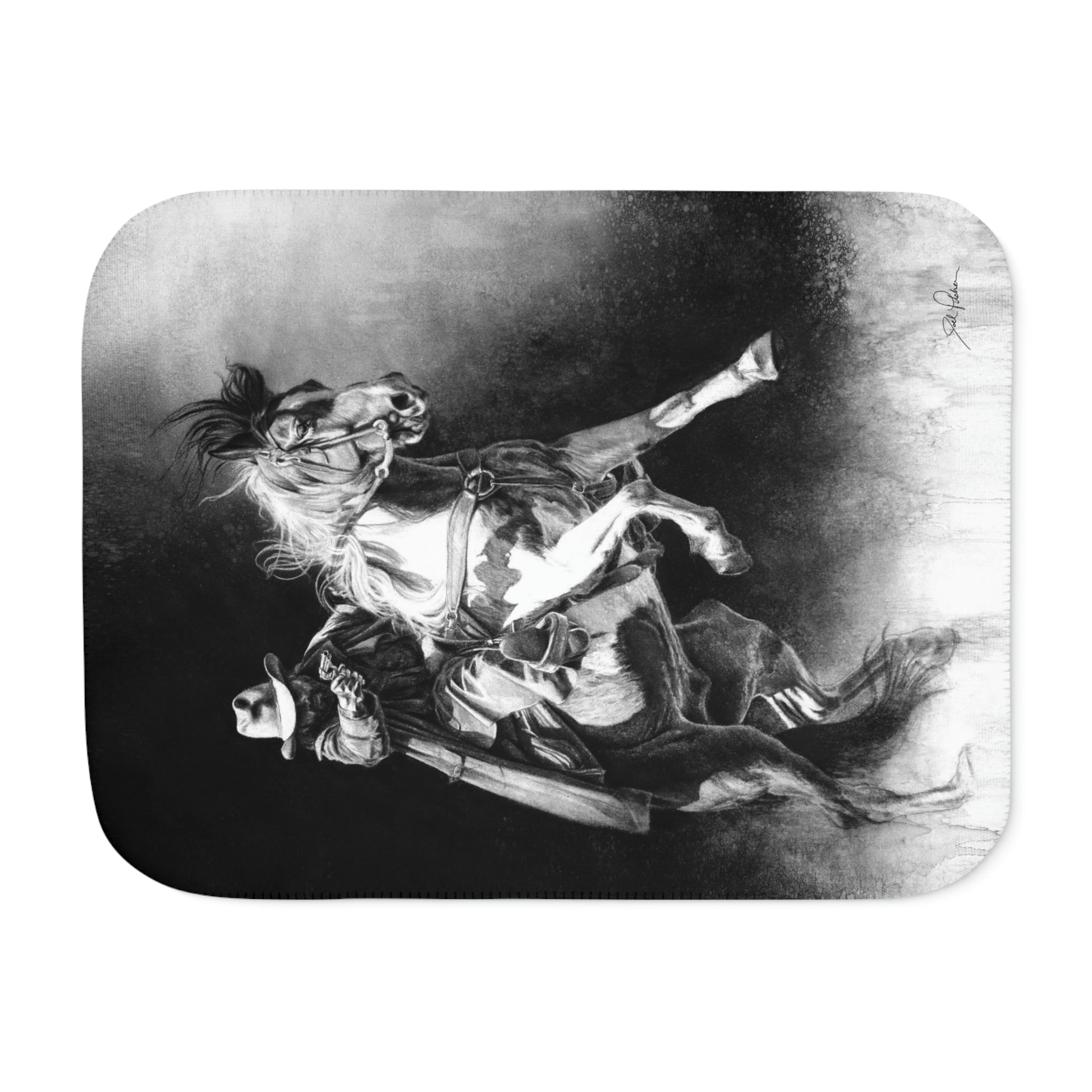 This snuggly sherpa blanket comes in beige or grey colors and features artwork by Joel Pilcher. Made with a supremely soft polyester front and a sherpa back, it's available in 3 sizes.