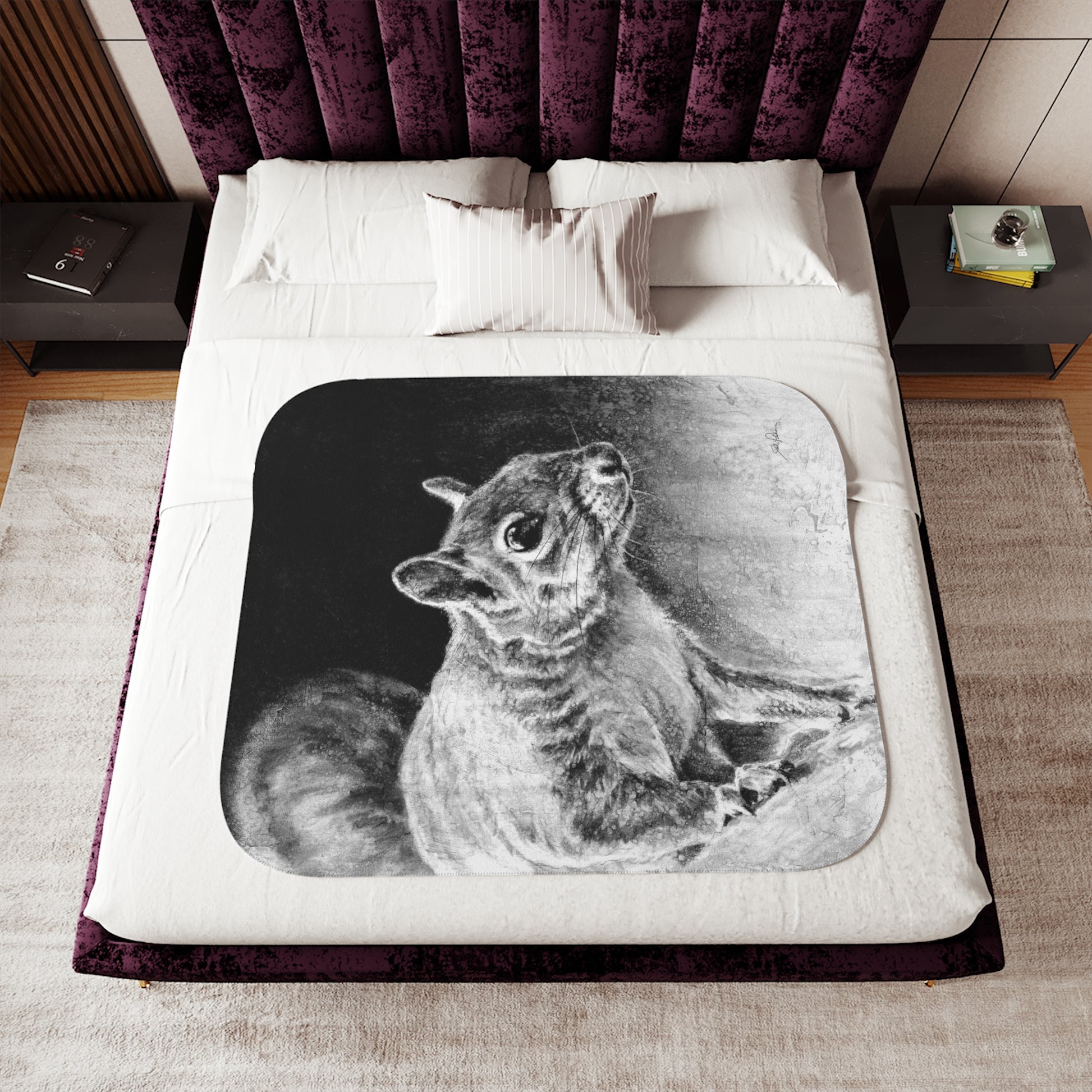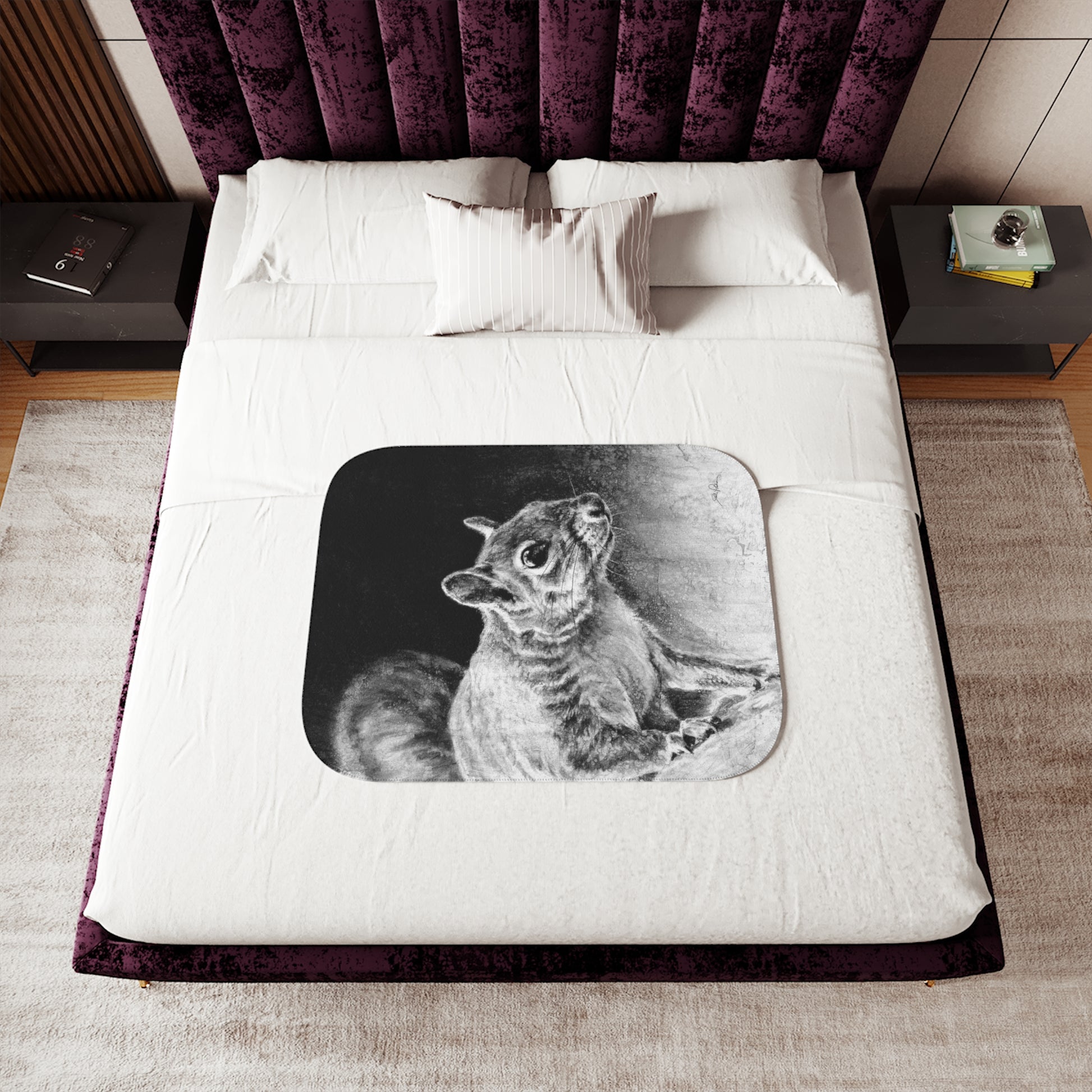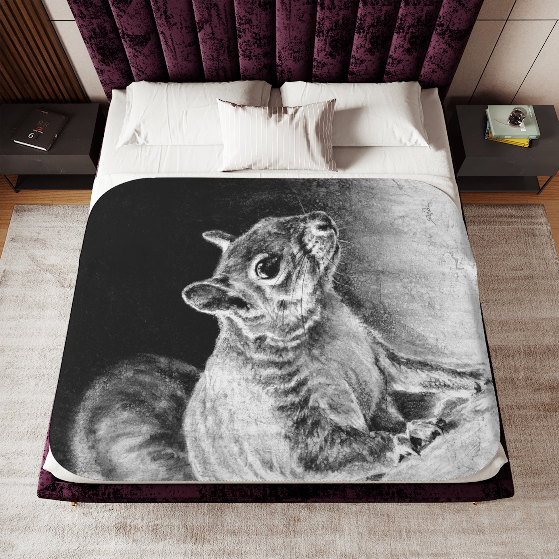 This snuggly sherpa blanket comes in beige or grey colors and features artwork by Joel Pilcher. Made with a supremely soft polyester front and a sherpa back, it's available in 3 sizes.
