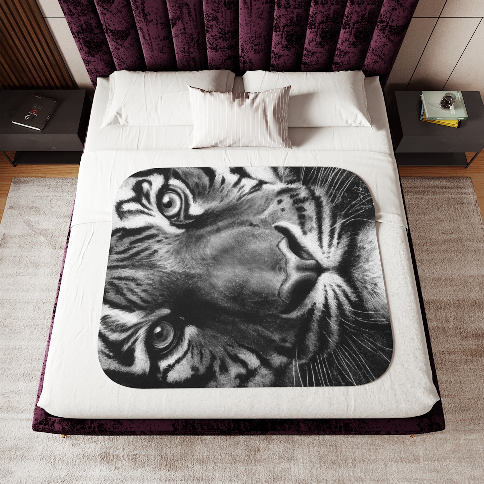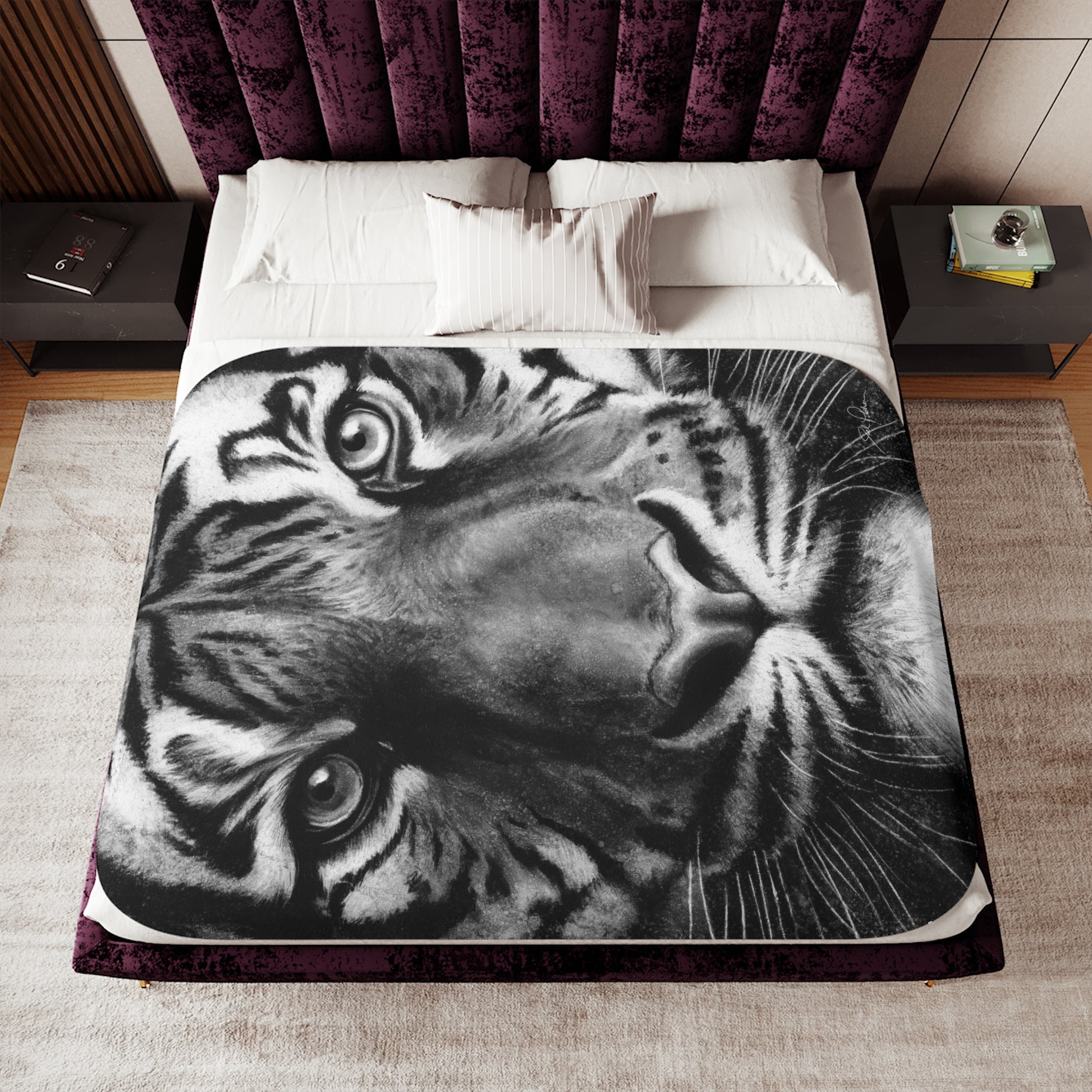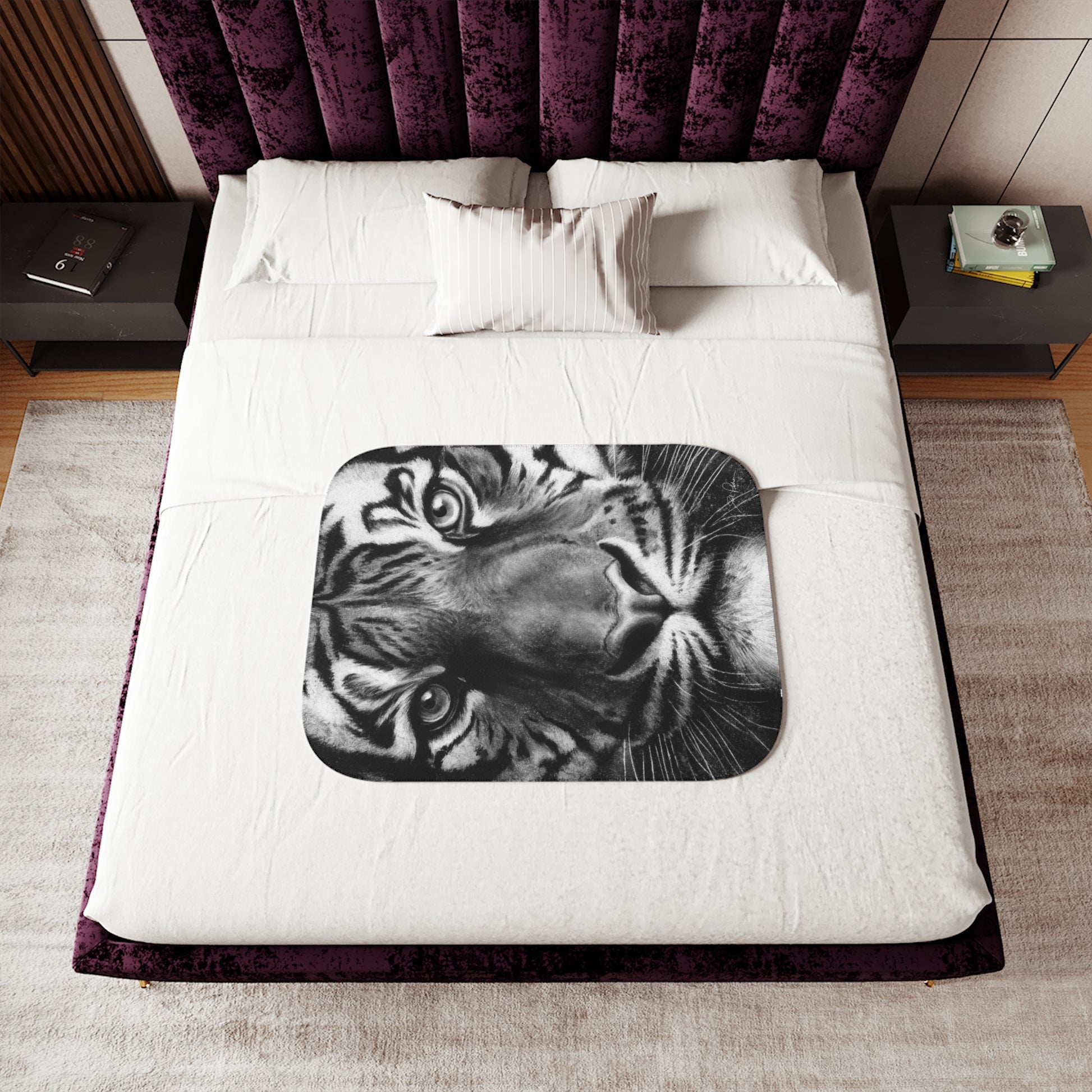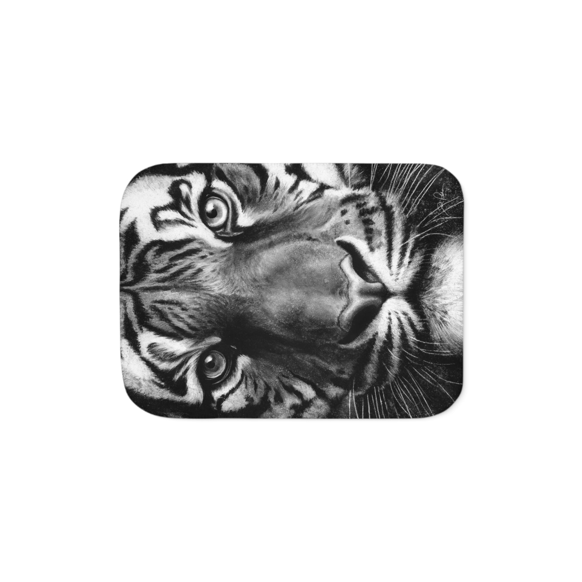 This snuggly sherpa blanket comes in beige or grey colors and features artwork by Joel Pilcher. Made with a supremely soft polyester front and a sherpa back, it's available in 3 sizes.