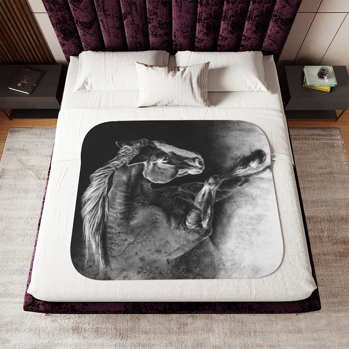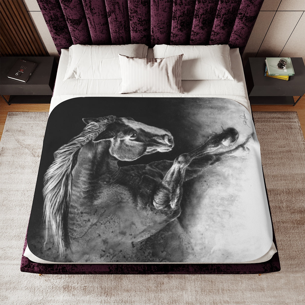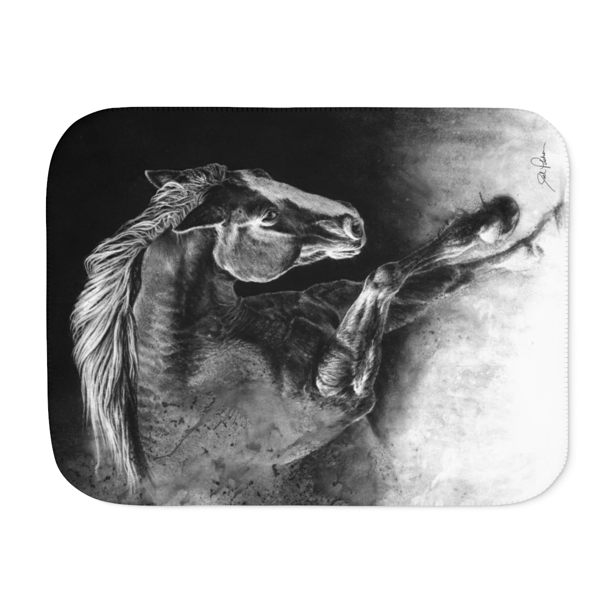 This snuggly sherpa blanket comes in beige or grey colors and features artwork by Joel Pilcher. Made with a supremely soft polyester front and a sherpa back, it's available in 3 sizes.