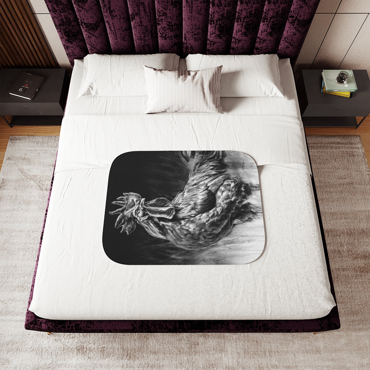 This snuggly sherpa blanket comes in beige or grey colors and features artwork by Joel Pilcher. Made with a supremely soft polyester front and a sherpa back, it's available in 3 sizes.